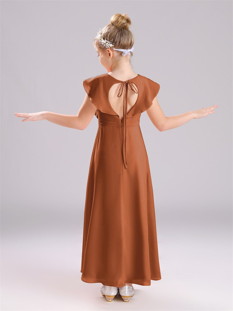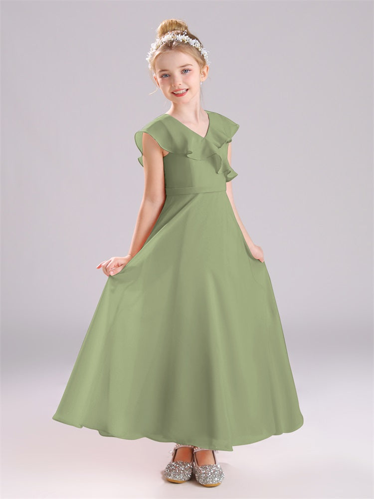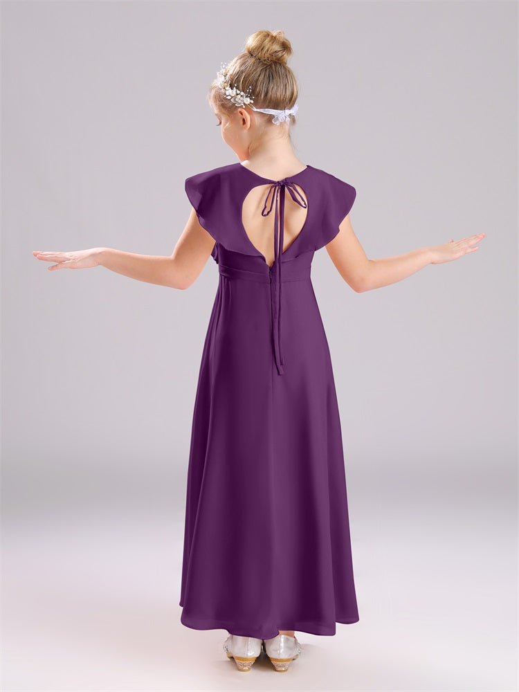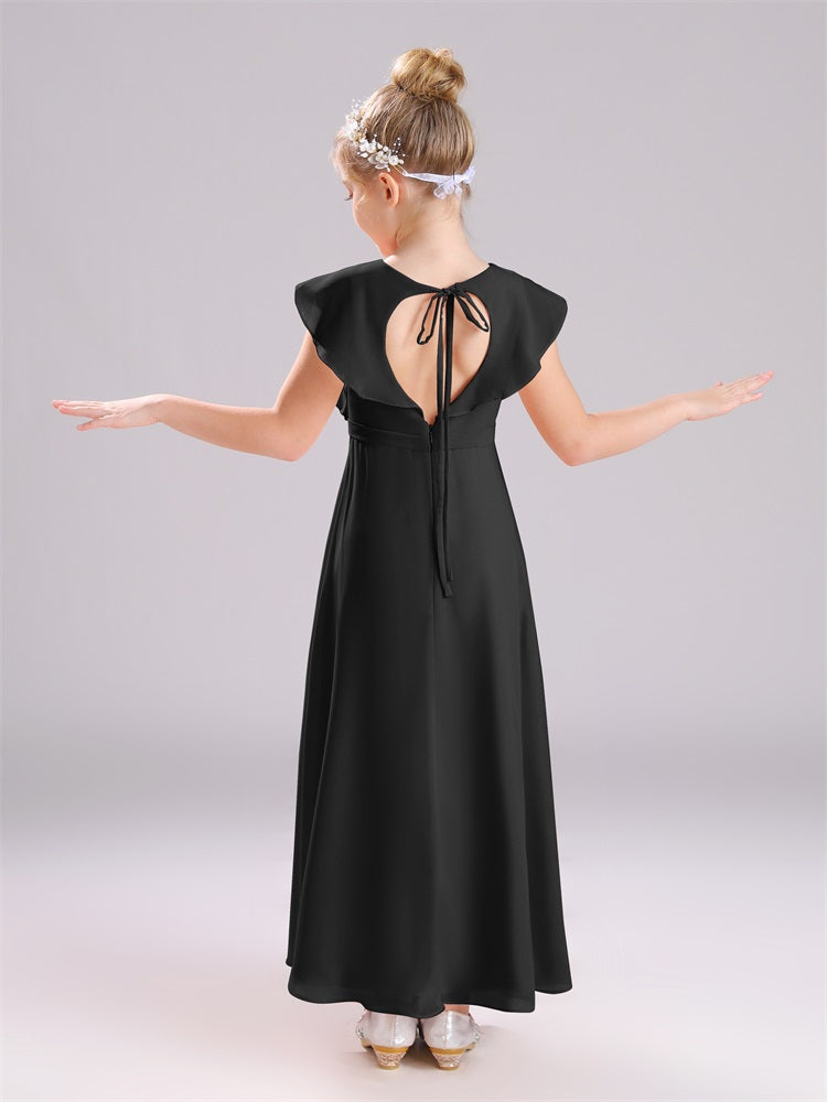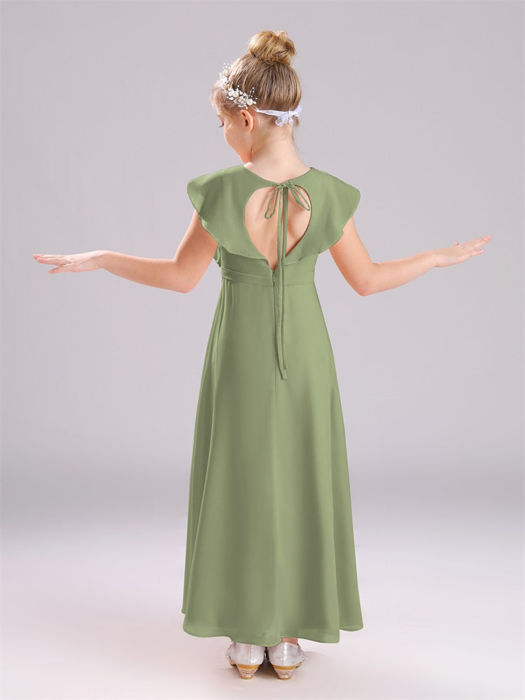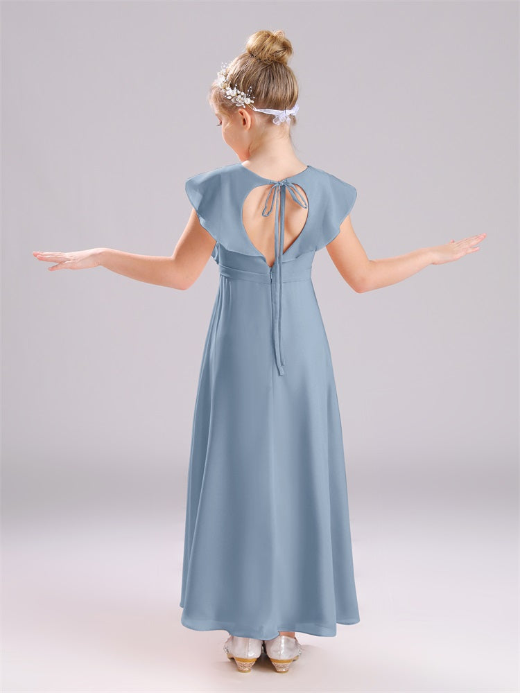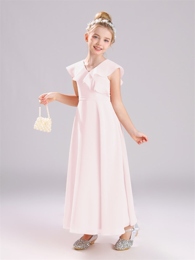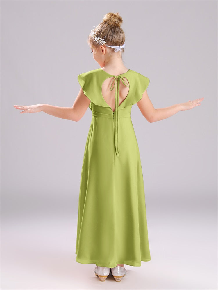 Kappenärmel V-Ausschnitt offener Rücken Chiffon Junior Brautjungfernkleider