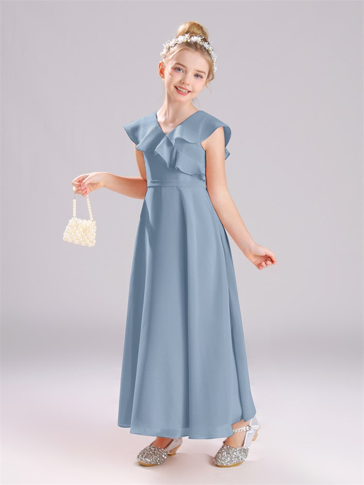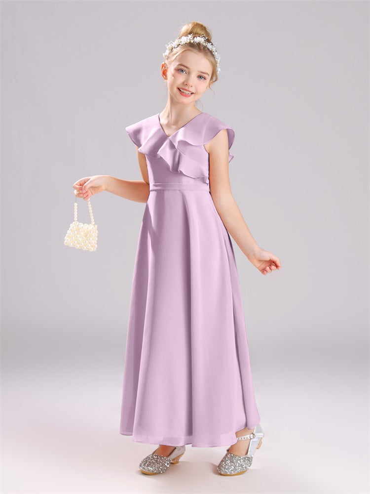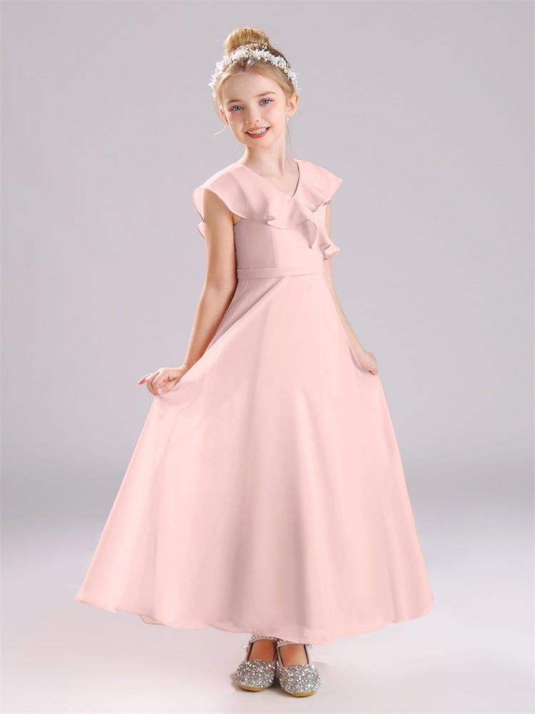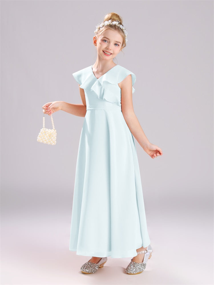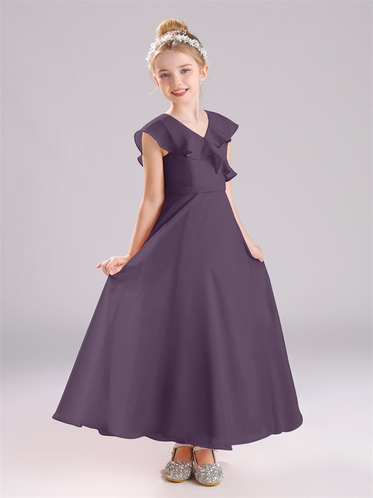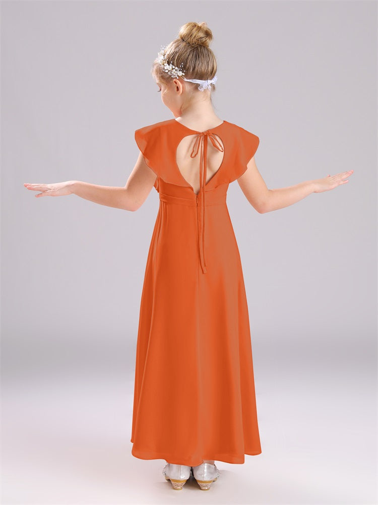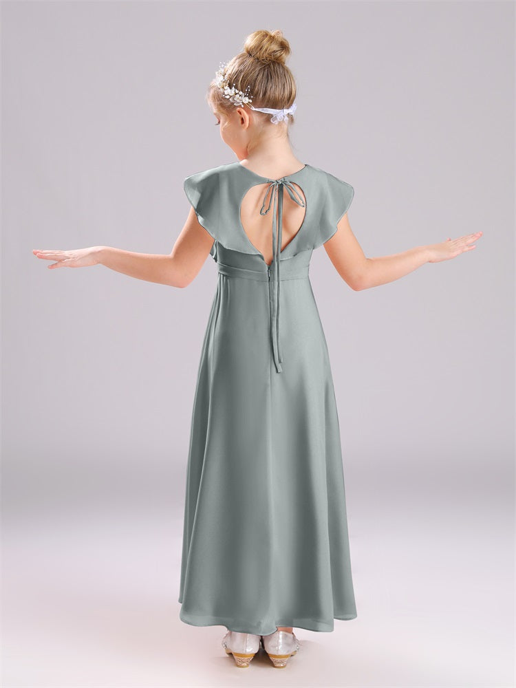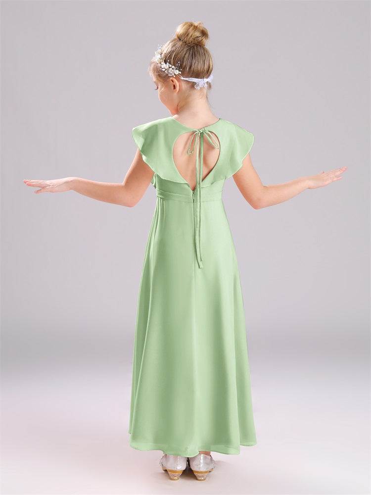 Kappenärmel V-Ausschnitt offener Rücken Chiffon Junior Brautjungfernkleider