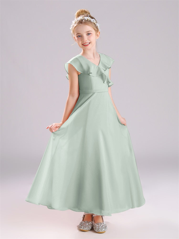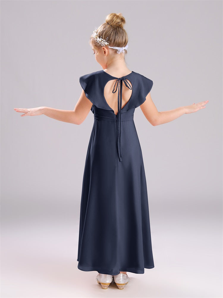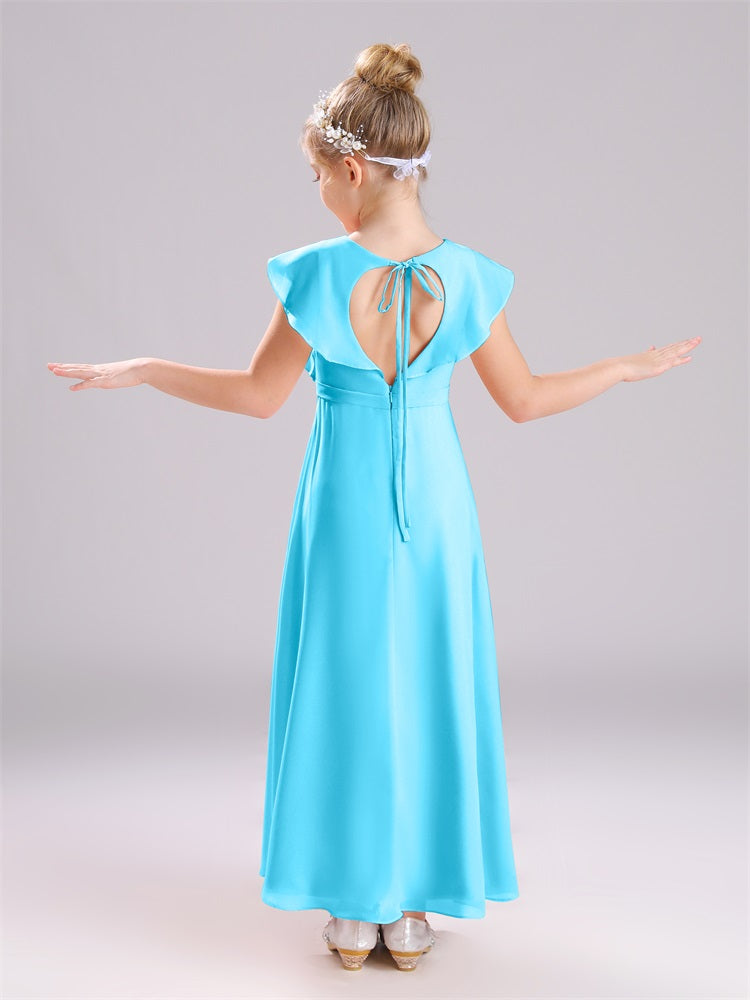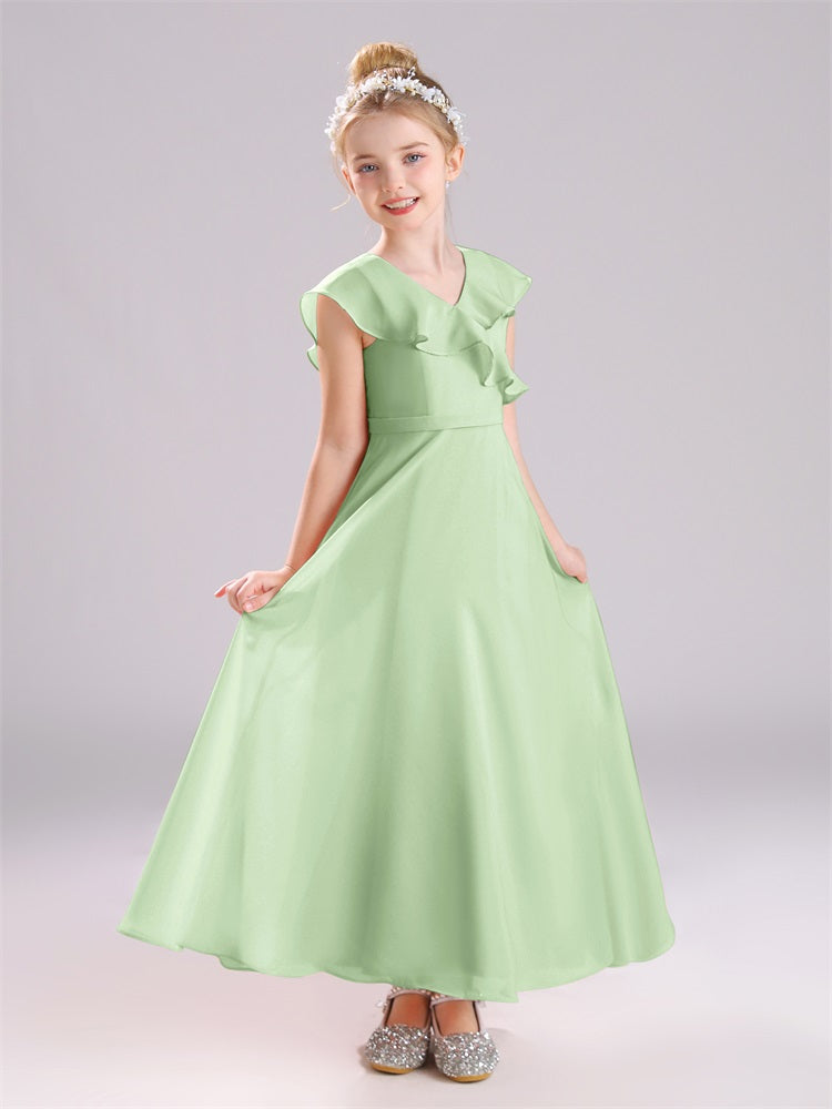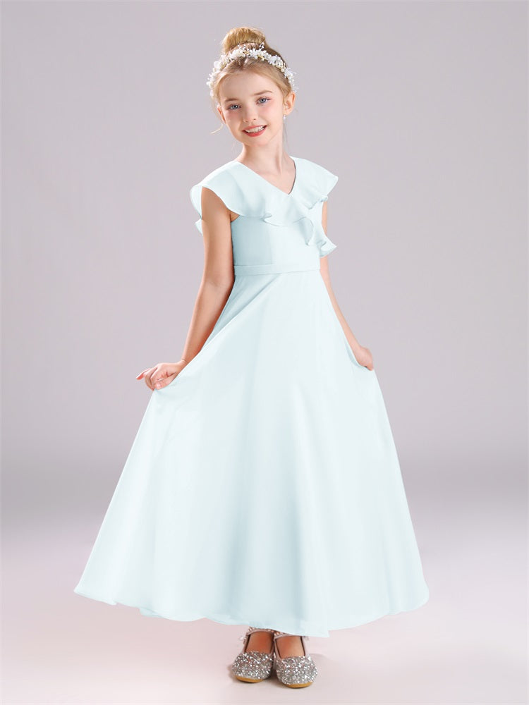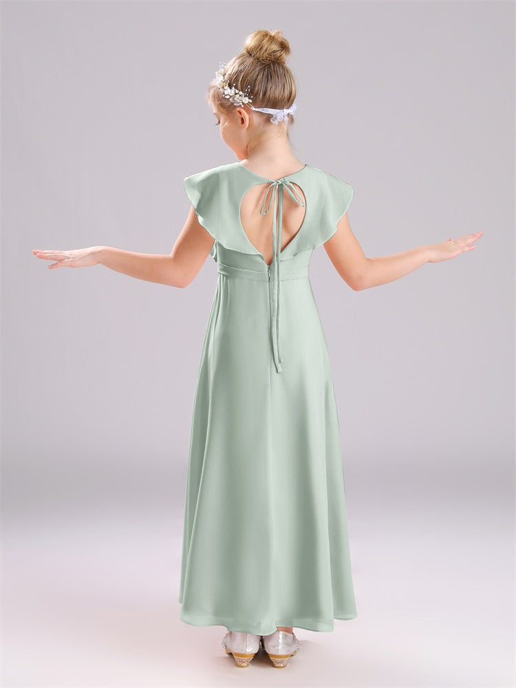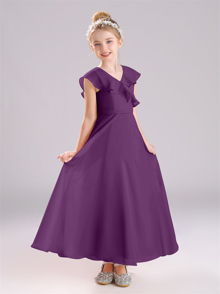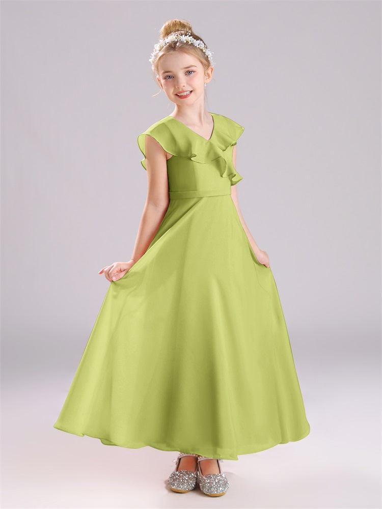 Kappenärmel V-Ausschnitt offener Rücken Chiffon Junior Brautjungfernkleider