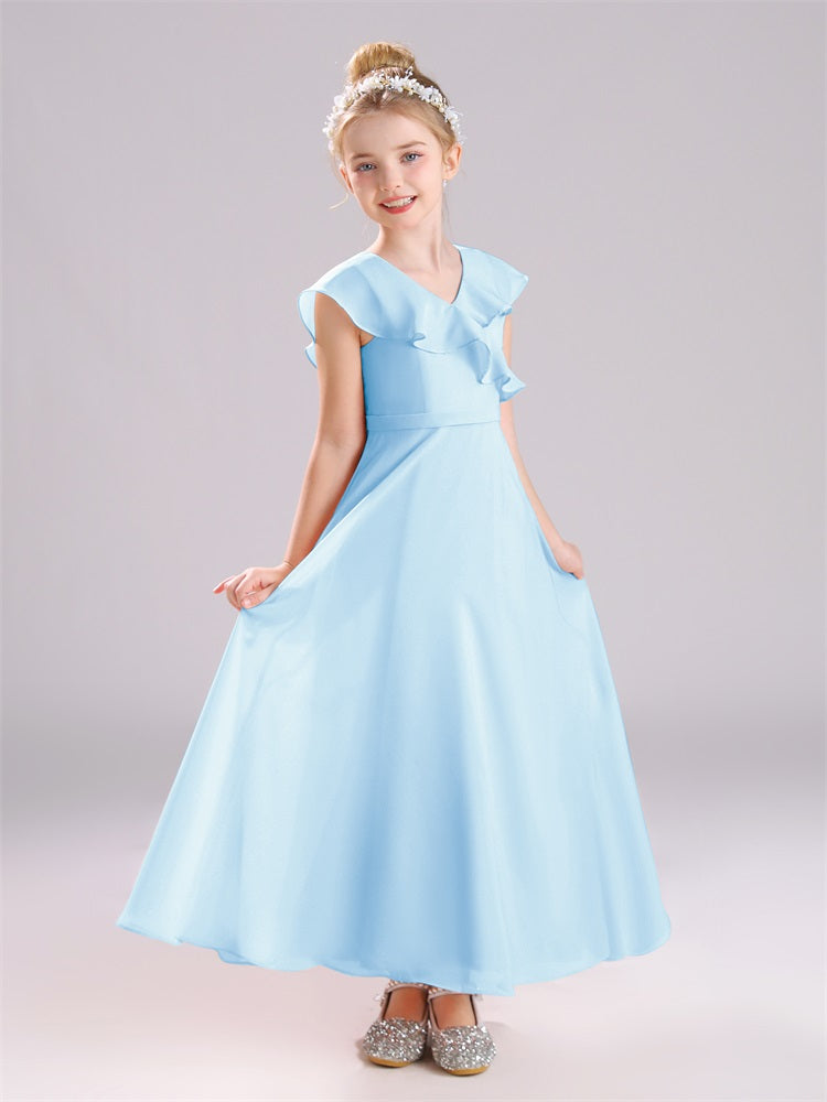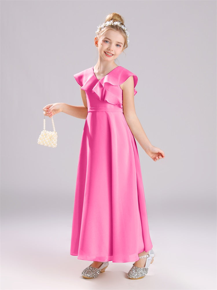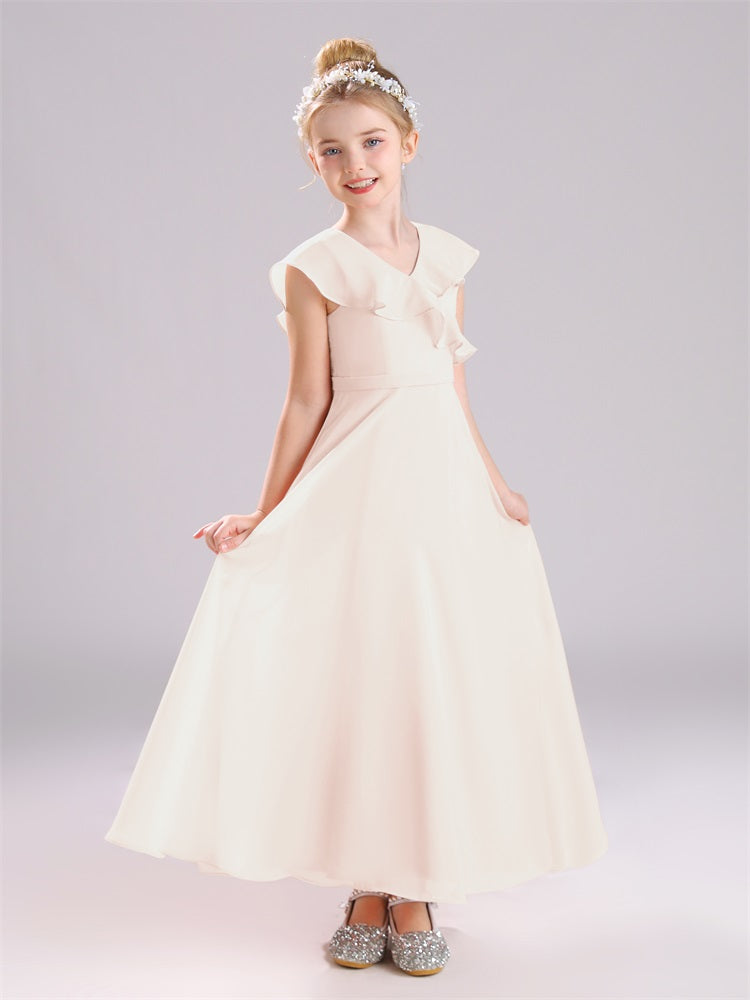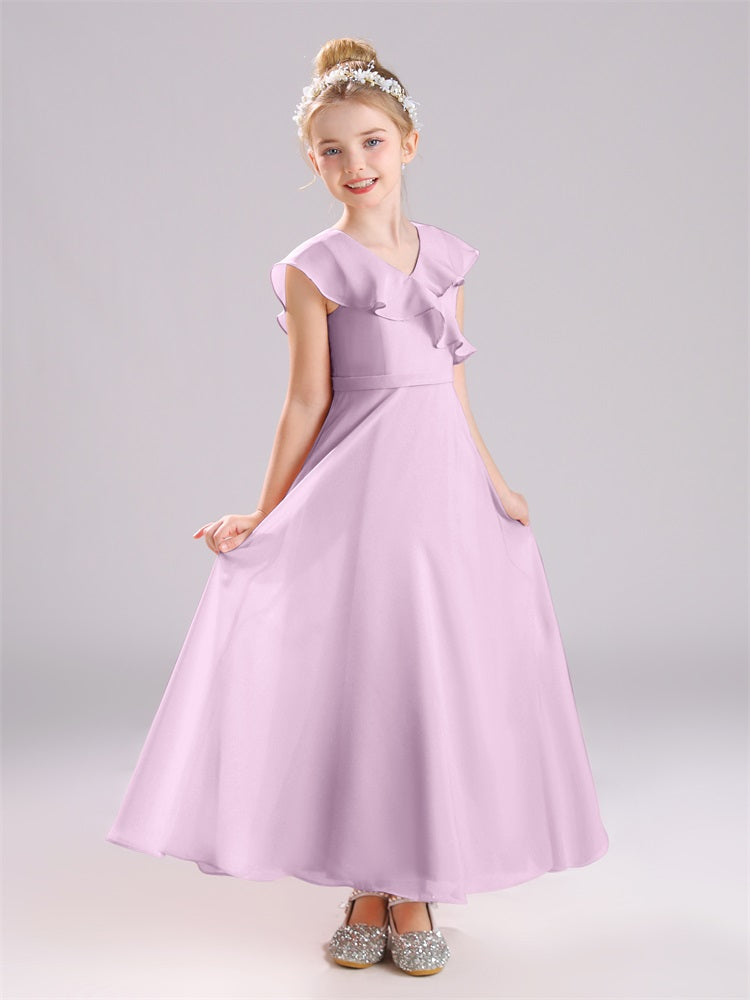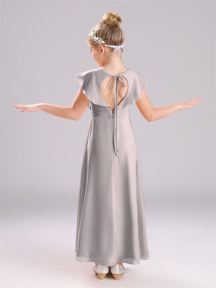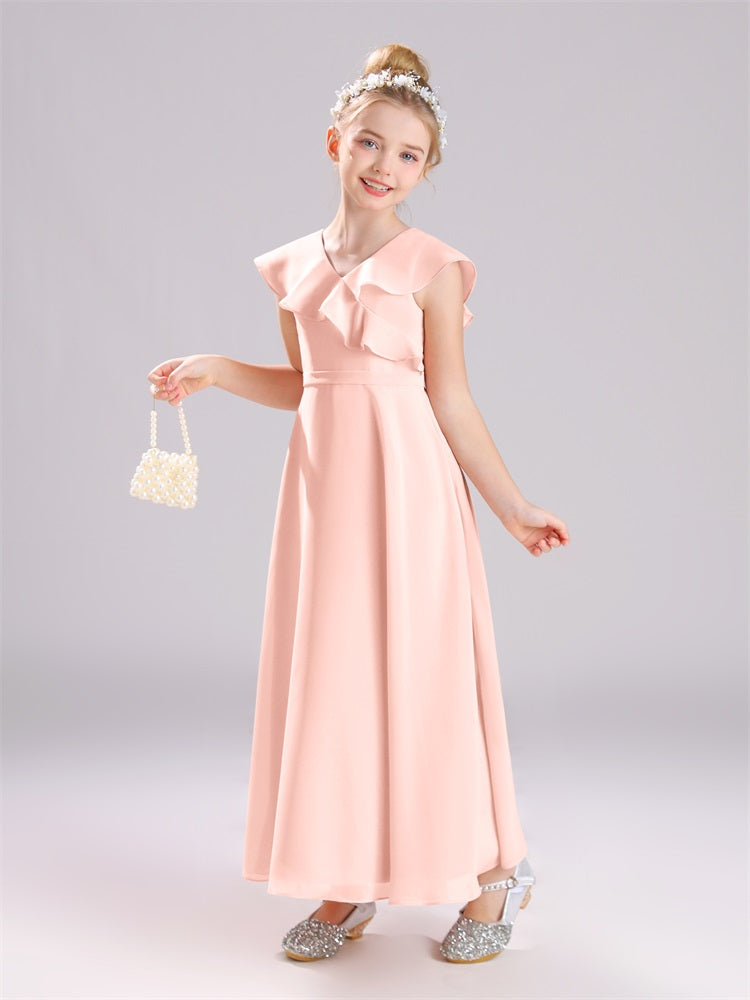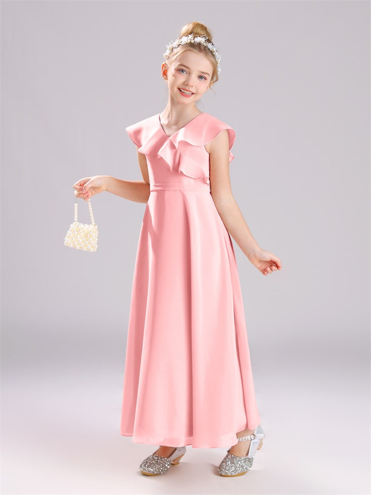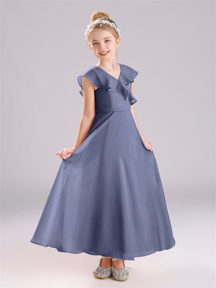 Kappenärmel V-Ausschnitt offener Rücken Chiffon Junior Brautjungfernkleider