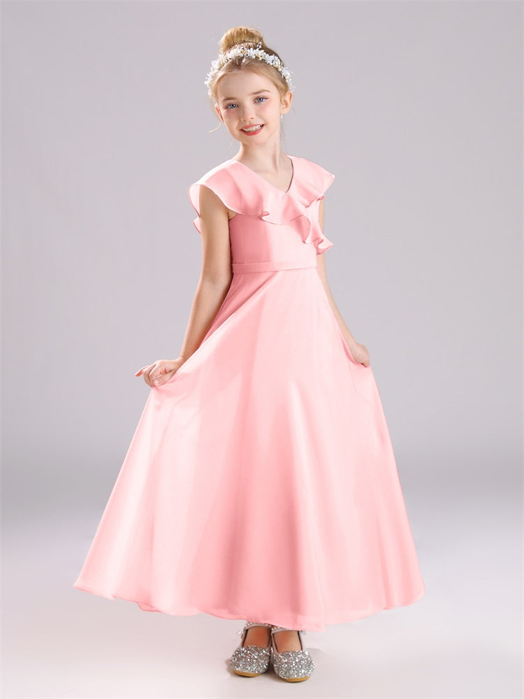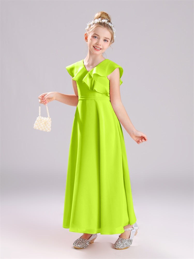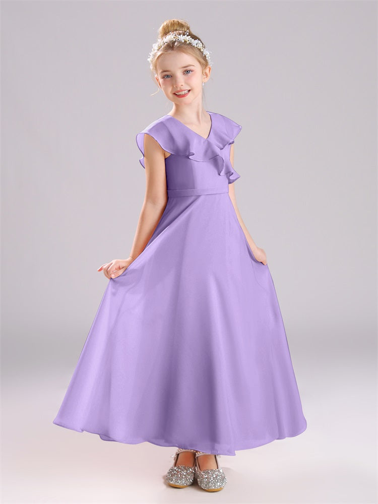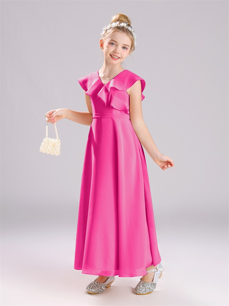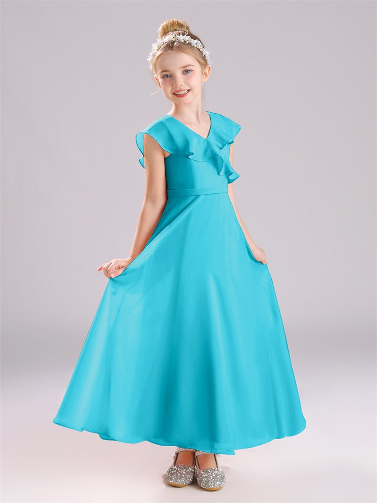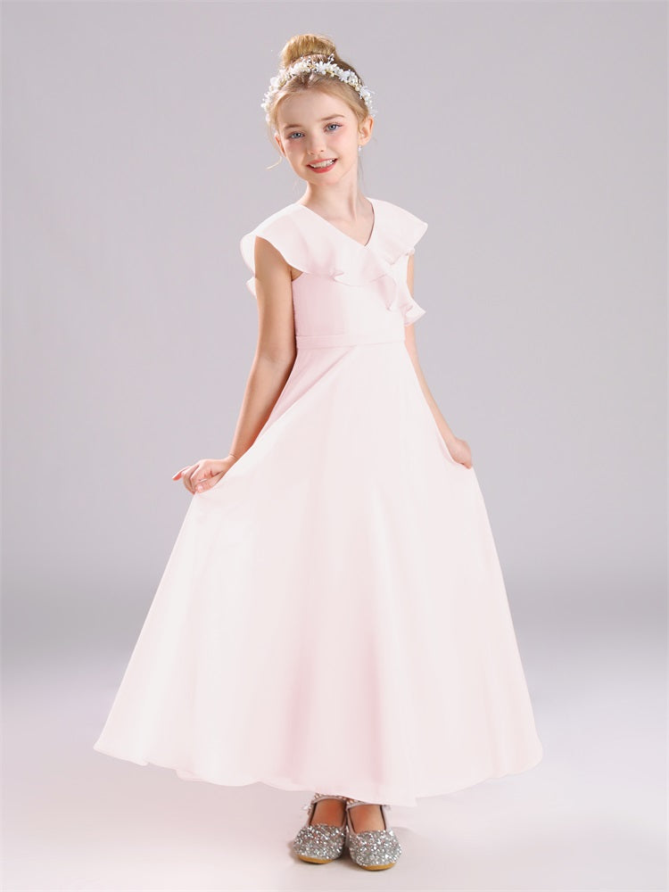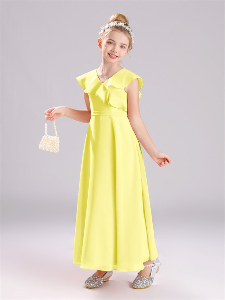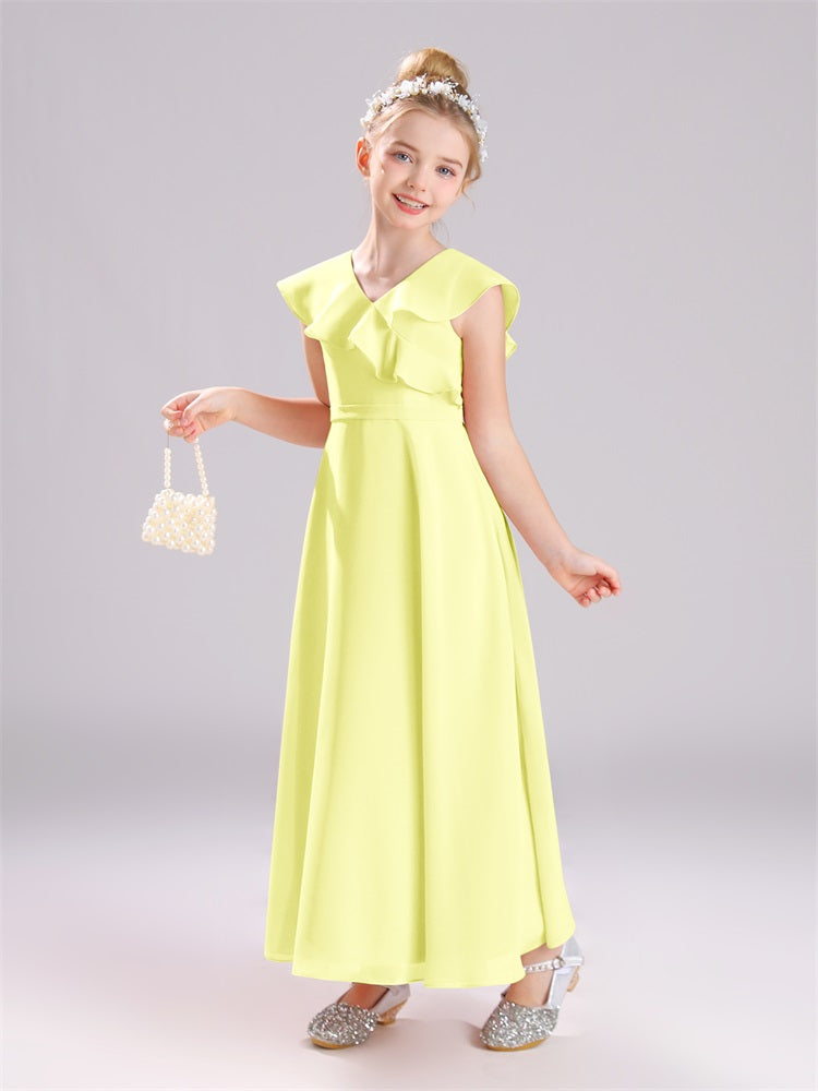 Kappenärmel V-Ausschnitt offener Rücken Chiffon Junior Brautjungfernkleider