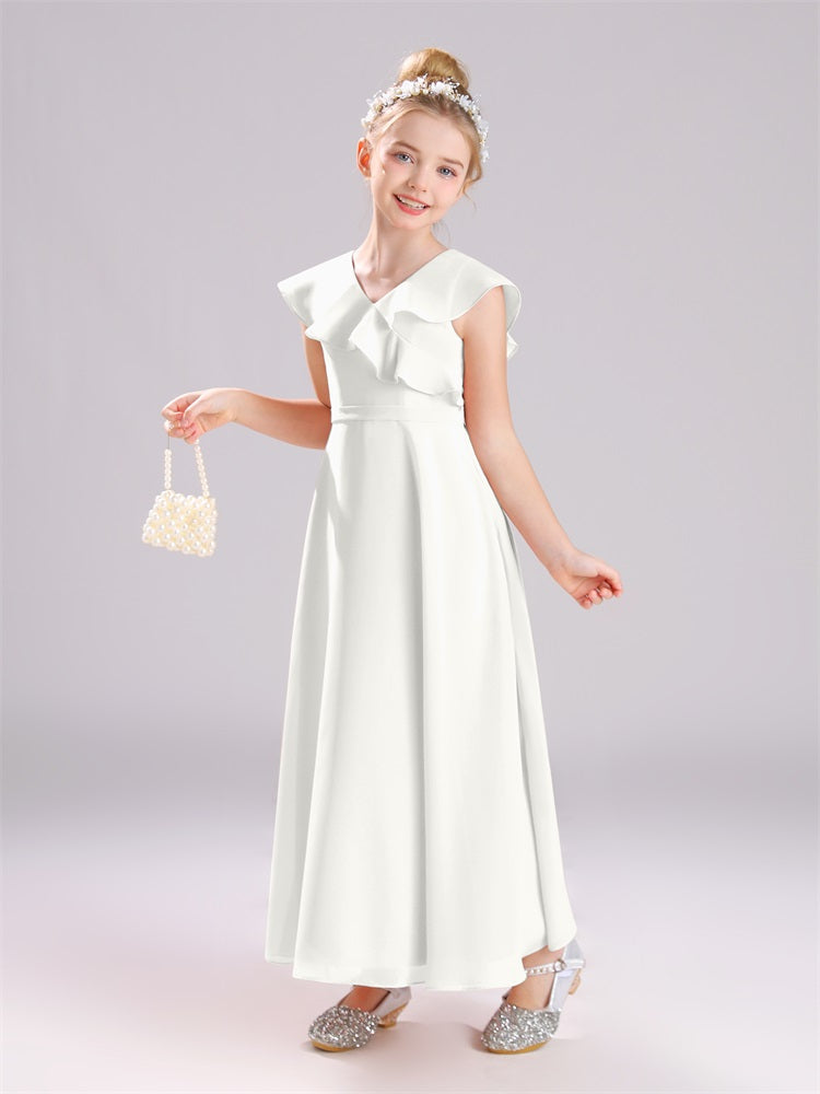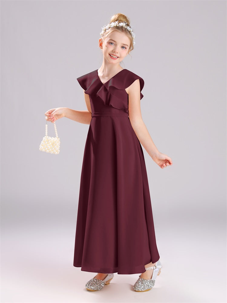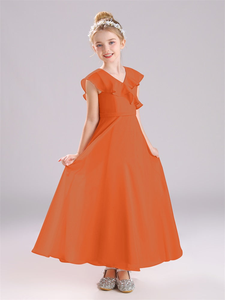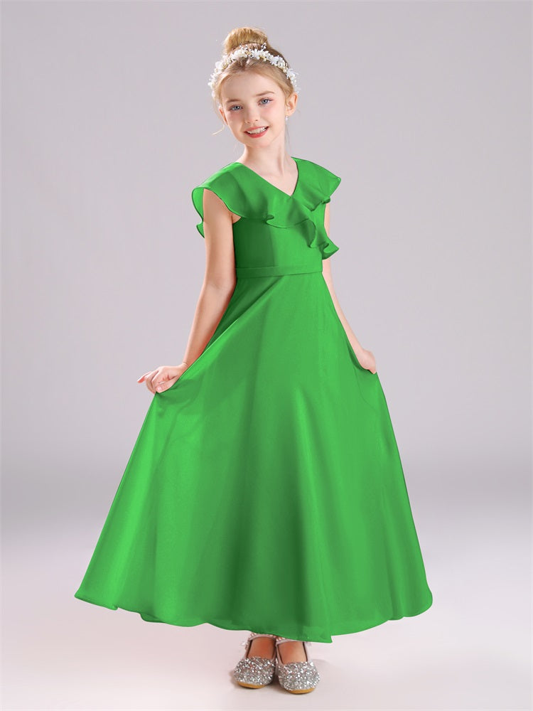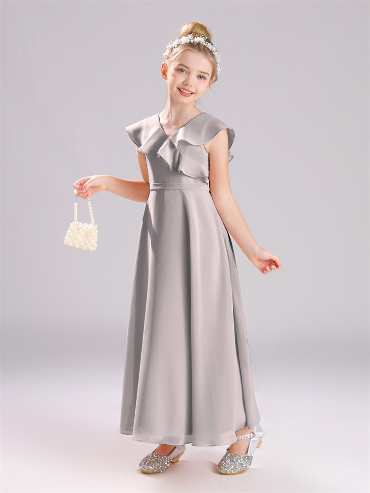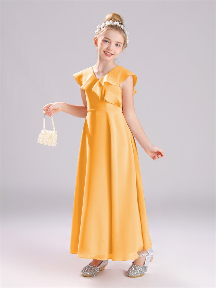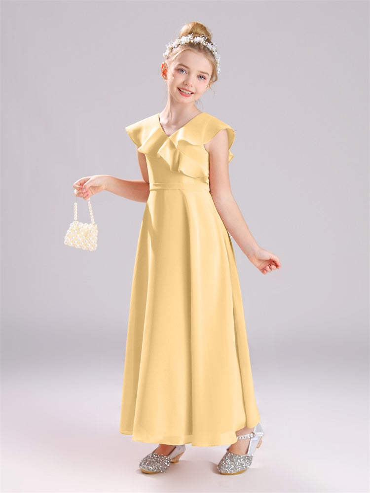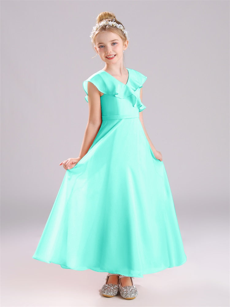 Kappenärmel V-Ausschnitt offener Rücken Chiffon Junior Brautjungfernkleider