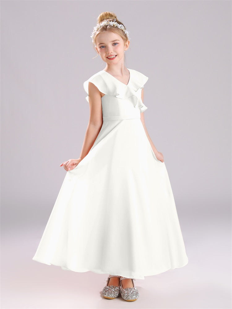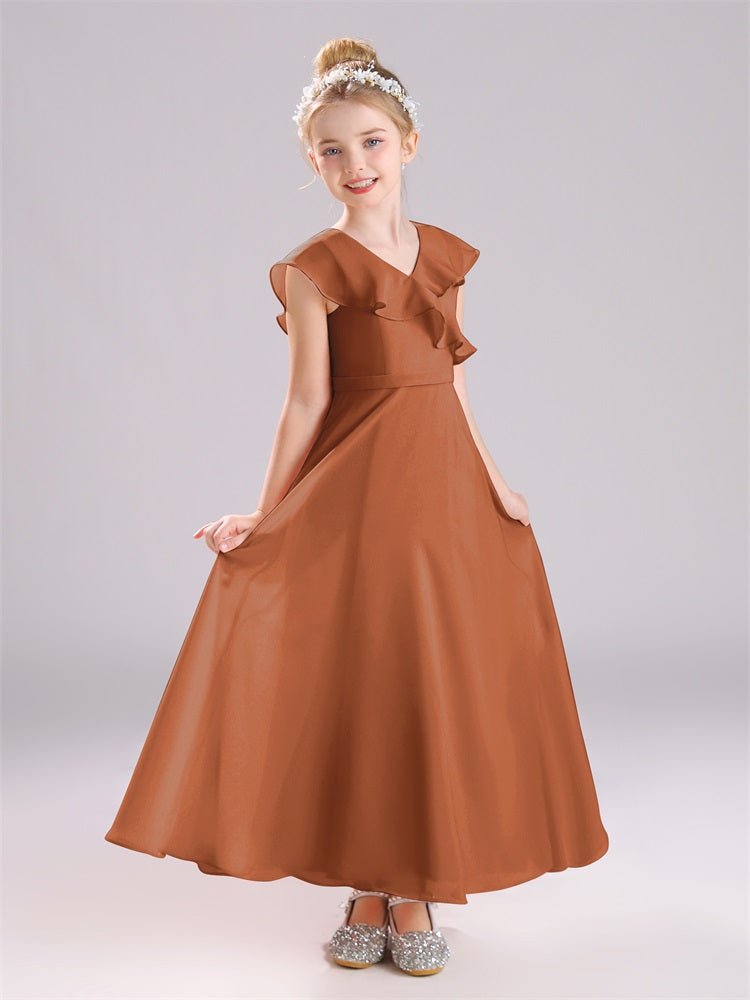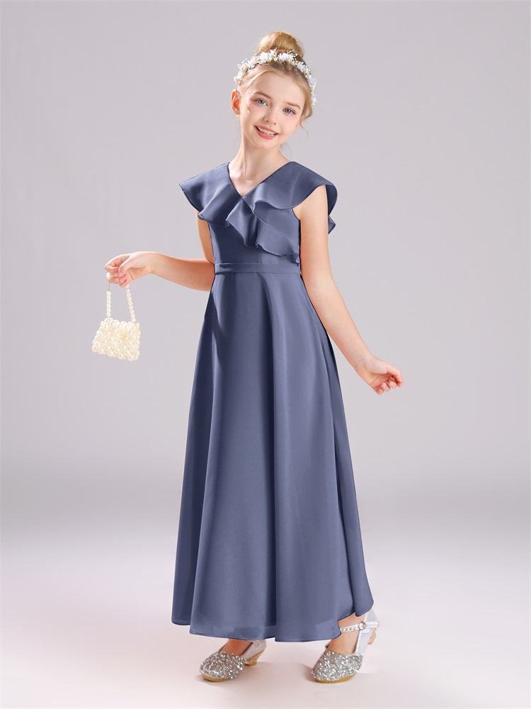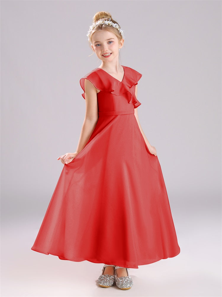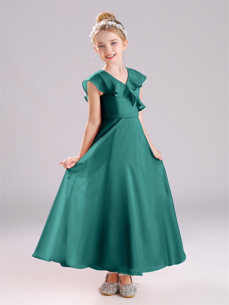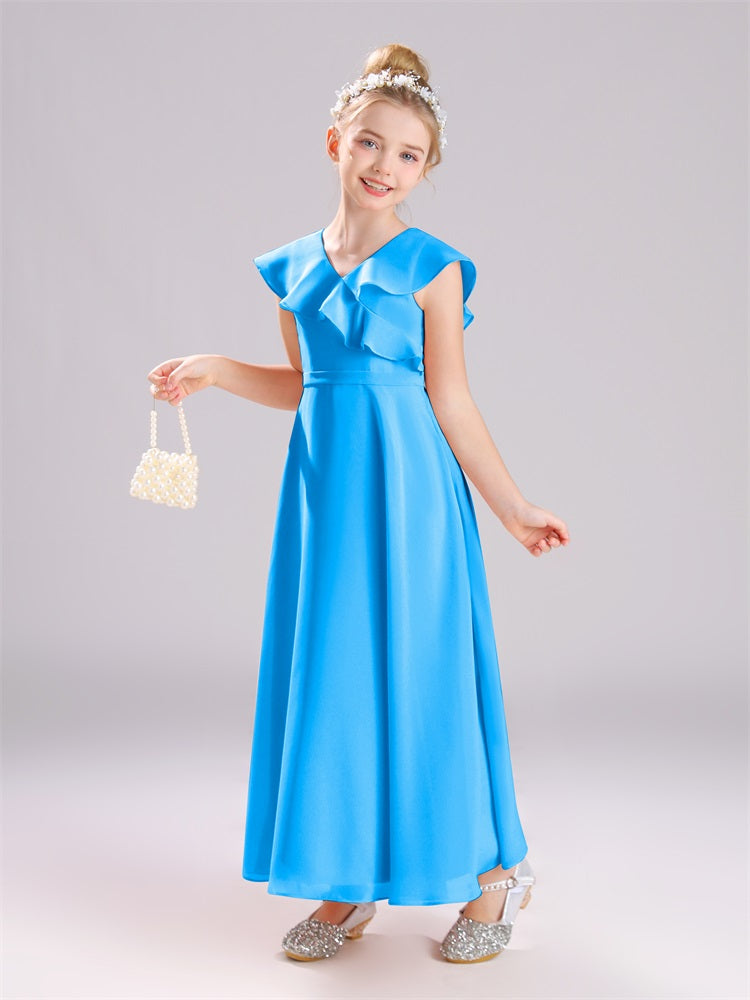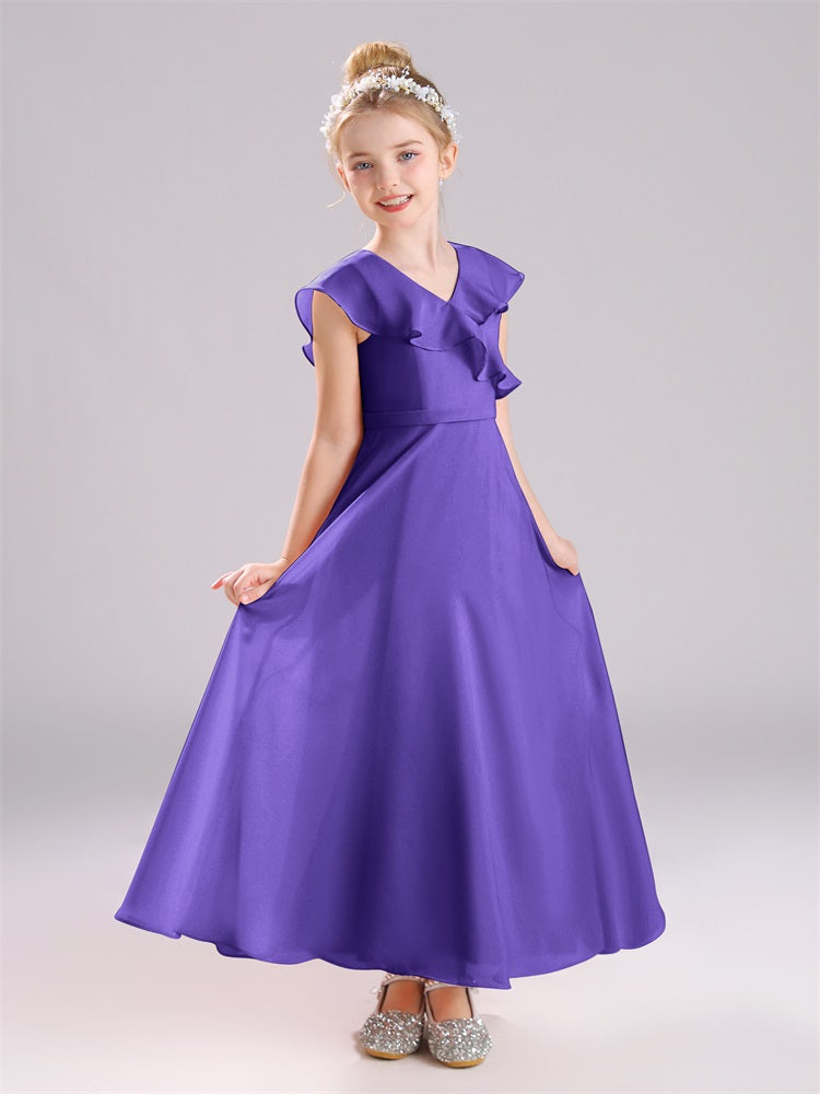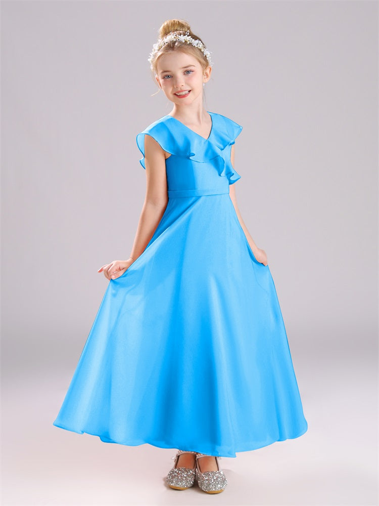 Kappenärmel V-Ausschnitt offener Rücken Chiffon Junior Brautjungfernkleider