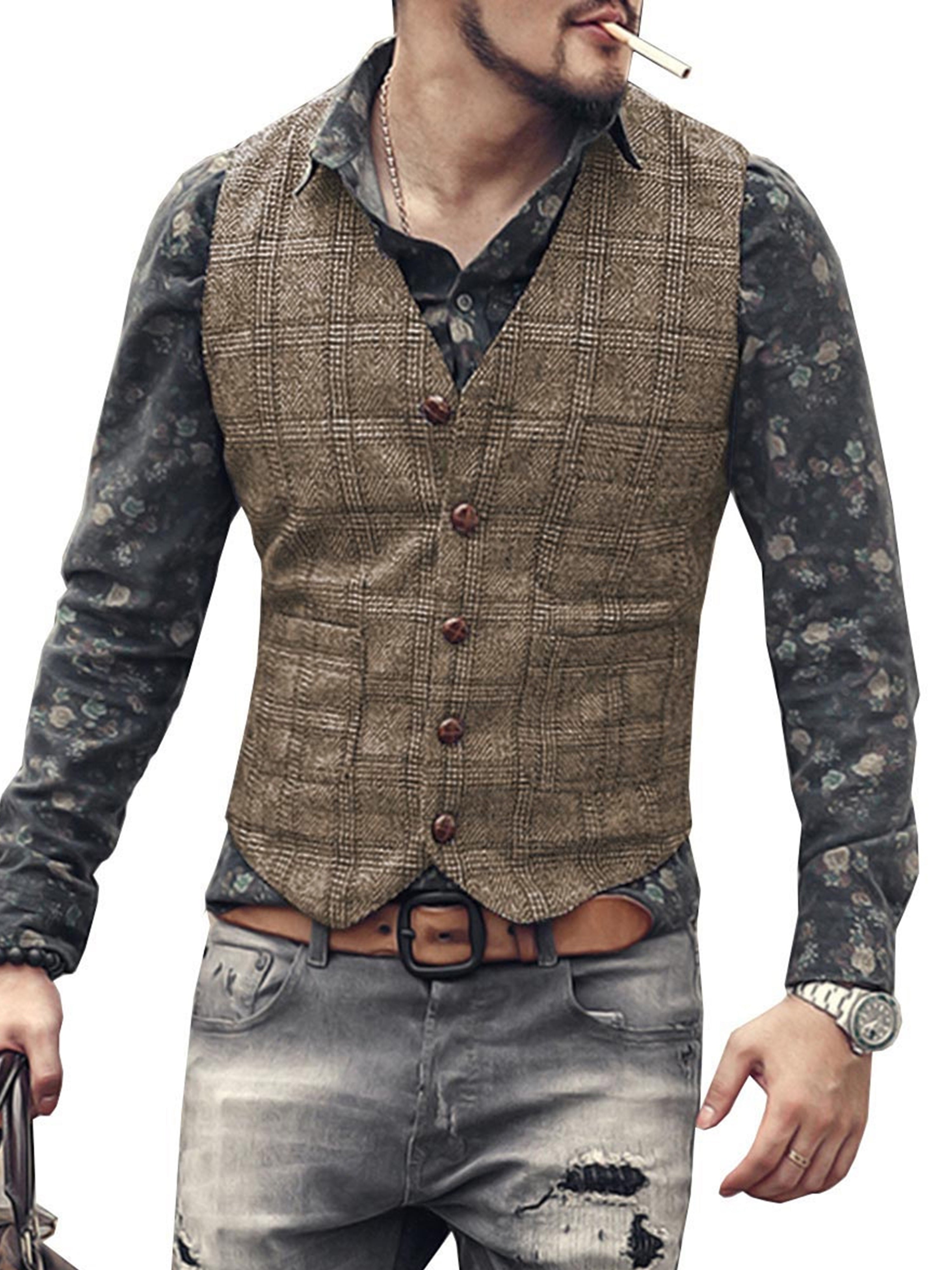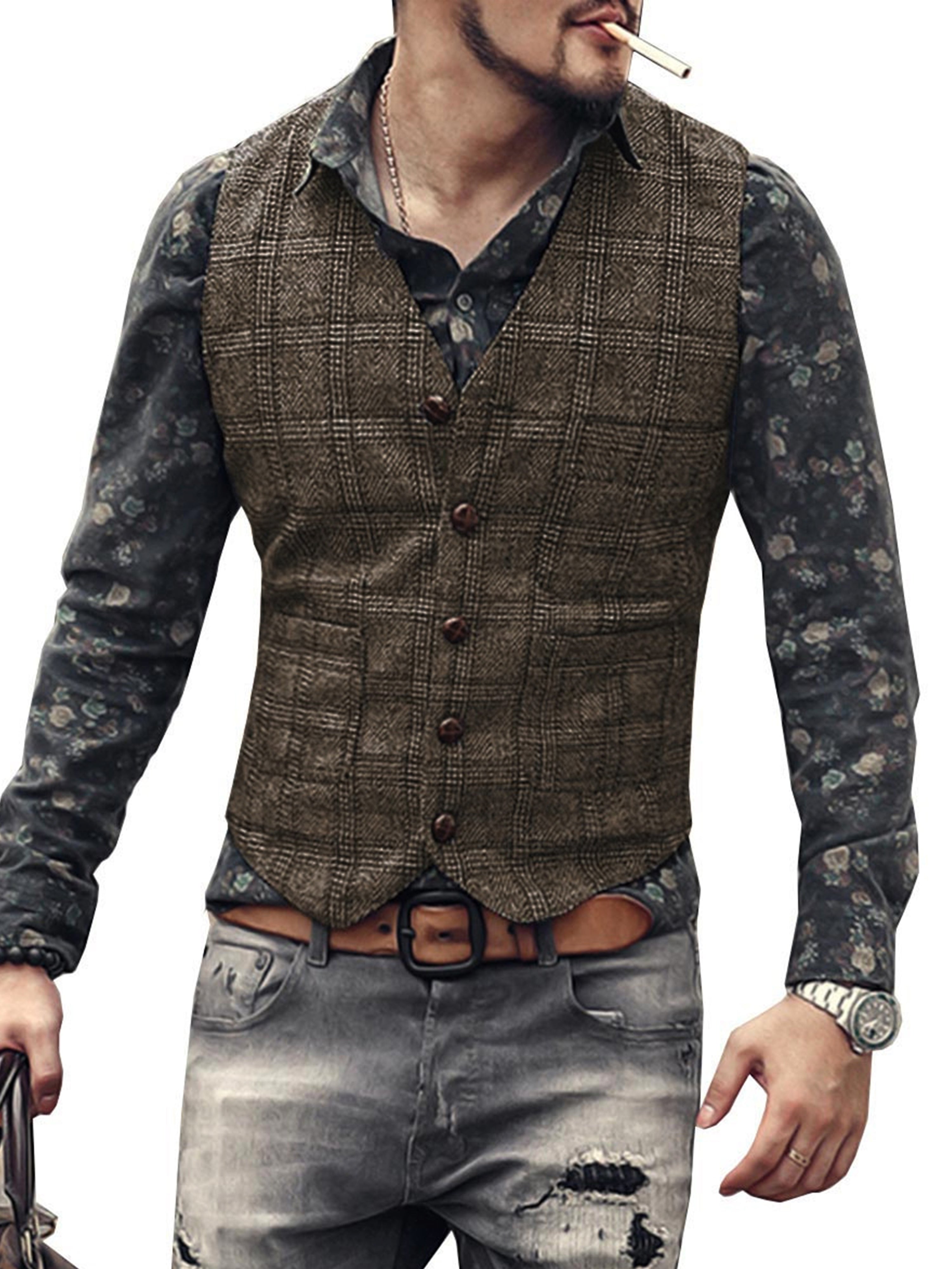 Karierte Weste für Männer Trauzeuge Slim Fit Weste des Bräutigams