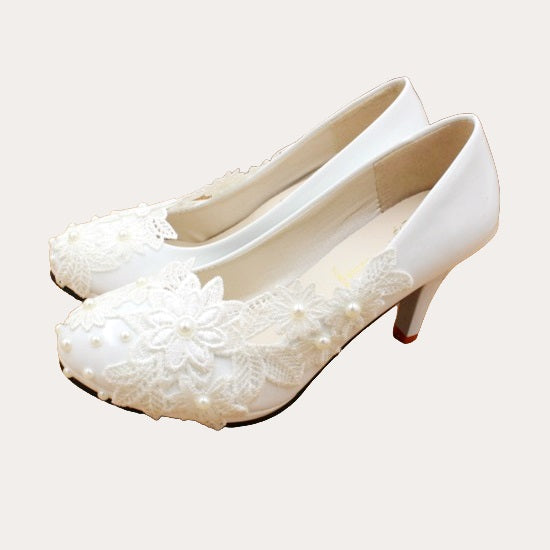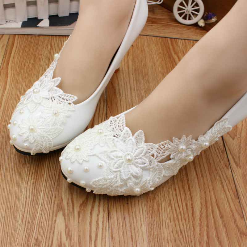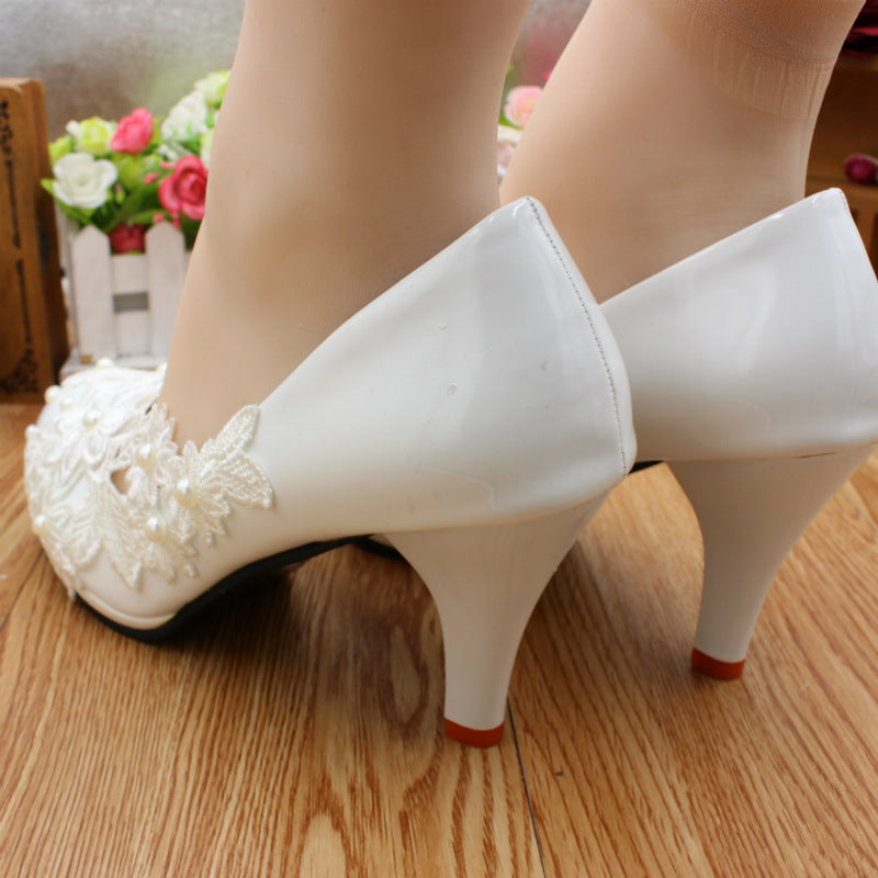 Klassische Pure Weiß Spitze Floral Peal verschönert Hochzeit Schuhe