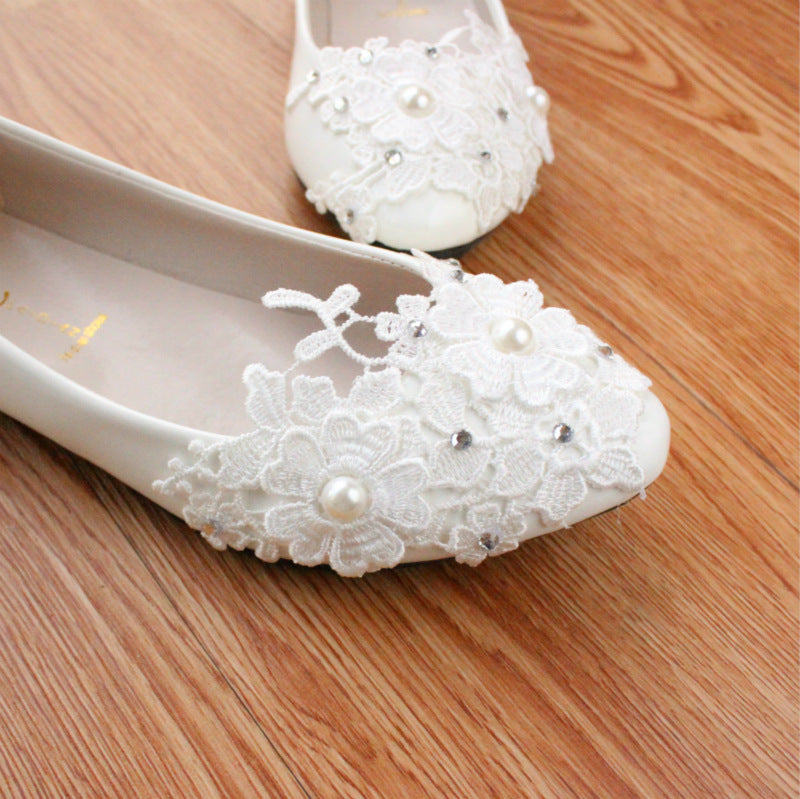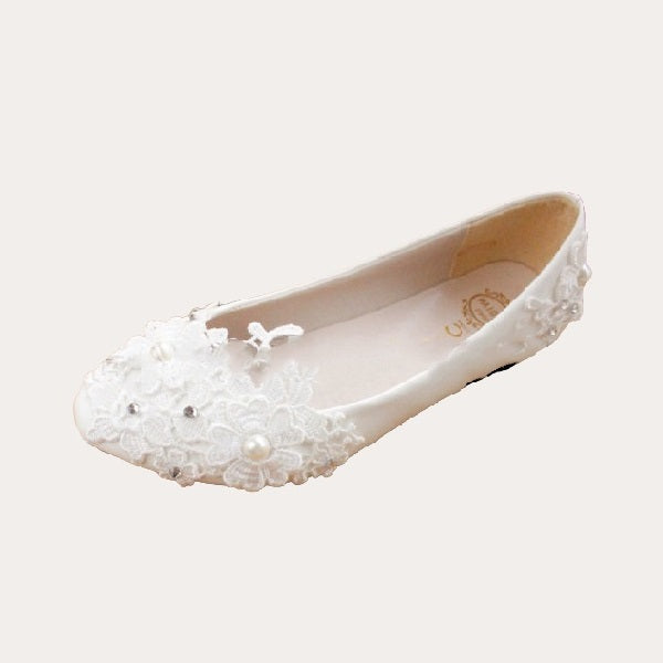 Diese Klassische Spitze Hochzeitsschuhe überzeugen mit einem wunderschönen floralen Design, funkelnden Diamanten und Perlen-Verzierungen. Der elegante Look verleiht Ihnen am besonderen Tag das gewisse Etwas. Komfortabel und stilvoll - das perfekte Schuhwerk für jede Braut.