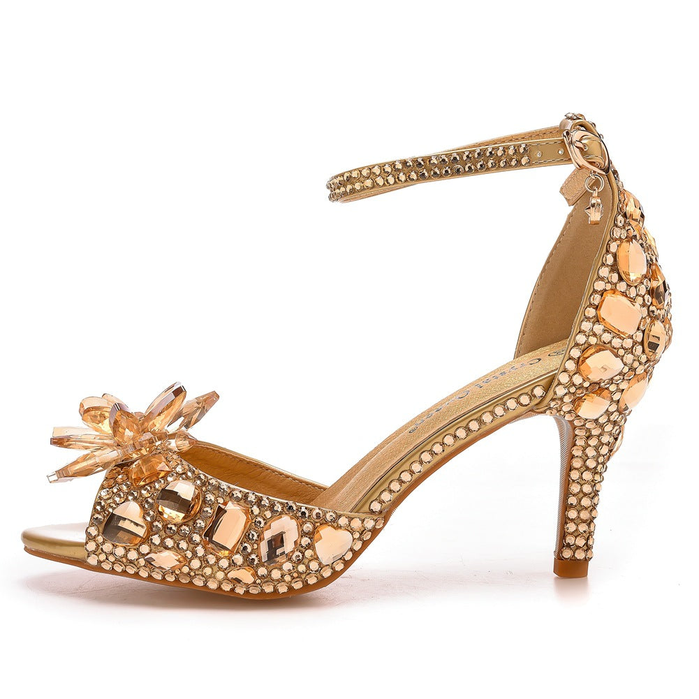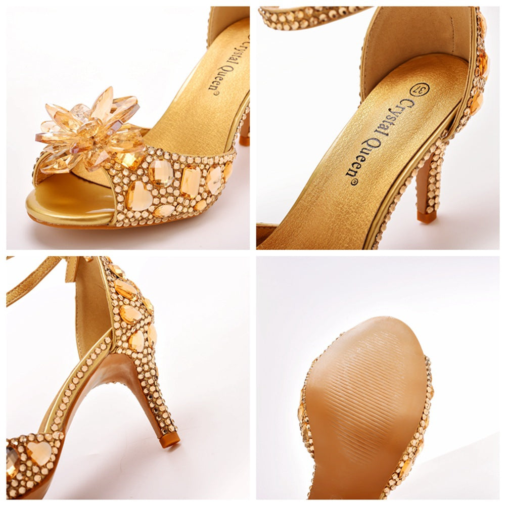 Kristall Strassdekoration Peeptoe Stiletto Knöchelriemen High Heels