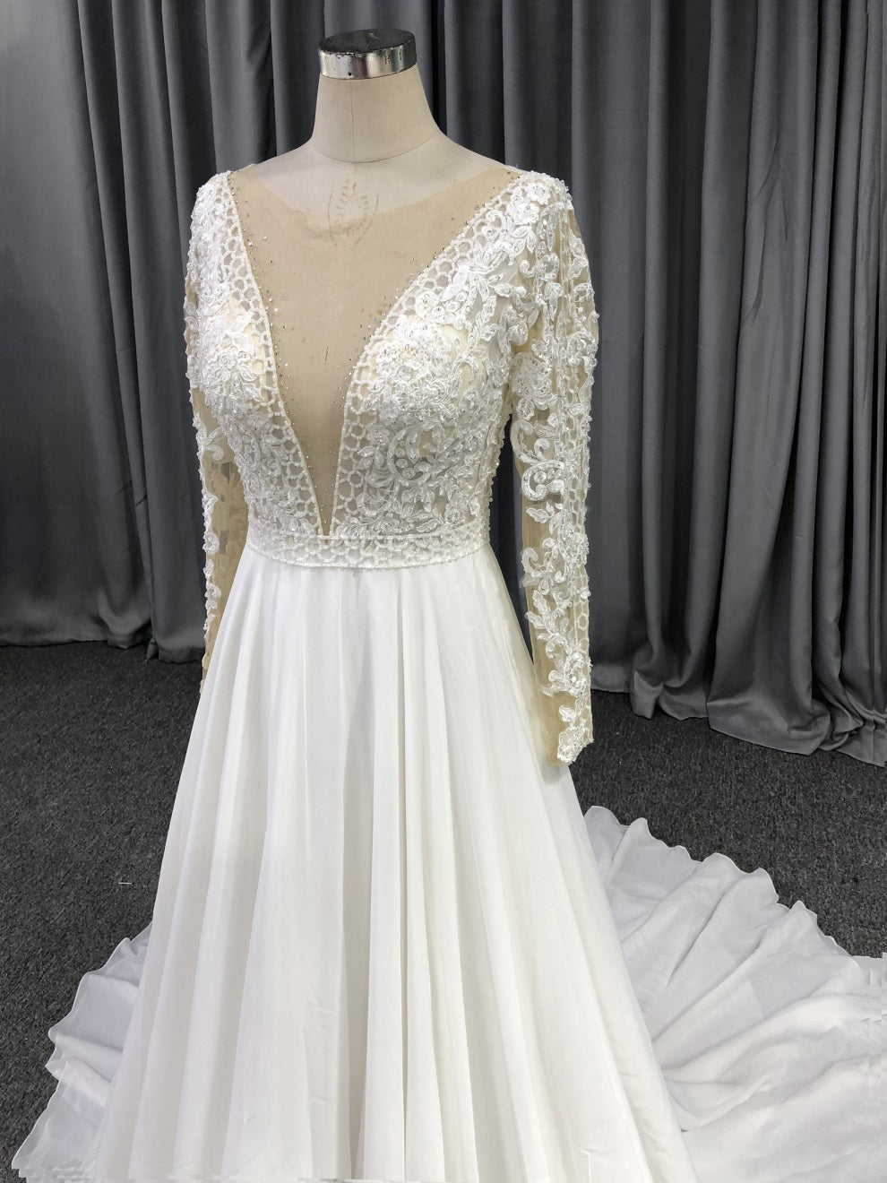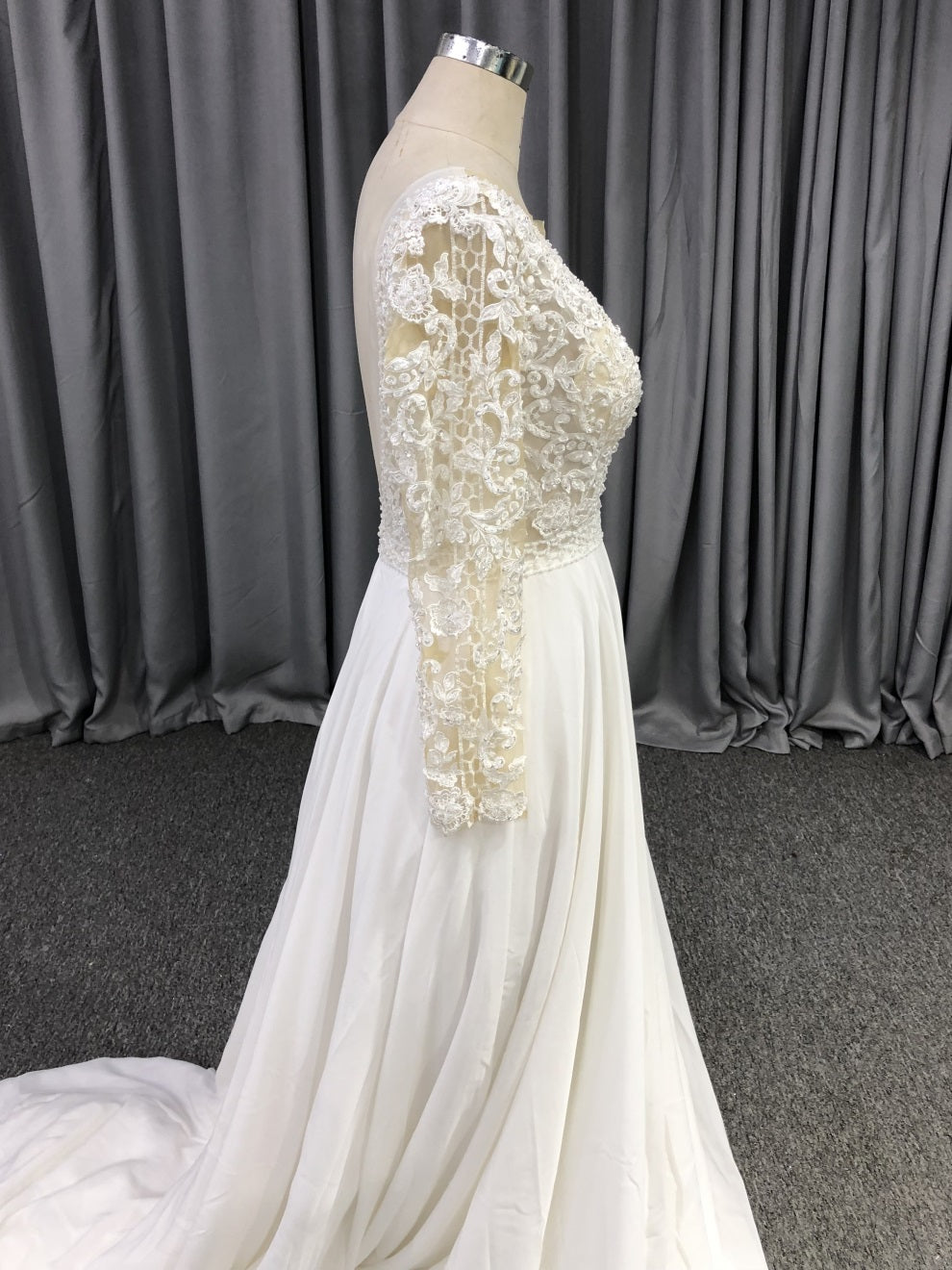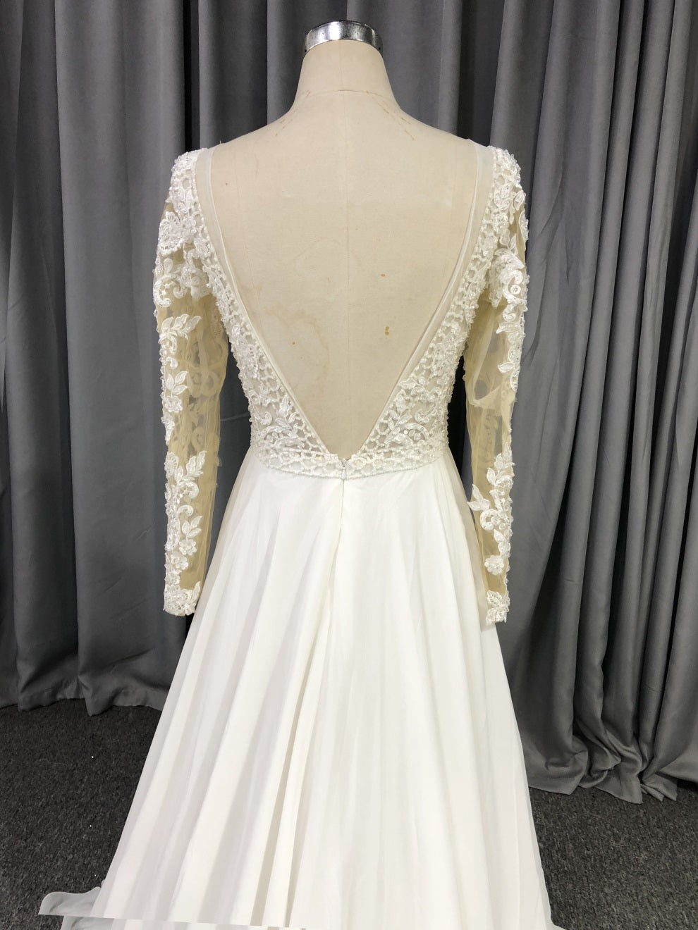 Lange Ärmel Chiffon mit Spitze A-Linie Brautkleid mit Schleppe C0017