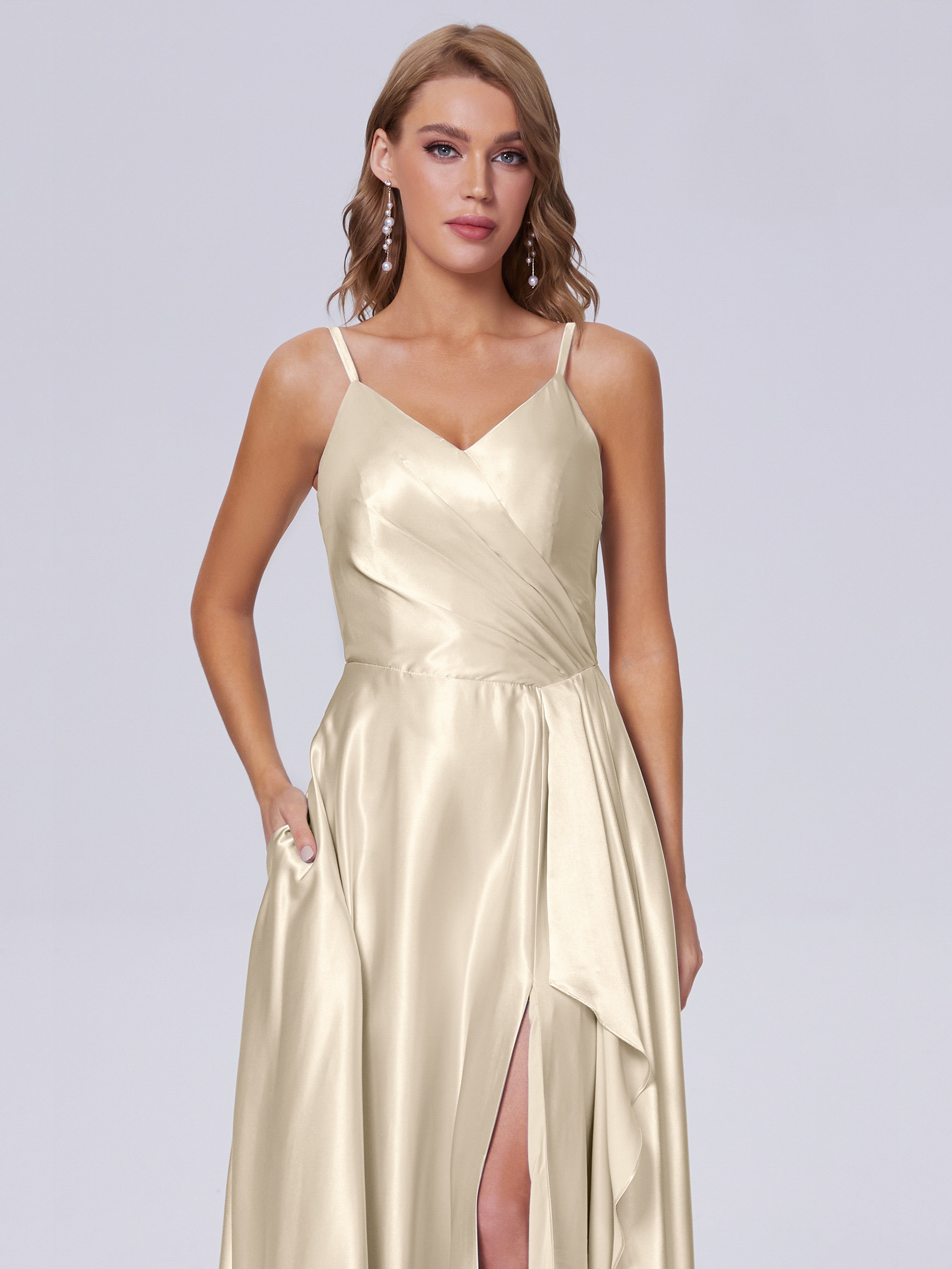 Lila Asymmetrische Weichem Satin Schlitz-Brautjungfernkleider