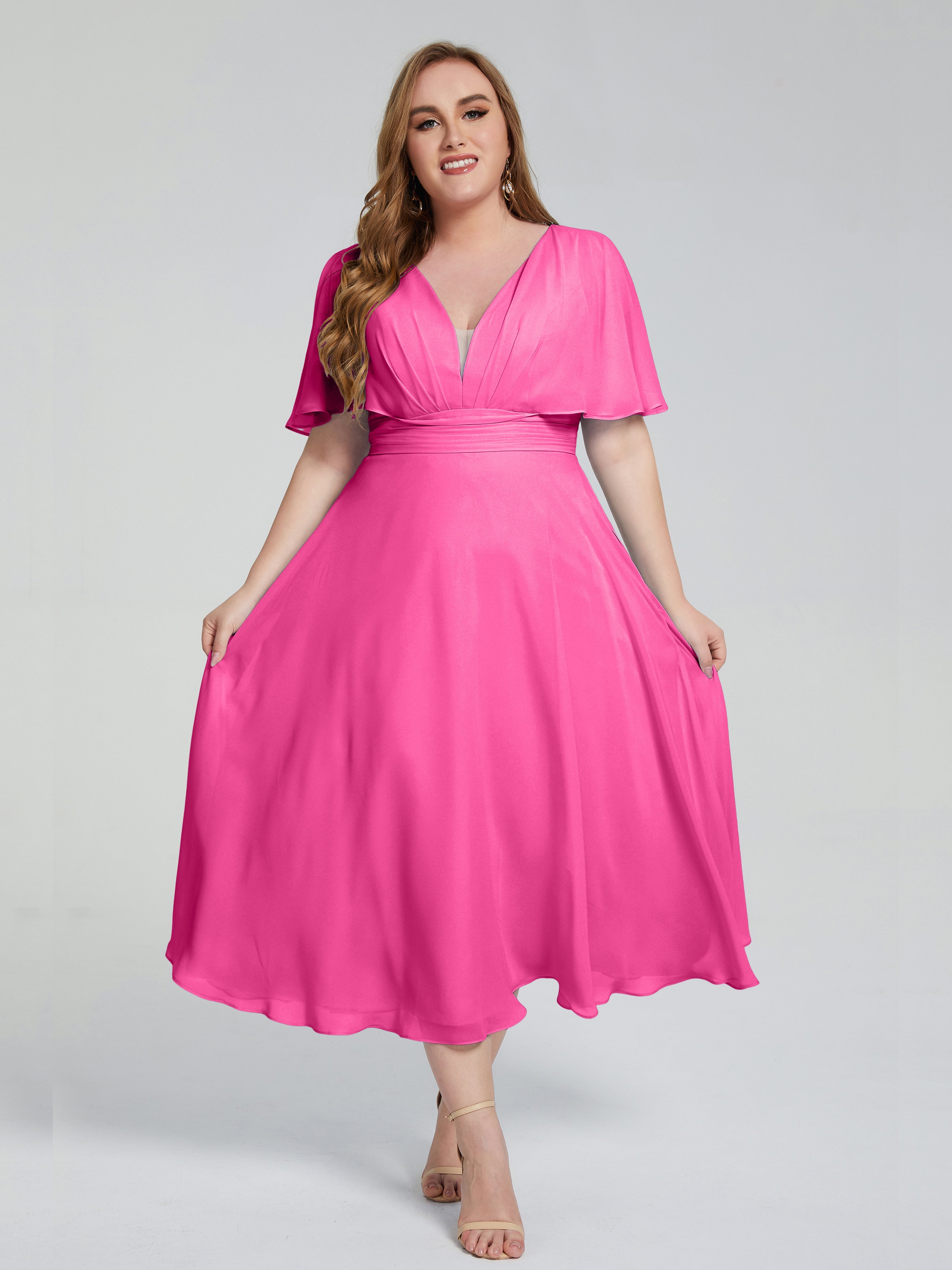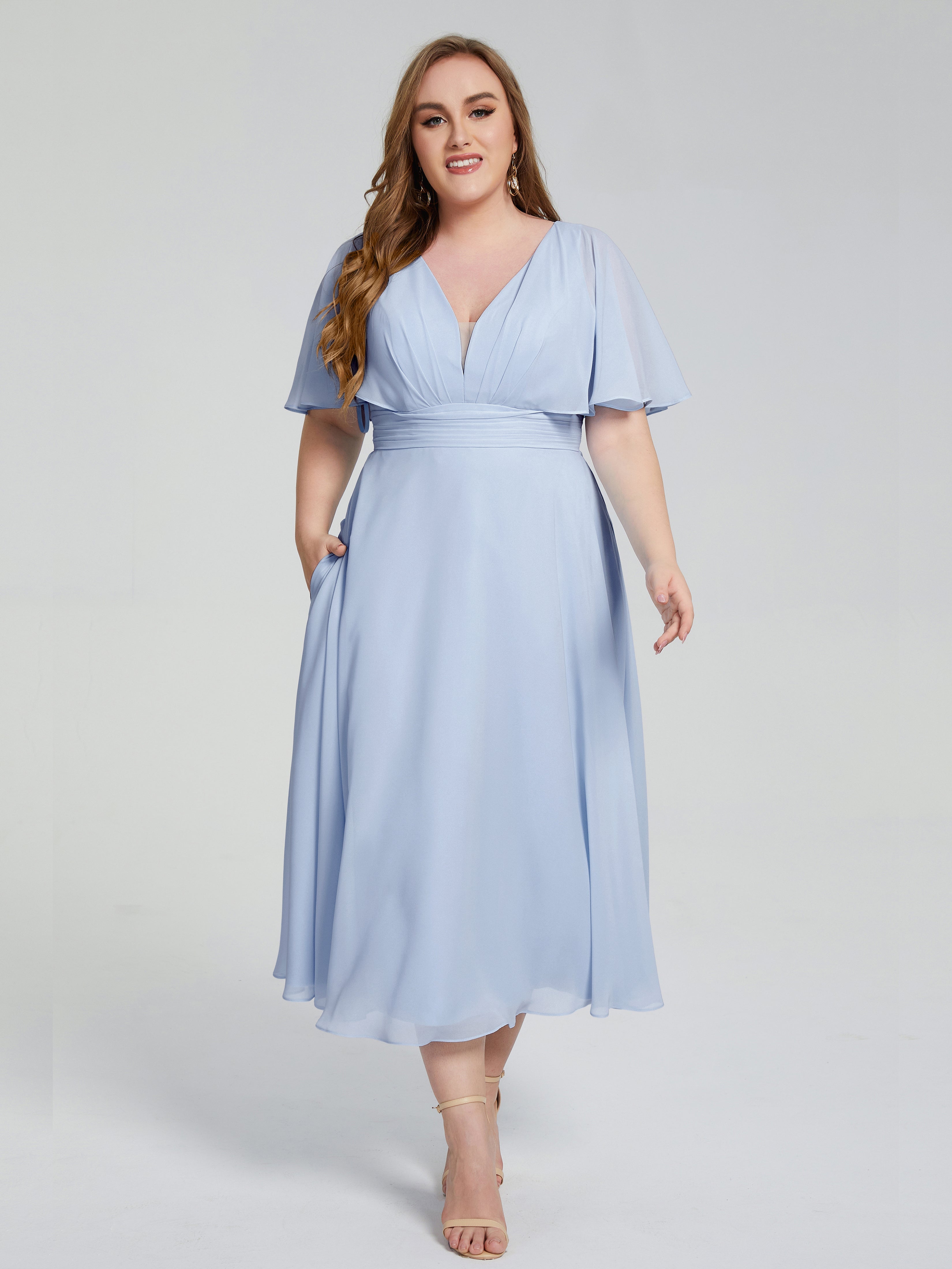 - Wadenlanges Chiffonkleid.