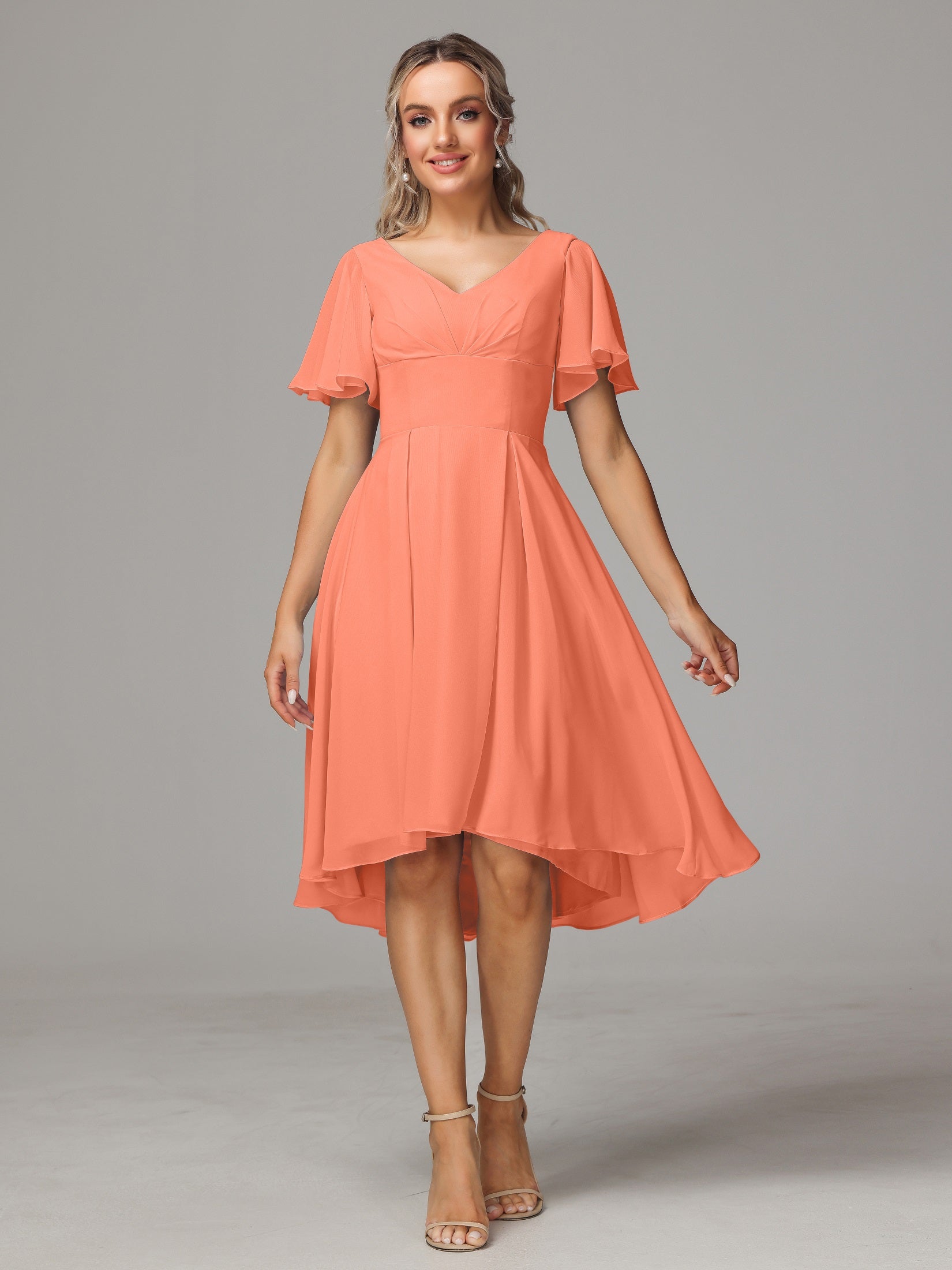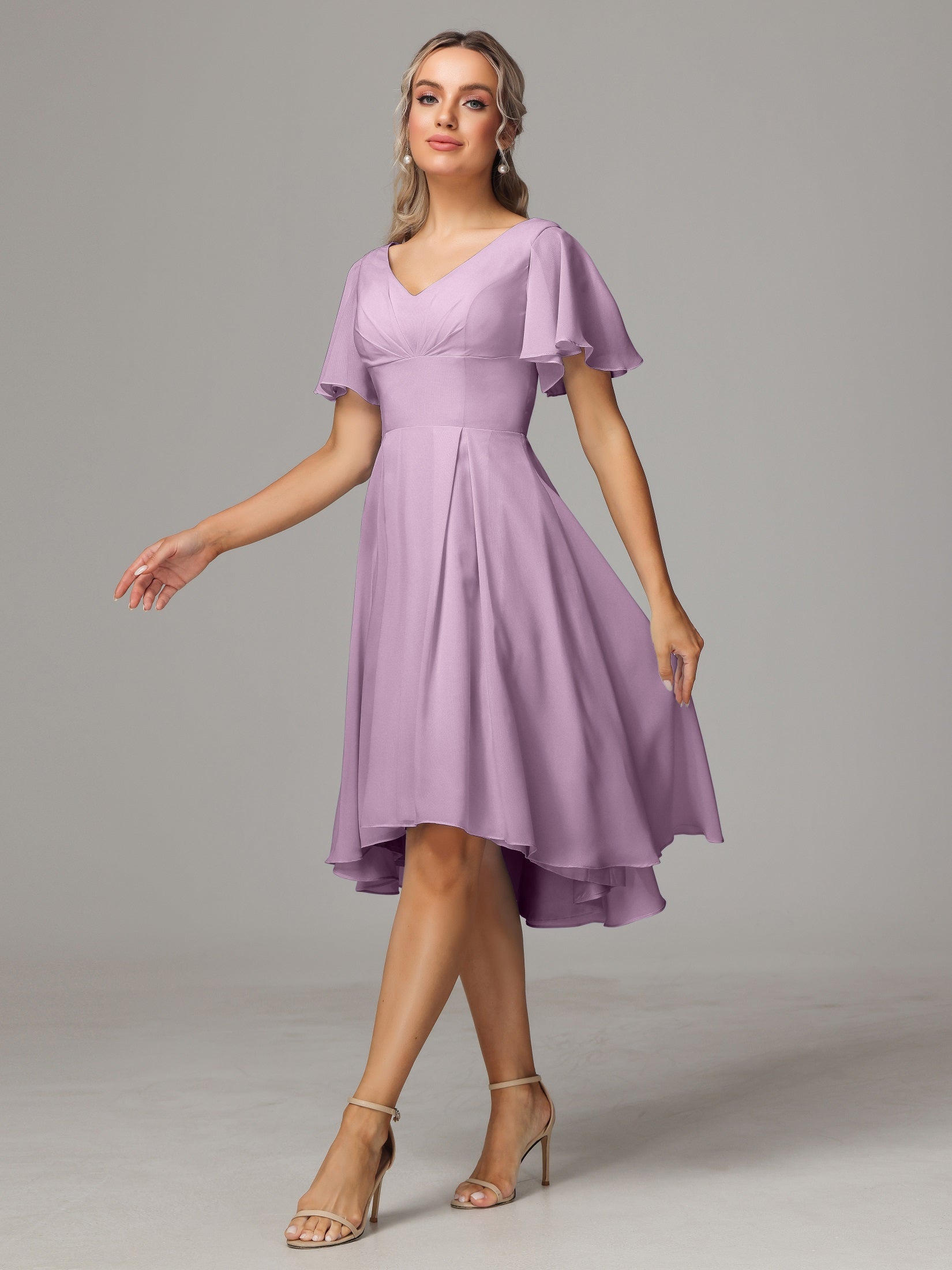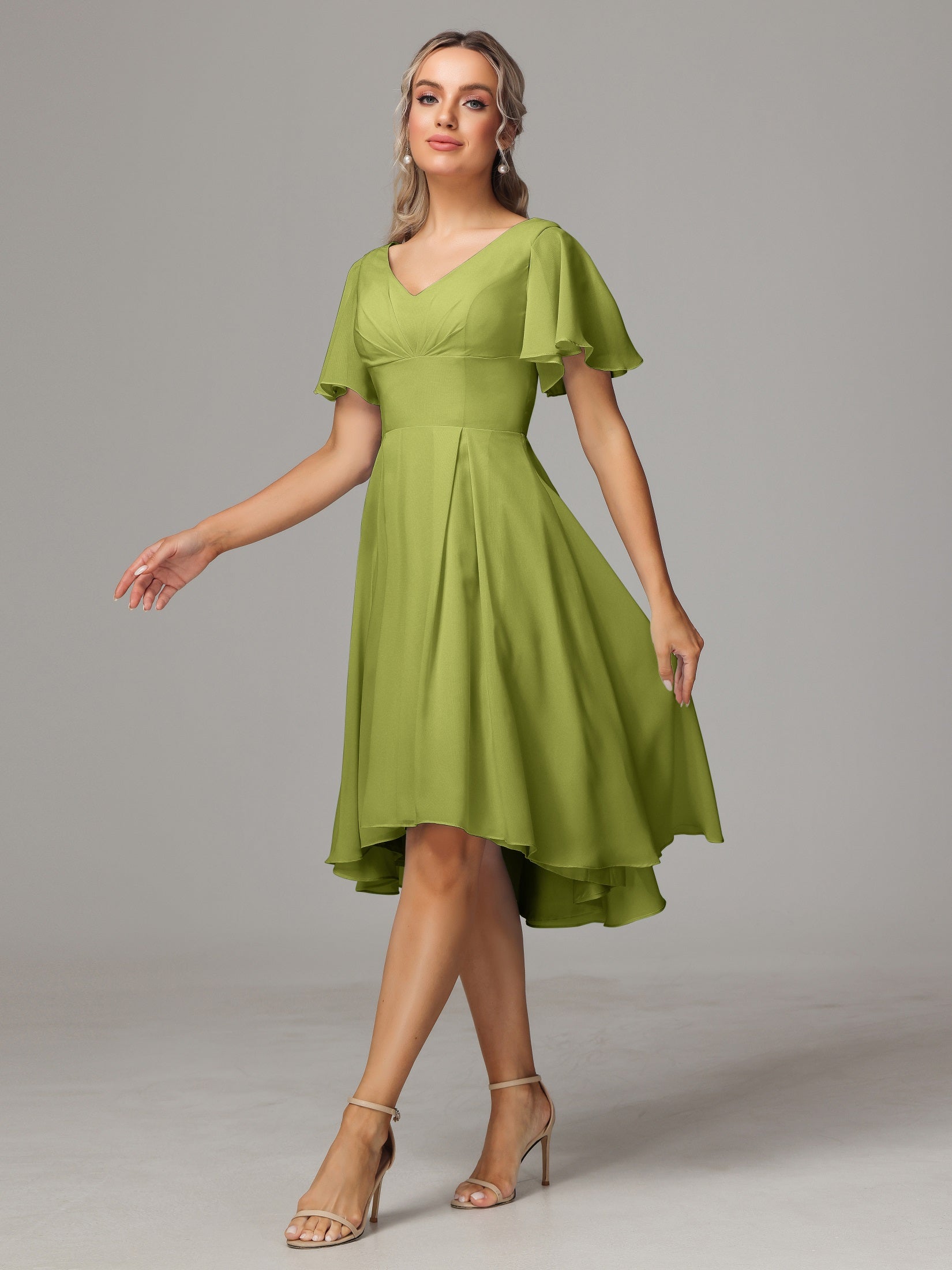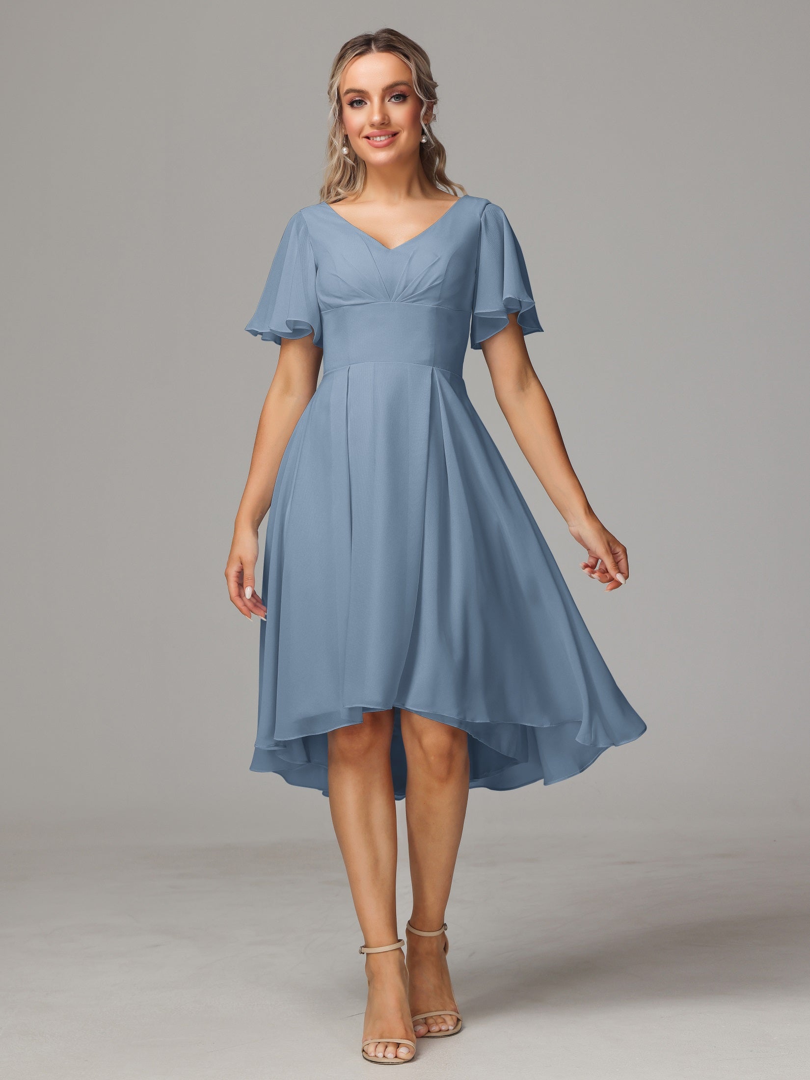 Lumina V-Ausschnitt Asymmetrisch Trapezförmig Chiffon Brautjungfernkleider