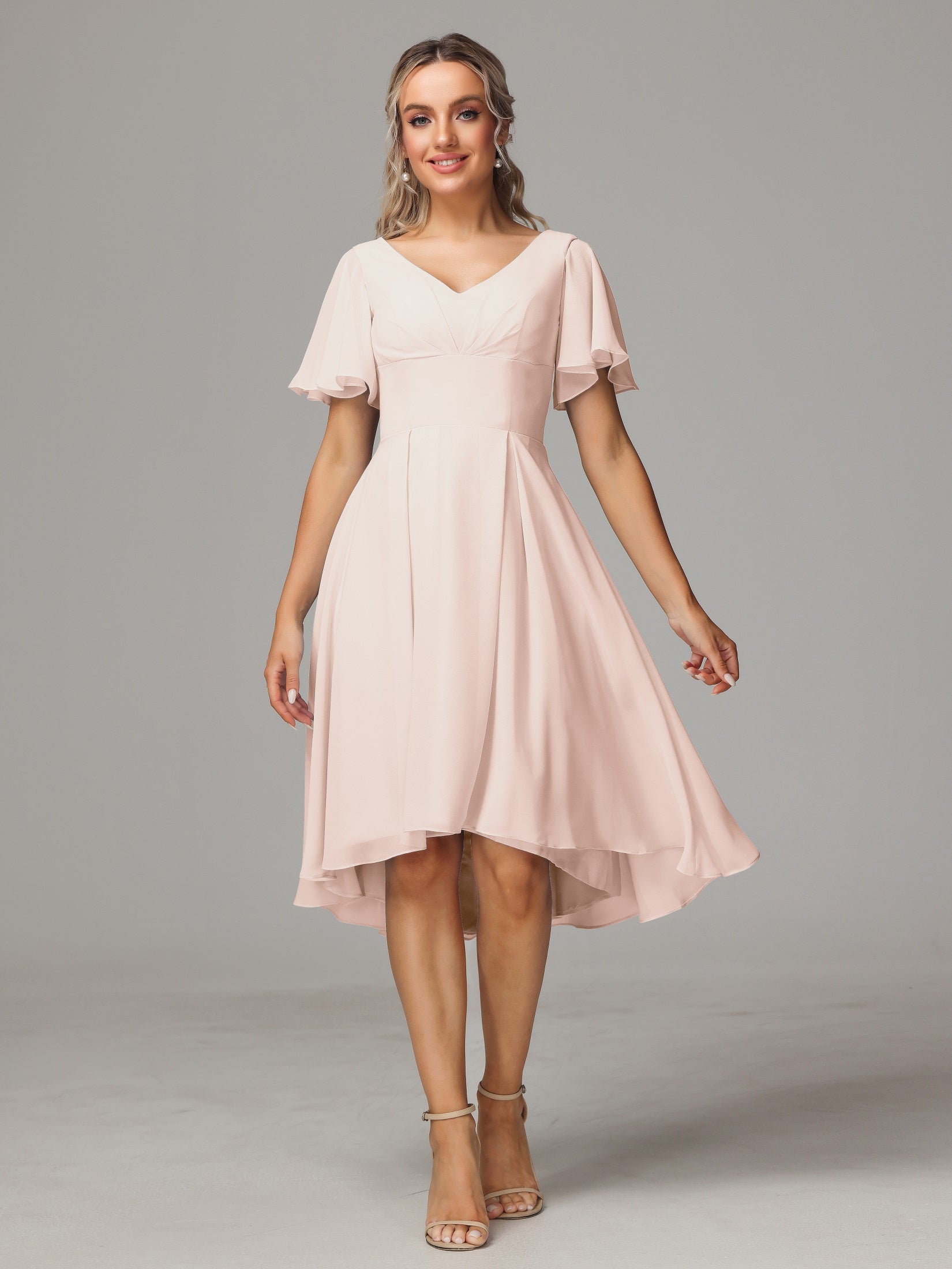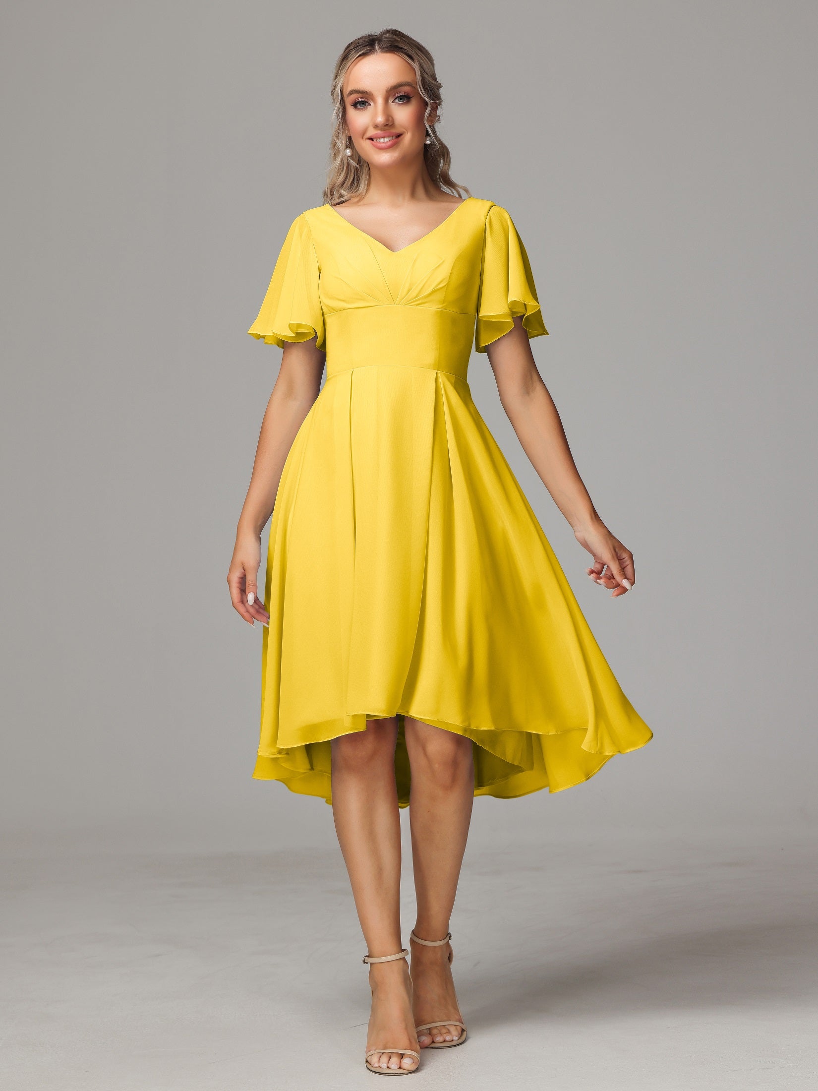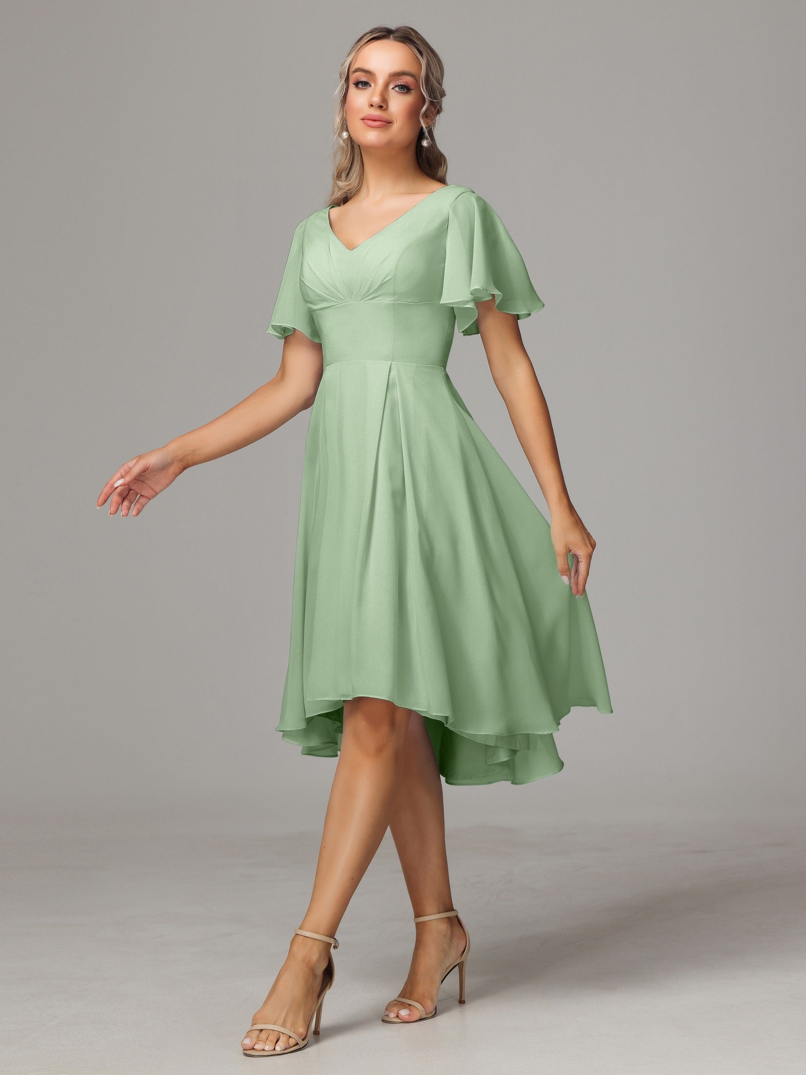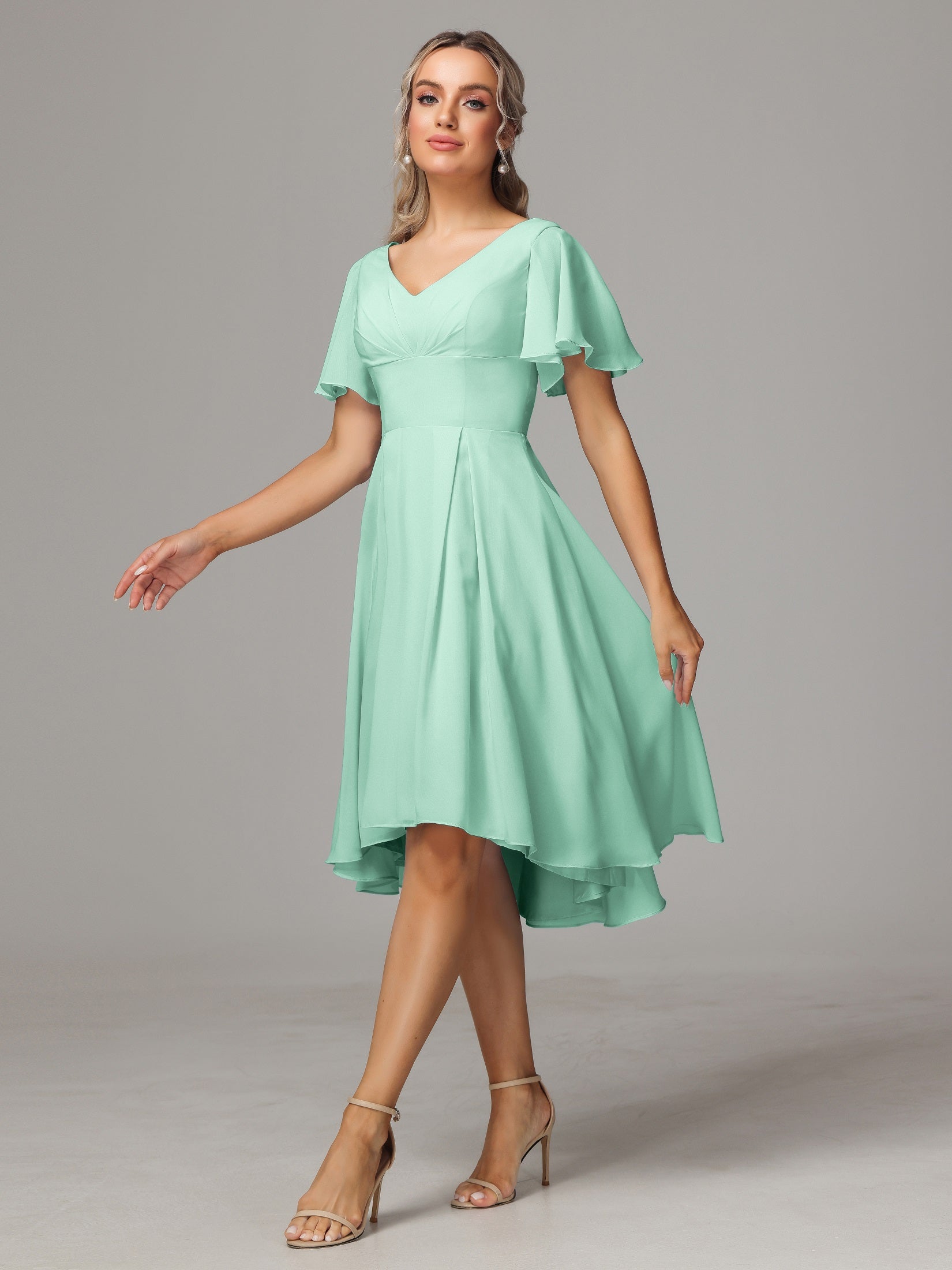 Lumina V-Ausschnitt Asymmetrisch Trapezförmig Chiffon Brautjungfernkleider