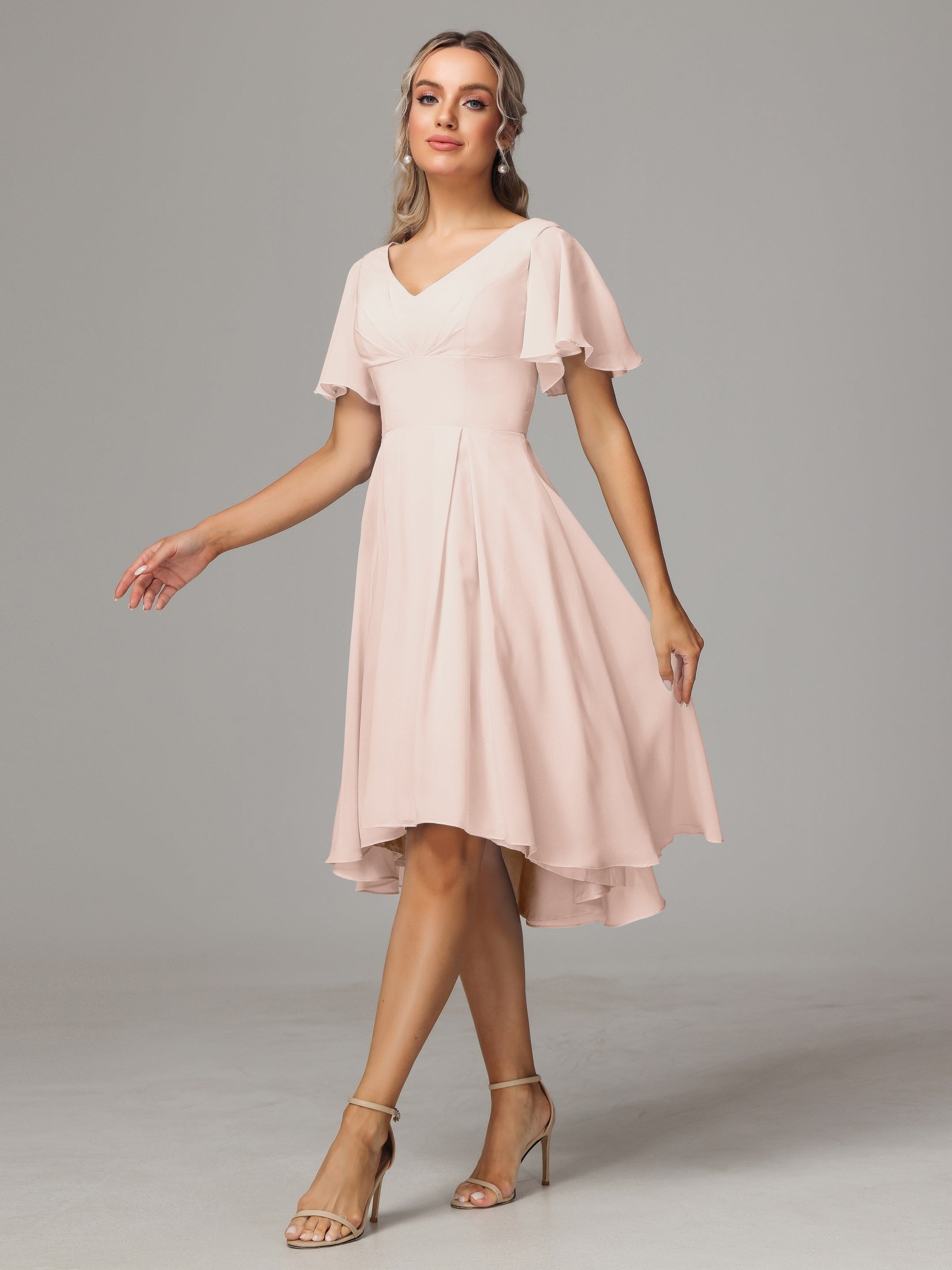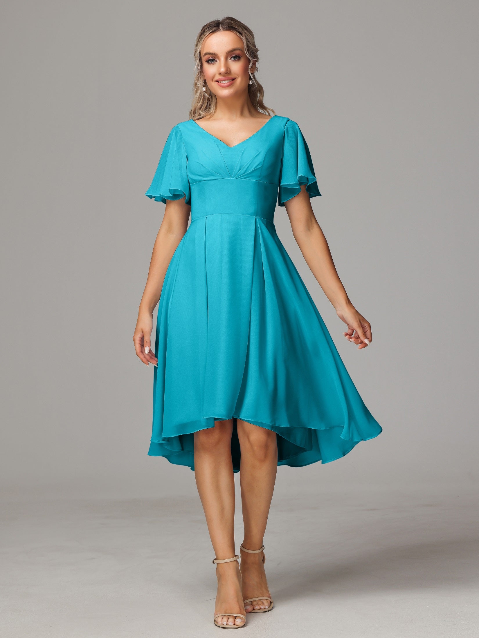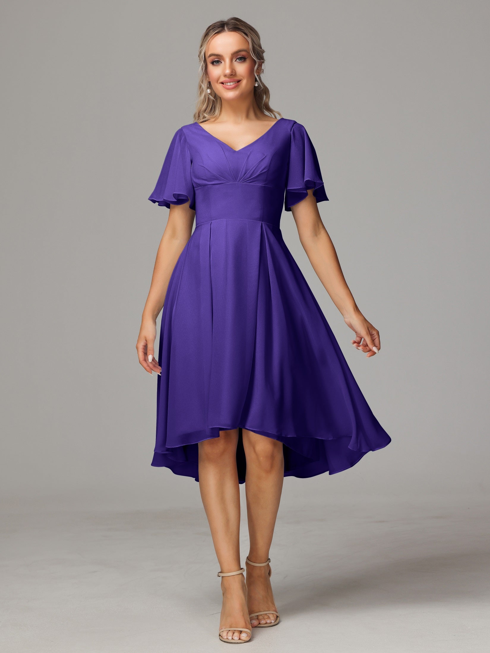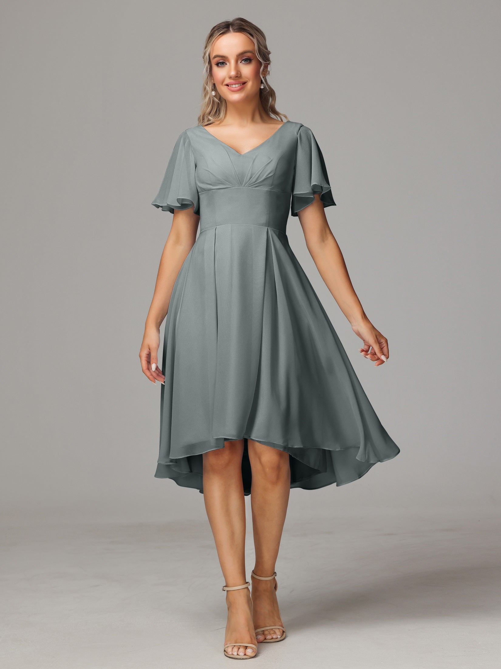 Lumina V-Ausschnitt Asymmetrisch Trapezförmig Chiffon Brautjungfernkleider