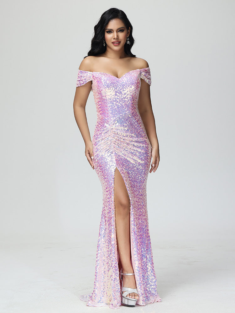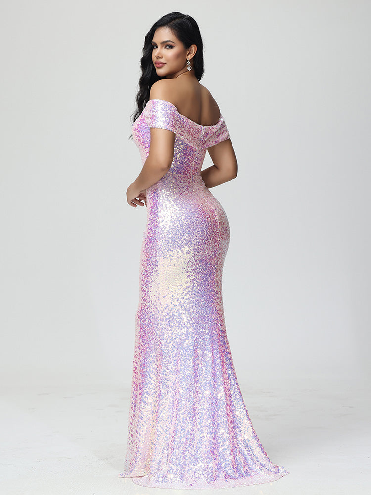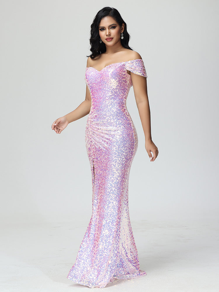 Pailletten außerhalb der Schulter geteilt bodenlange Abendkleider