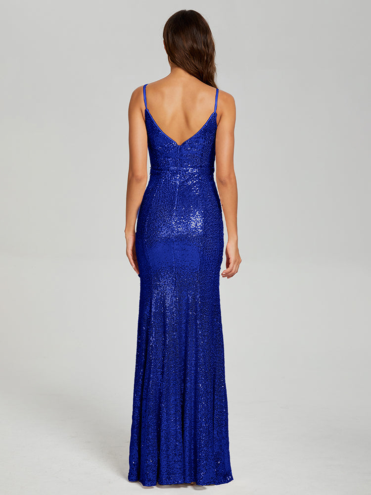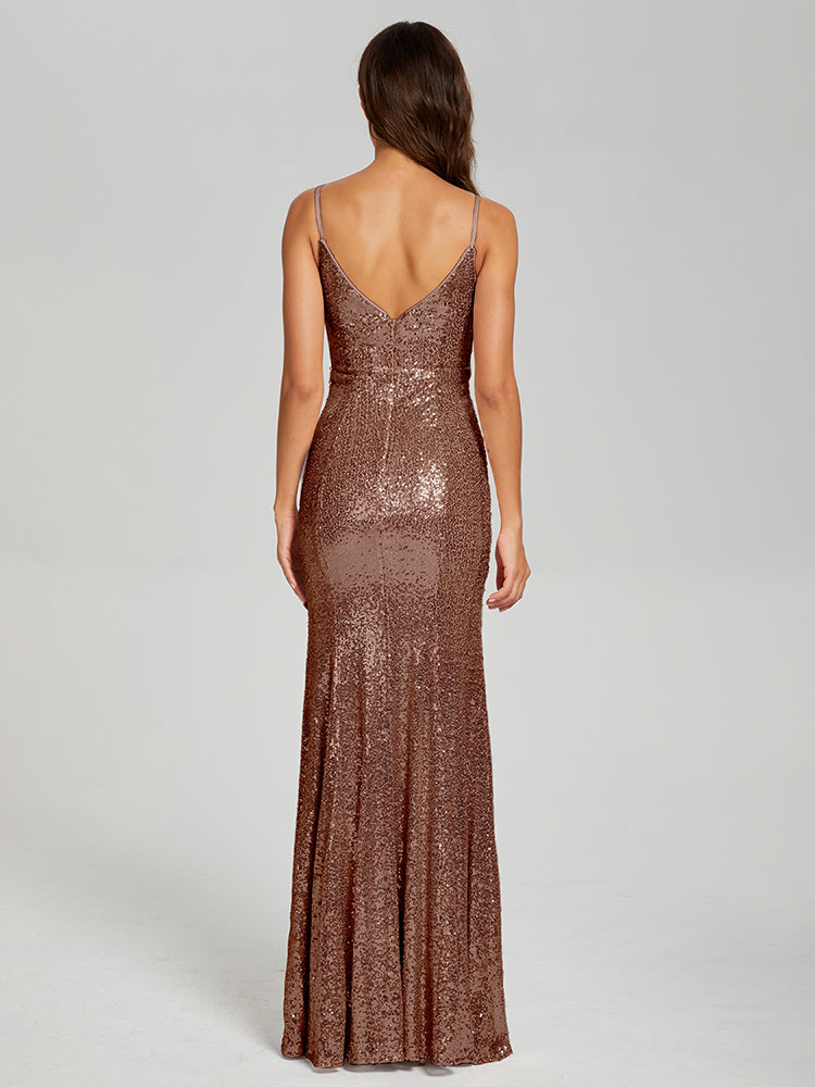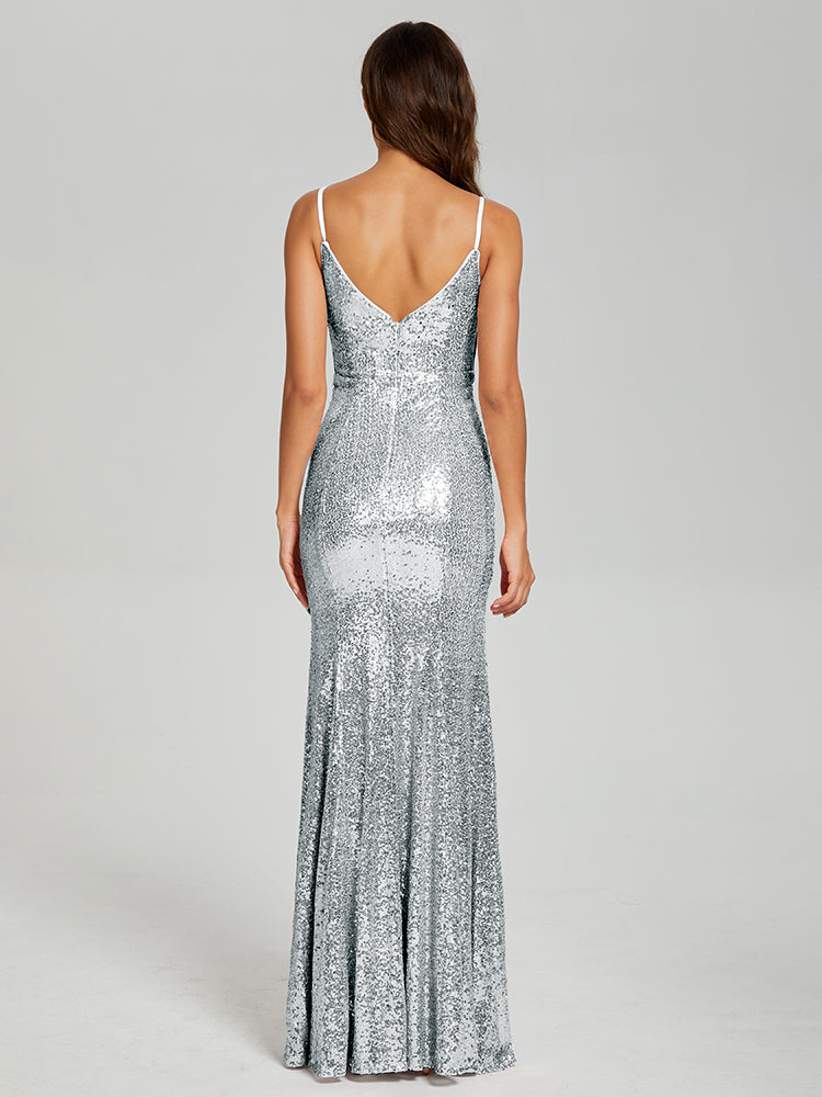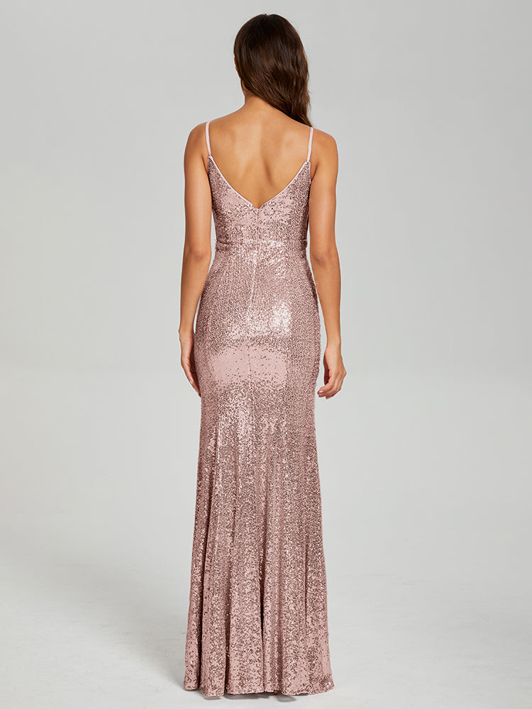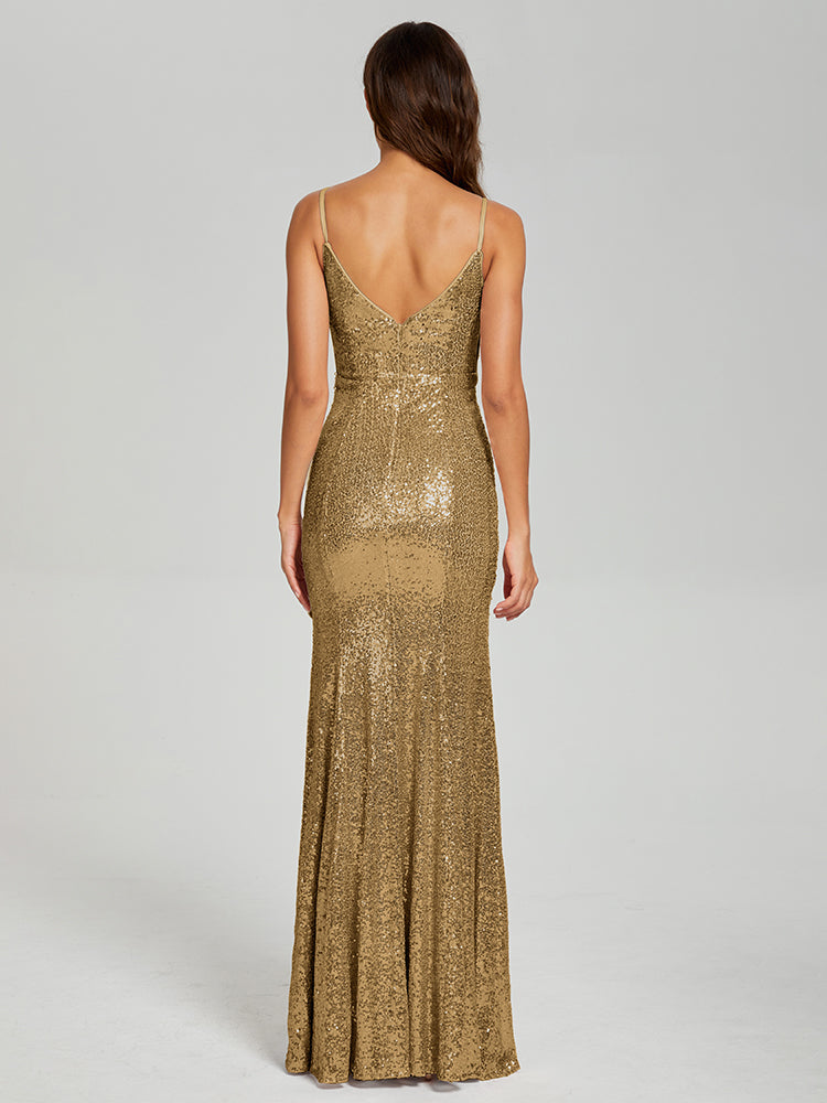 Pailletten Spaghetti-Träger Geschlitzt Abendkleider