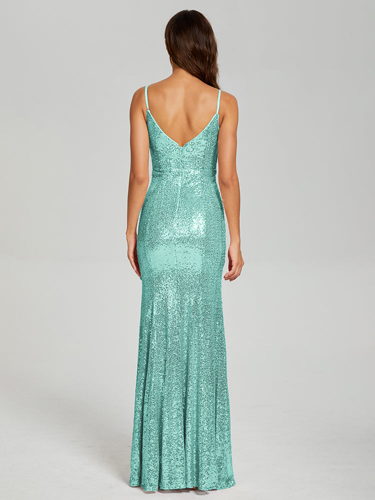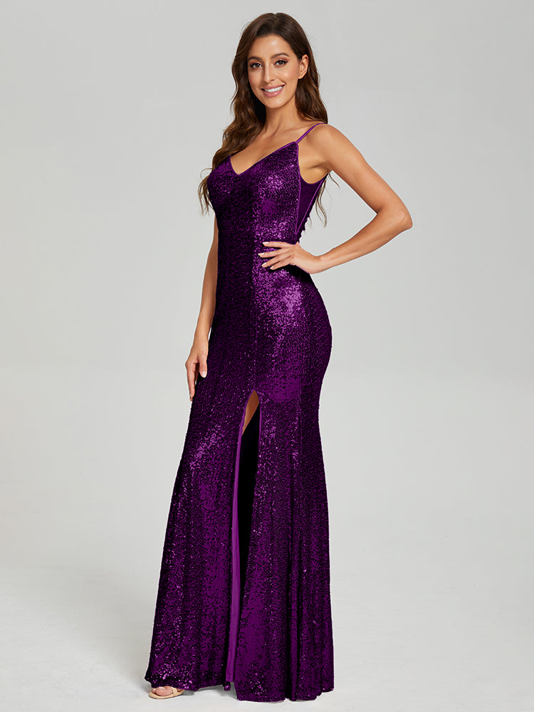 Verzaubern Sie die Nacht mit unseren atemberaubenden Pailletten Spaghetti-Träger Geschlitzt Abendkleider! Die funkelnden Pailletten und der geschlitzte Schnitt machen Sie zum Blickfang jeder Veranstaltung. Lassen Sie sich in diesen elegante Kleidern davontragen und fühlen Sie sich wie eine Königin.