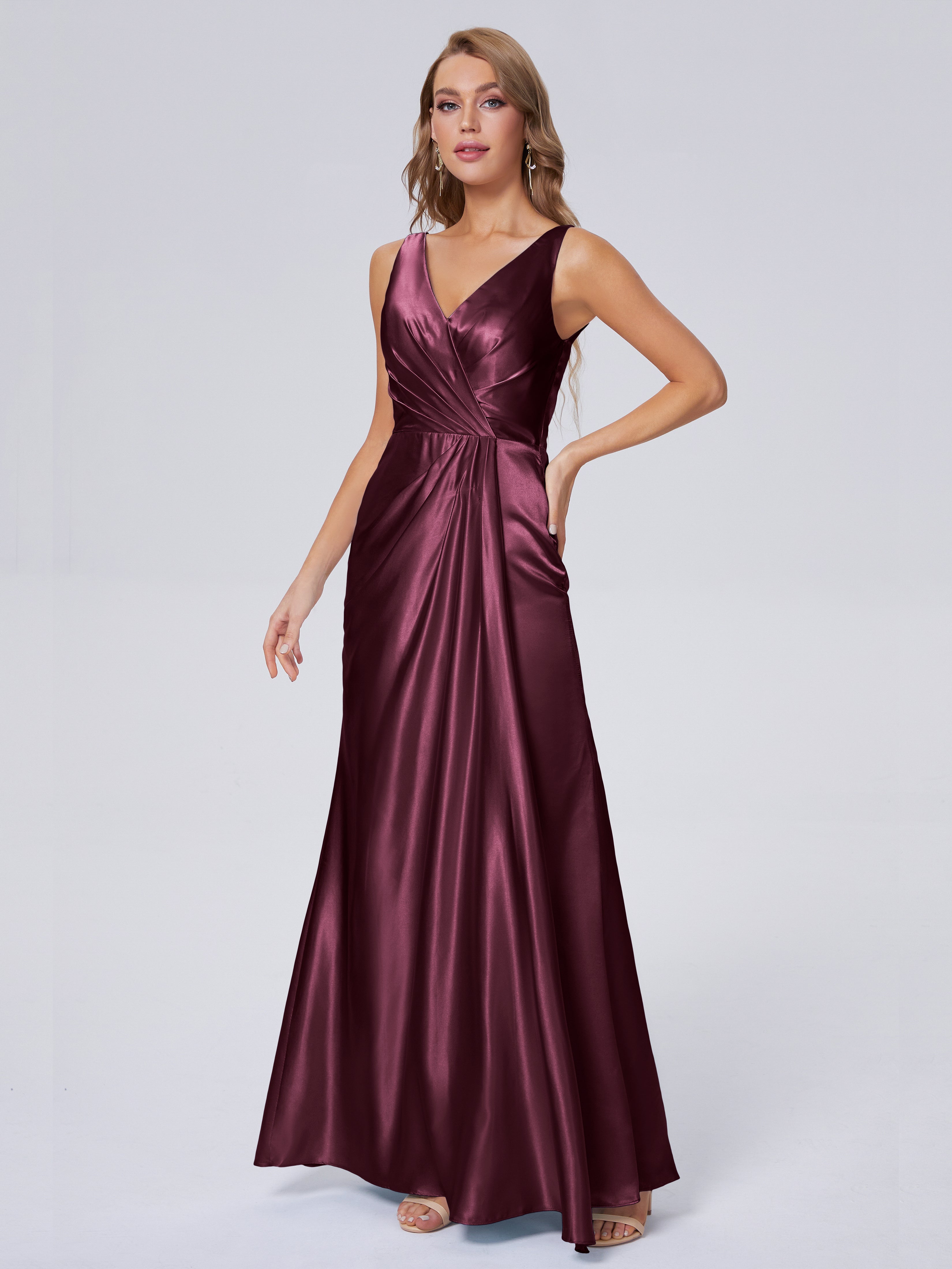 Parker V-Ausschnitt Weichem Satin Brautjungfernkleider