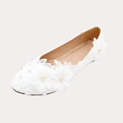 Diese reines Weiß Lily Lace Schuhe sind perfekt für Ihre Hochzeit. Die verzierten Diamanten verleihen einen zusätzlichen Glanz und die stilvollen Blätter sorgen für eine elegante Note. Ein Muss für jede Braut, die ihren Look perfektionieren möchte.