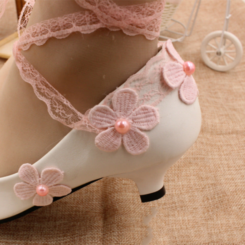 Ribbon Flower Lace Kleine Blume Spitze Elegante Hochzeitsschuhe