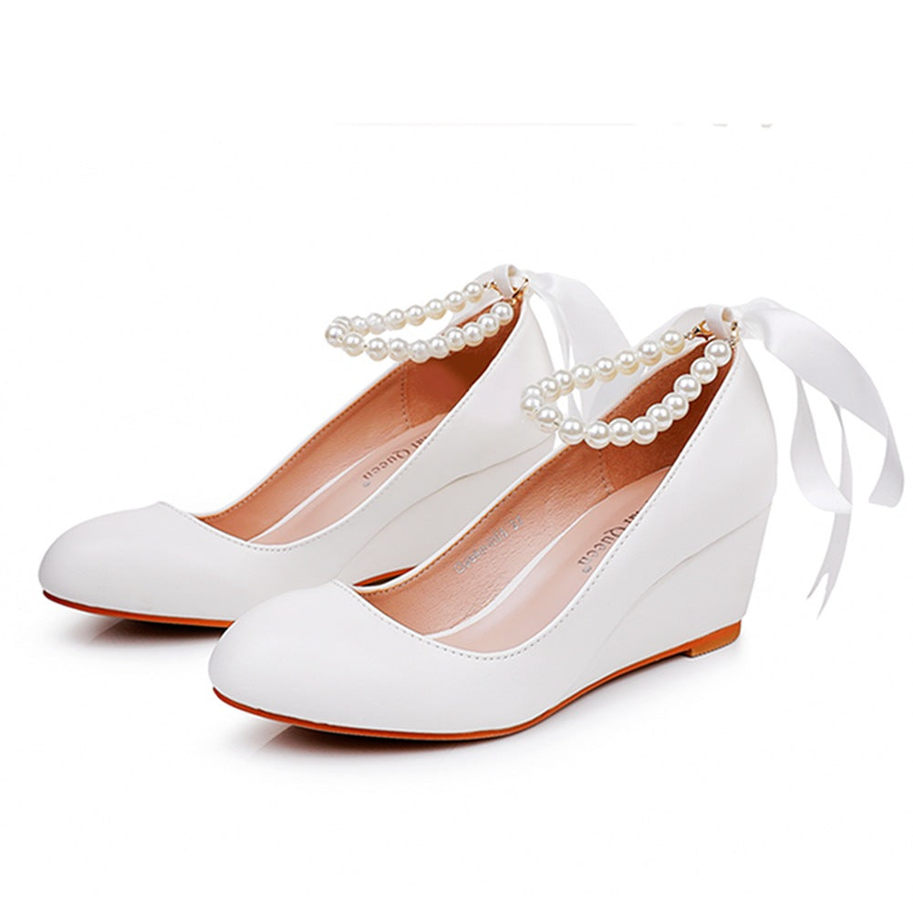 Runde Zehenpartie Plateau-Absatz Perlen Mary Janes