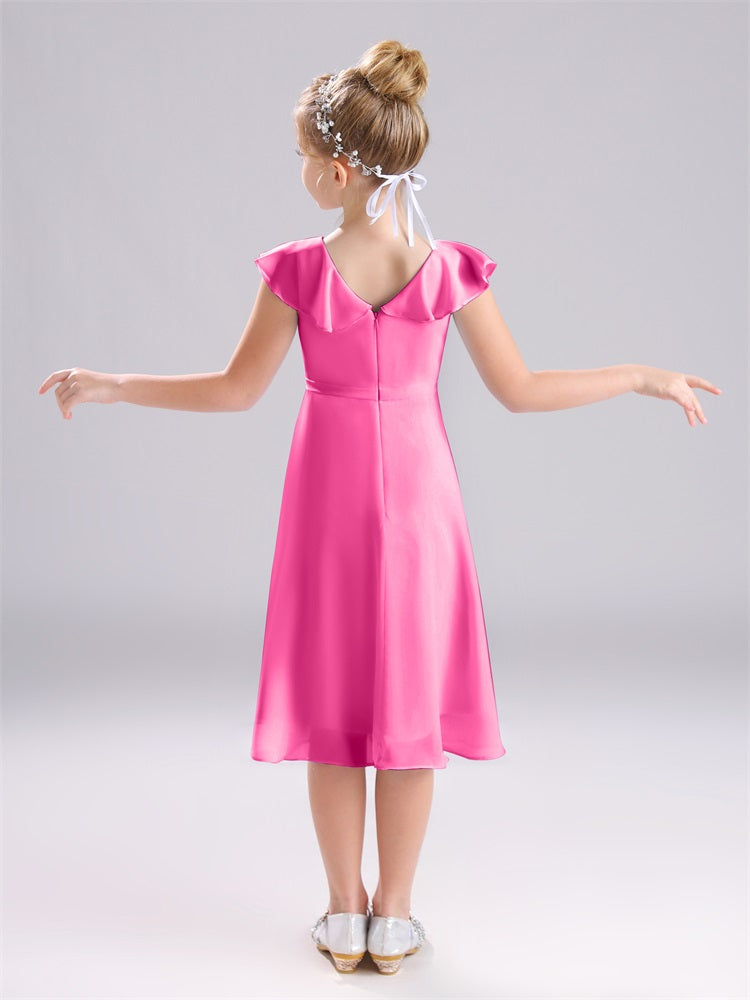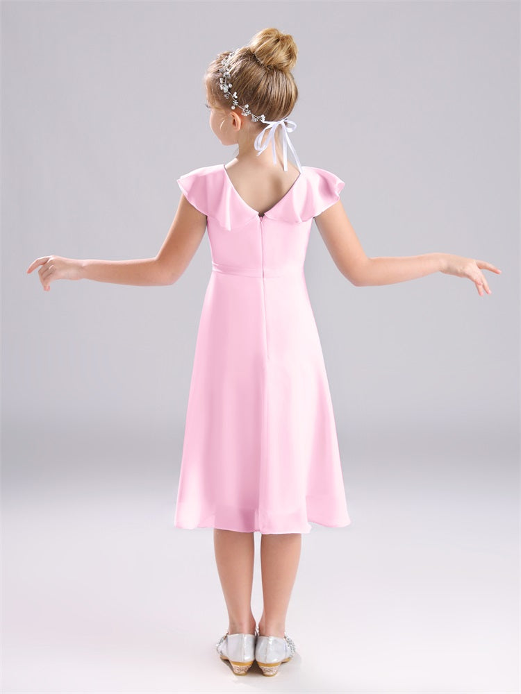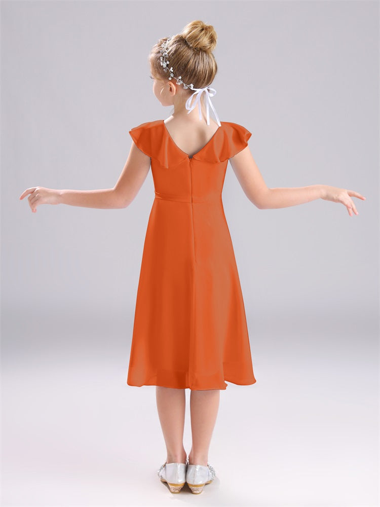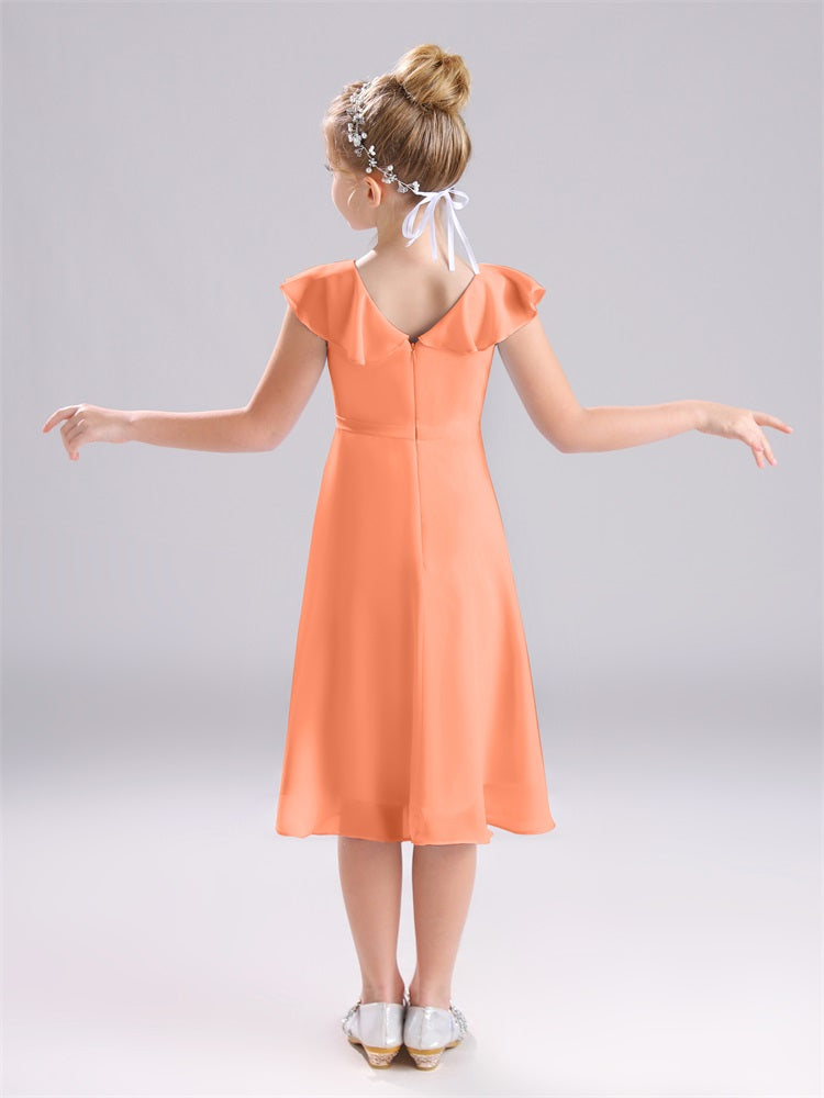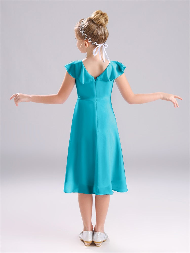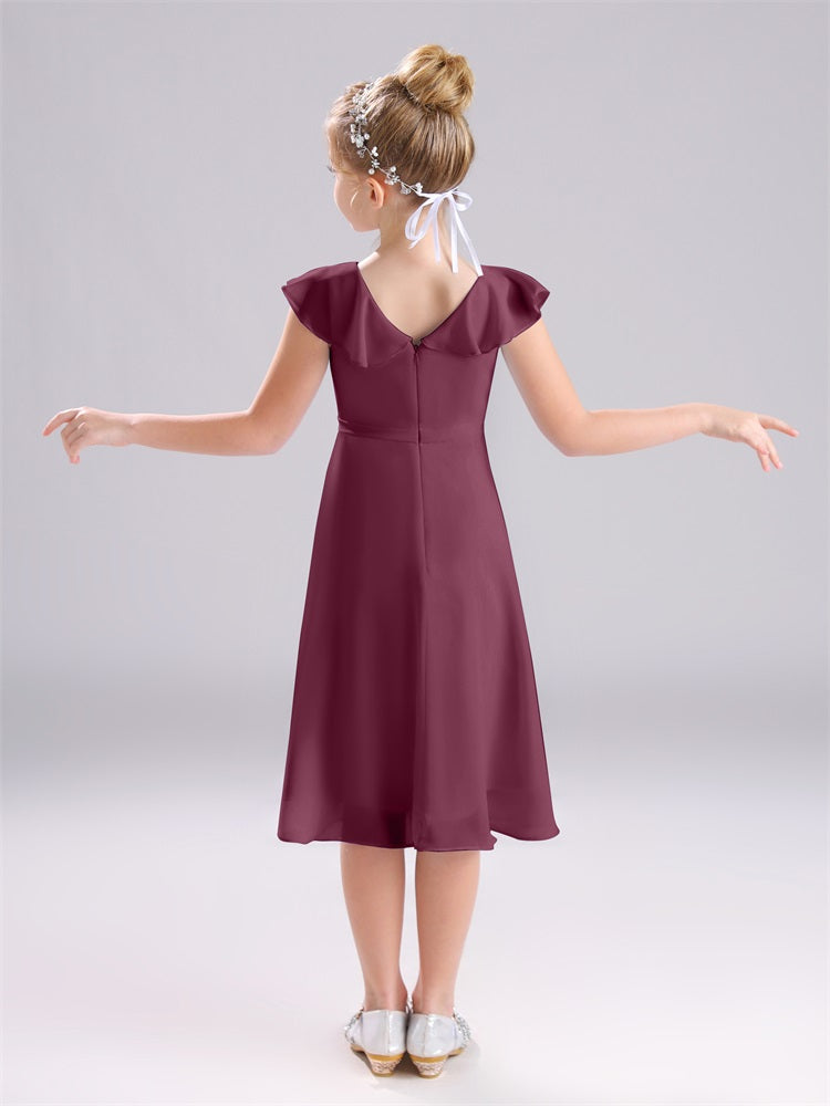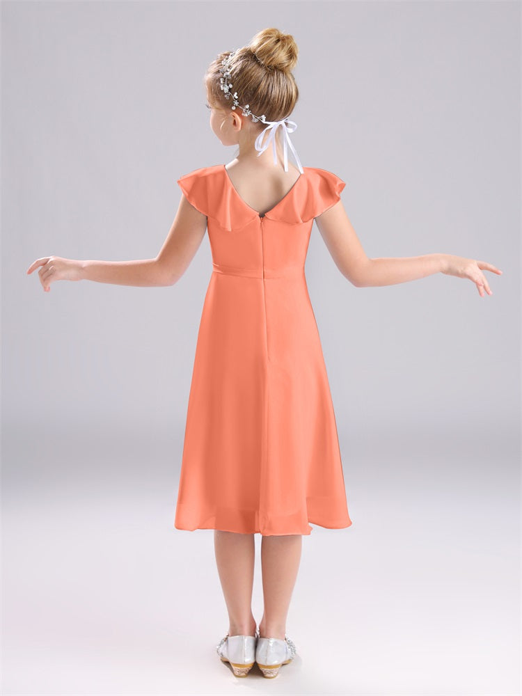 Rüschen V-Ausschnitt Tee-Länge Chiffon Junior Brautjungfernkleider