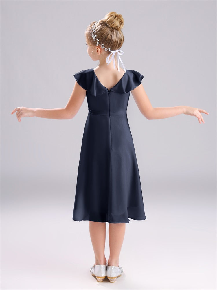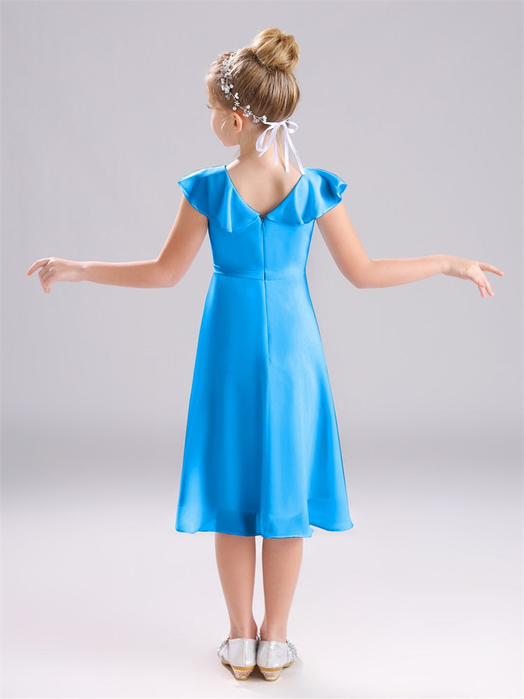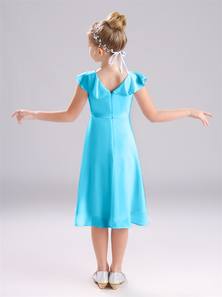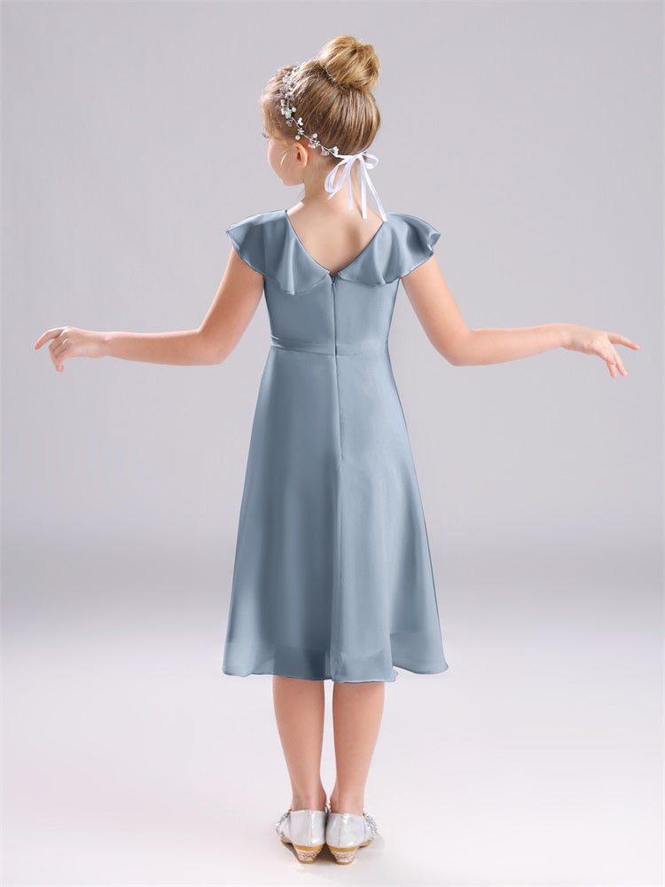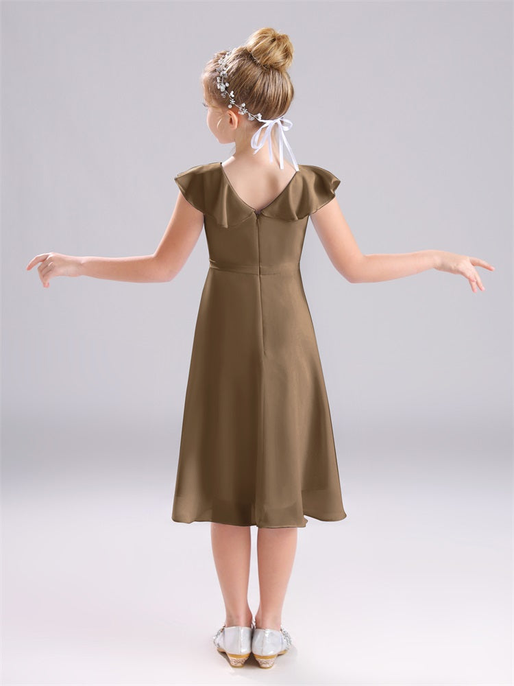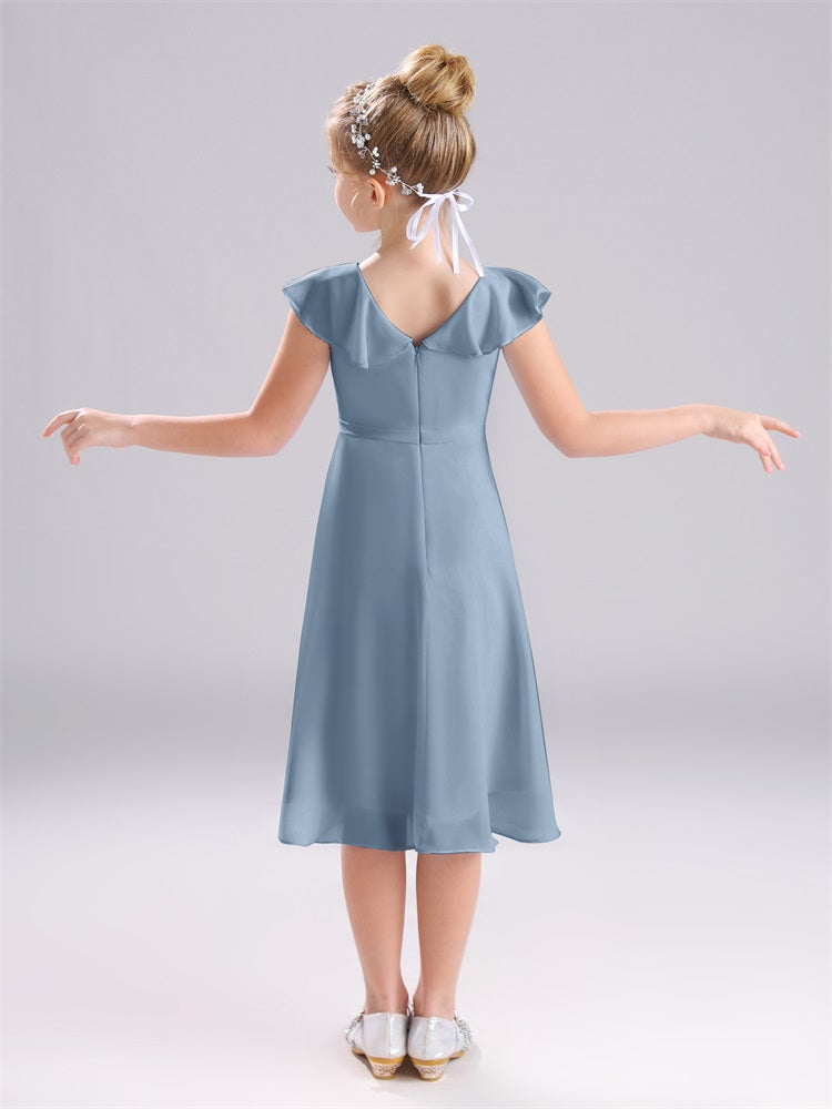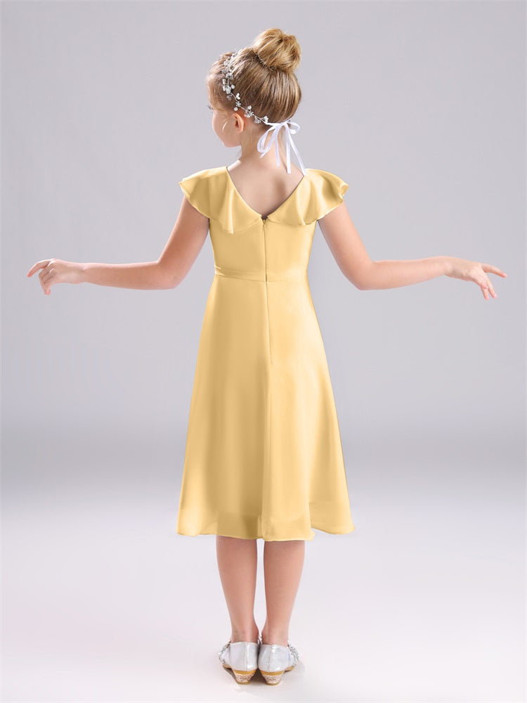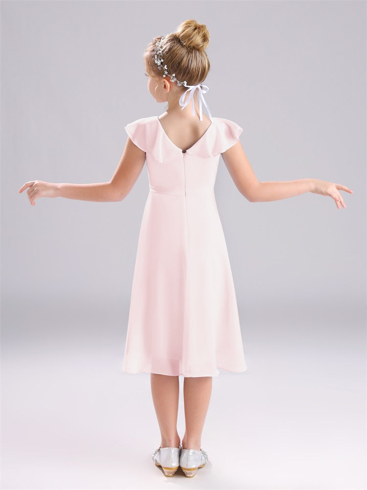 Rüschen V-Ausschnitt Tee-Länge Chiffon Junior Brautjungfernkleider