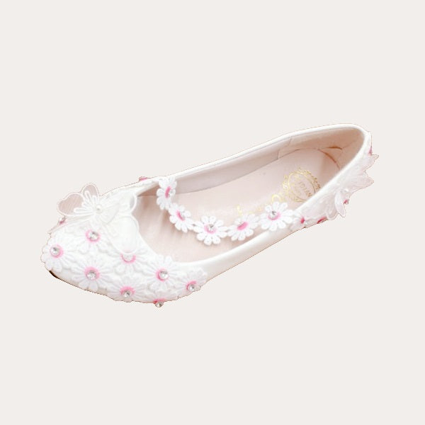 Mit diesen rustikalen rosa Hochzeitsschuhen mit Gänseblümchen und Schmetterlinge Diamante Verzierungen wird Ihr Auftritt an Ihrem besonderen Tag noch schöner. Diese einzigartigen Schuhe verleihen Ihrem Outfit einen extra Touch von Eleganz und machen es unvergesslich. Perfekt für jede Braut, die sich von der Masse abheben möchte.