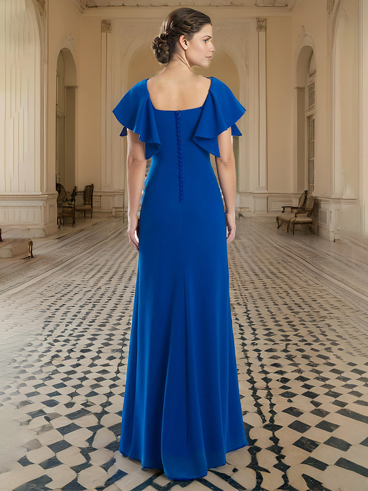 Schmeichelhaftes Chiffon-Kleid mit Rüschenärmeln für die Mutter der Braut
