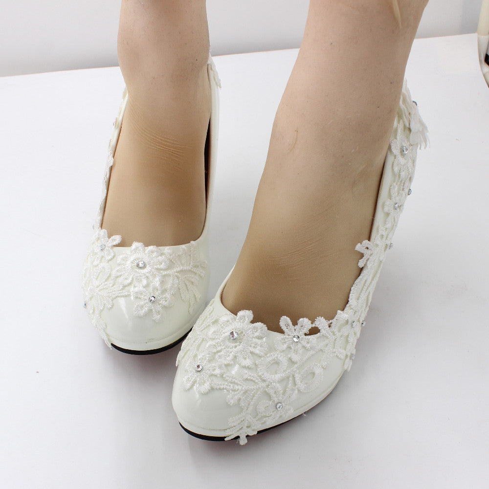 Schöne Spitze Blume Diamante verschönert Hochzeit Schuhe
