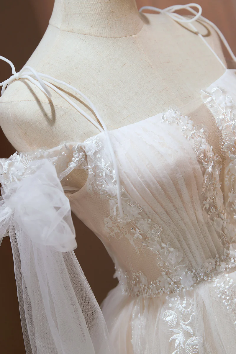 Spaghetti-Träger A-Linie Applikationen Tüll Kurzes Ballkleid