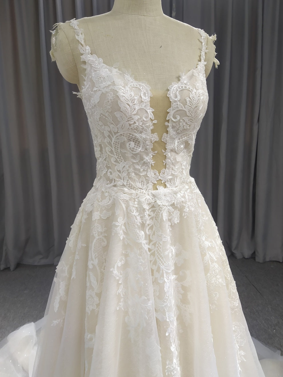 Spaghetti-Träger Tüll mit Spitze A-Linie Brautkleid mit Schleppe C0028