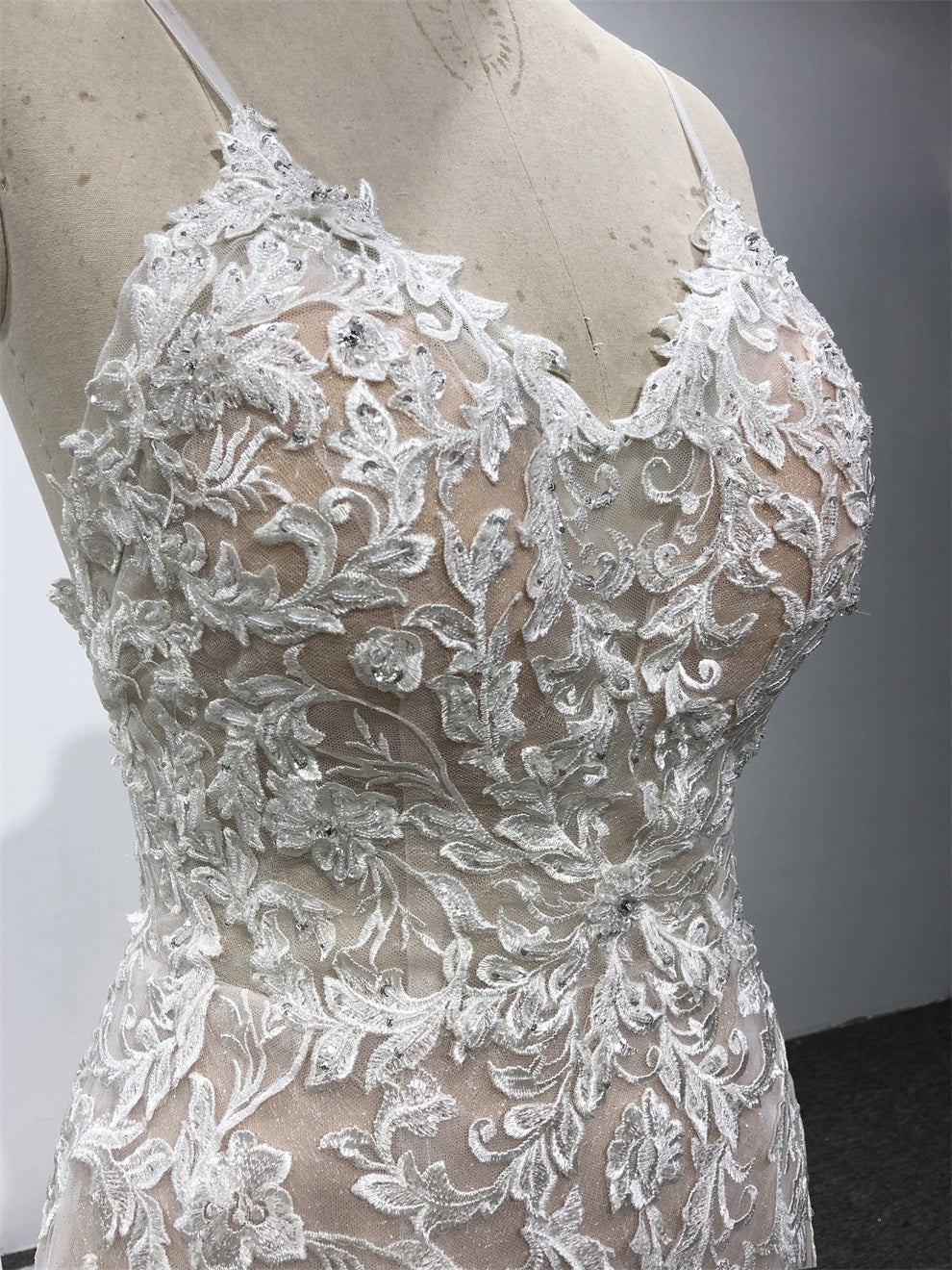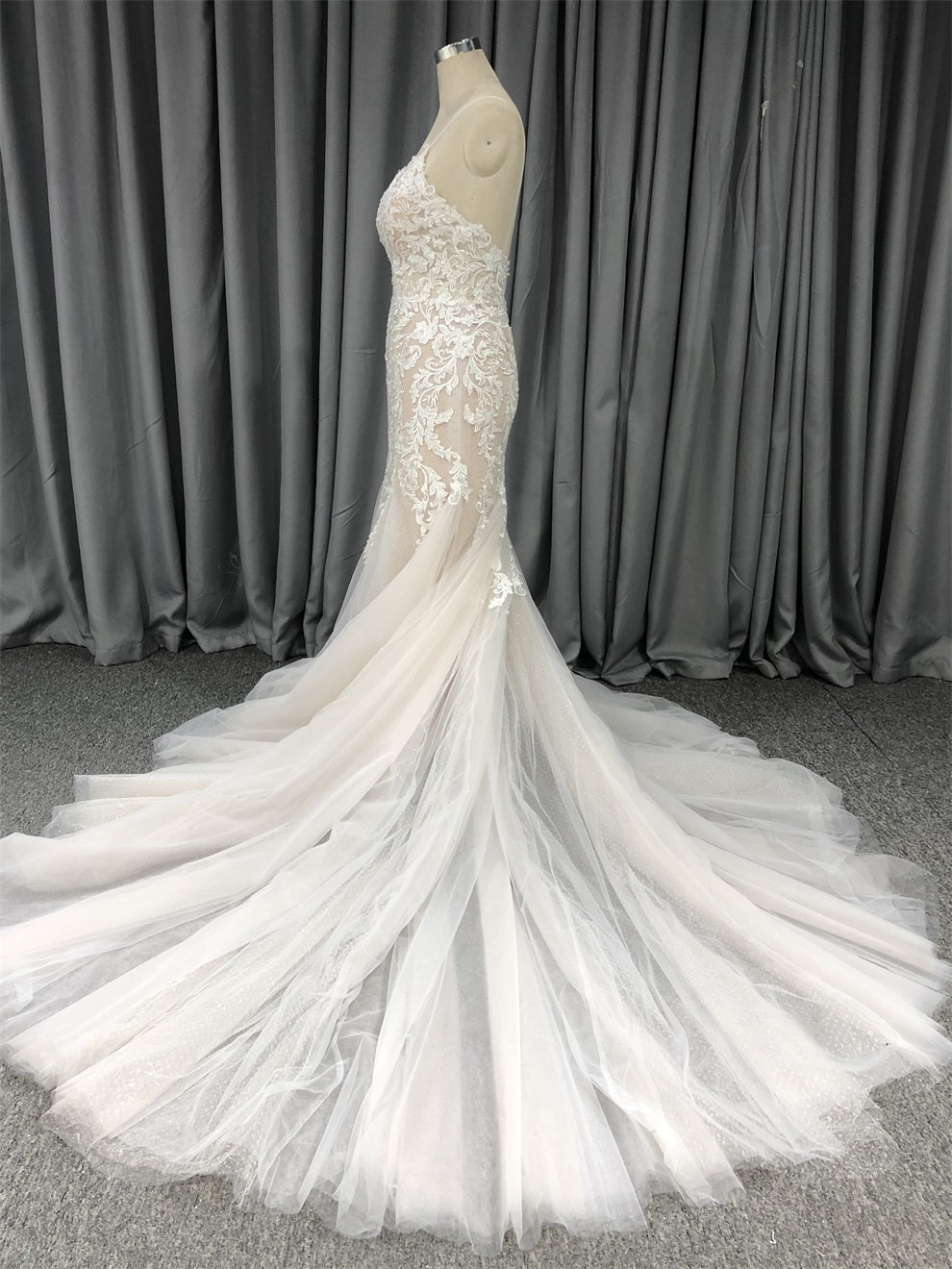 Spaghetti-Träger Tüll mit Spitze Meerjungfrau Brautkleid mit Schleppe C0029
