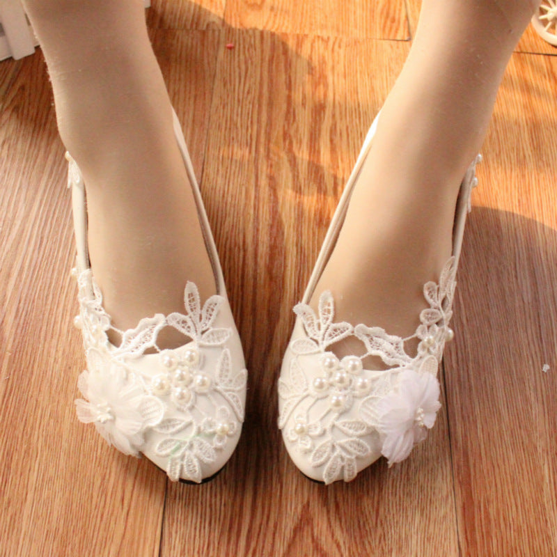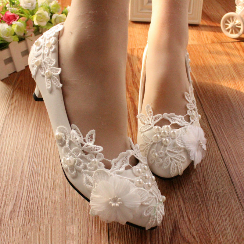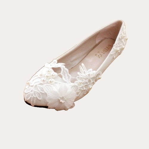 Spirituelle ästhetische weiße Blume Spitze Ranken Perle verschönert Hochzeit Schuhe