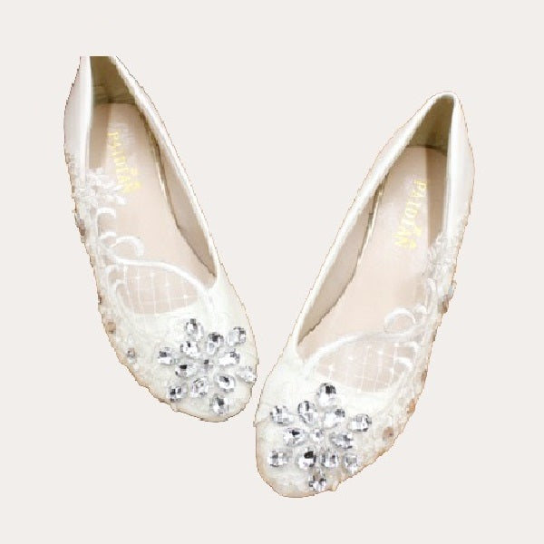 Diese eleganten Hochzeitsschuhe vereinen Spitze, Mesh und Strass zu einer wunderschönen Blume. Mit ihrem femininen Design und ihren funkelnden Details verleihen sie Ihrem Hochzeitsoutfit einen Hauch von Romantik und Eleganz. Perfekt für die Braut, die sich an ihrem großen Tag wie eine Prinzessin fühlen möchte.
