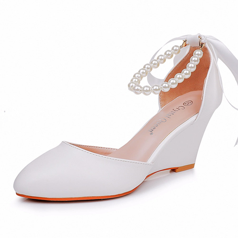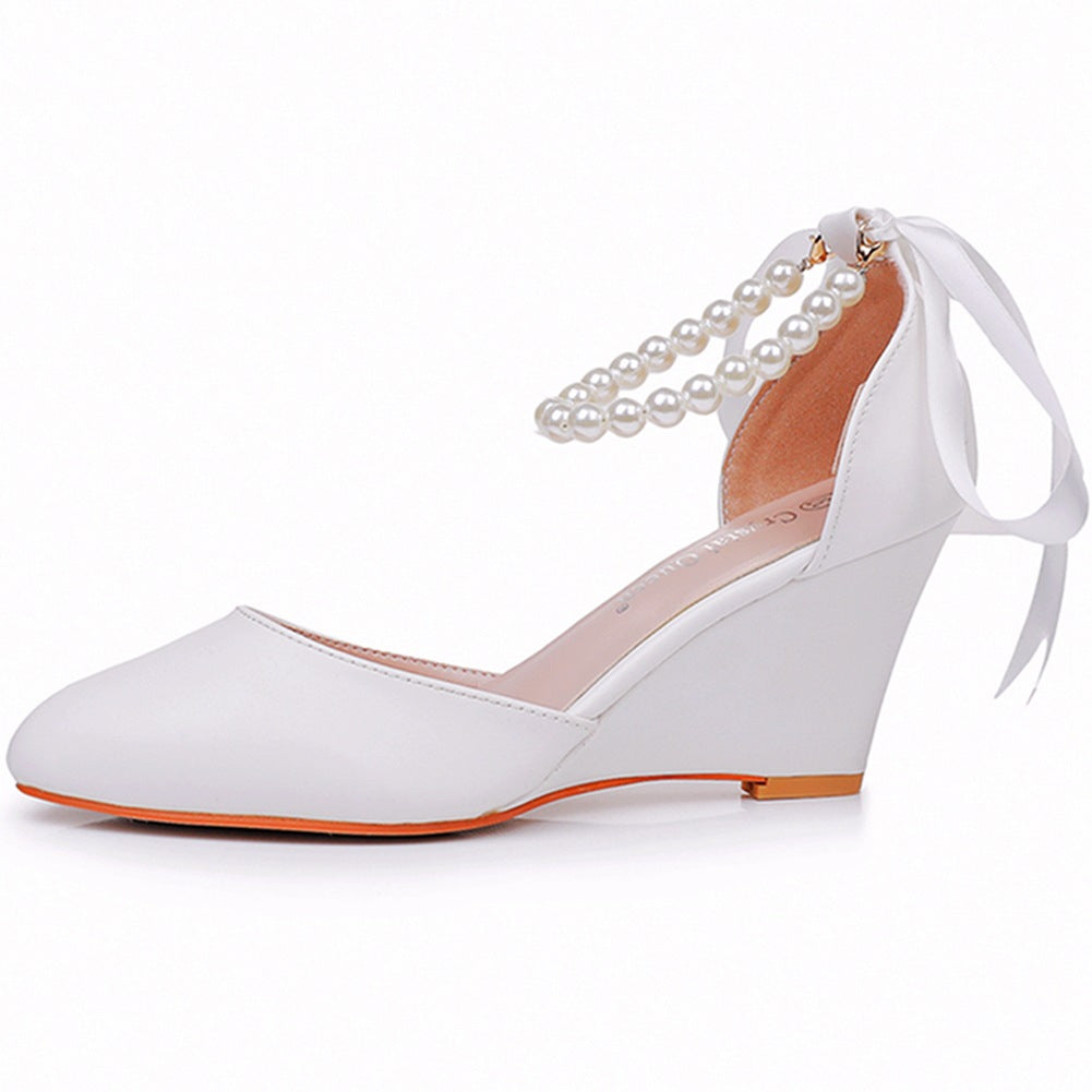 - Wir präsentieren unsere Damen Hochzeitsschuhe mit spitzer Zehenpartie und Keilabsatz, eine perfekte Fusion aus Stil und Komfort. Diese Schuhe zeichnen sich durch ein klassisches Design mit spitzer Zehenpartie und Keilabsätzen aus und bieten sowohl Eleganz als auch Bequemlichkeit für Ihren besonderen Tag.