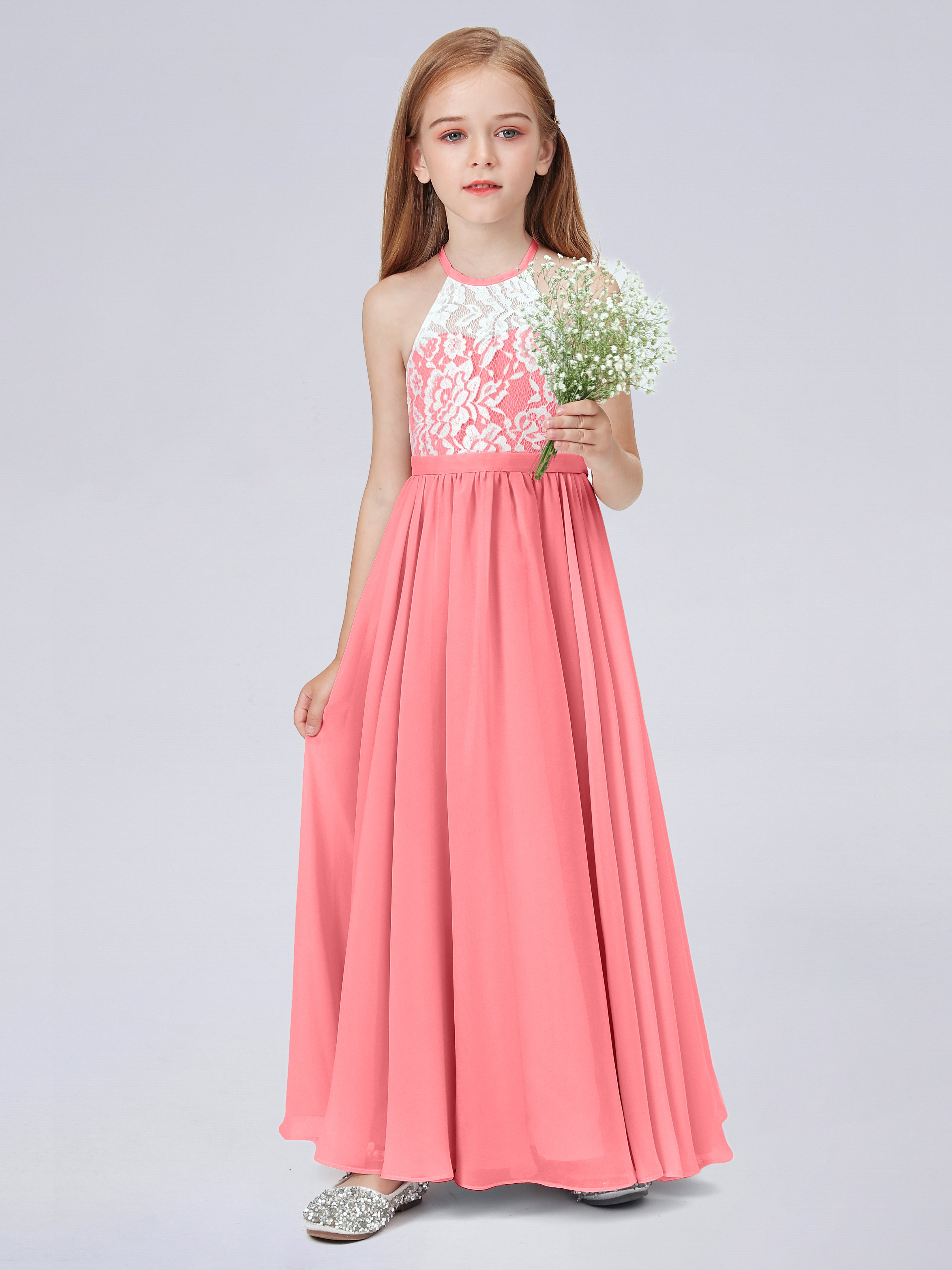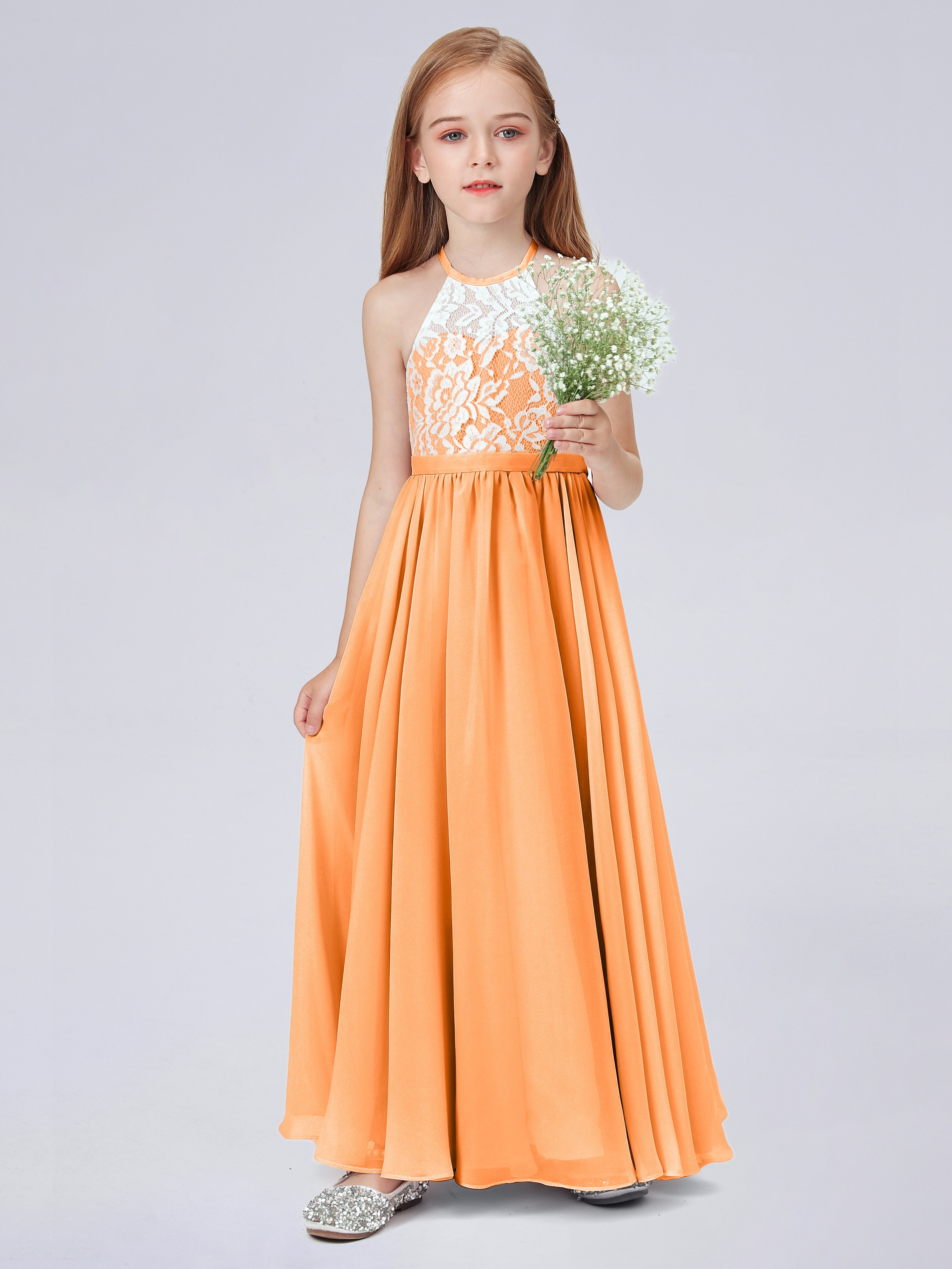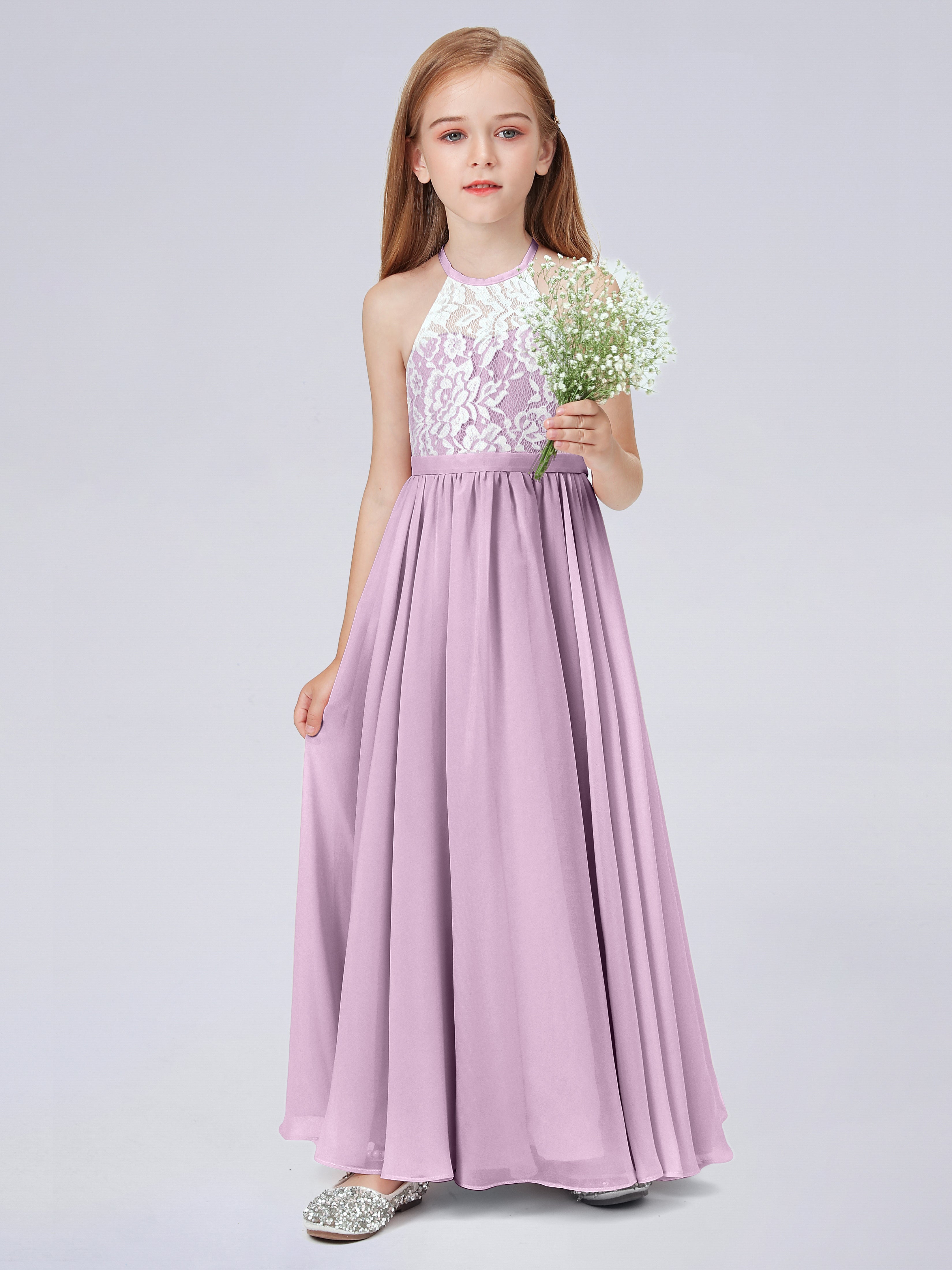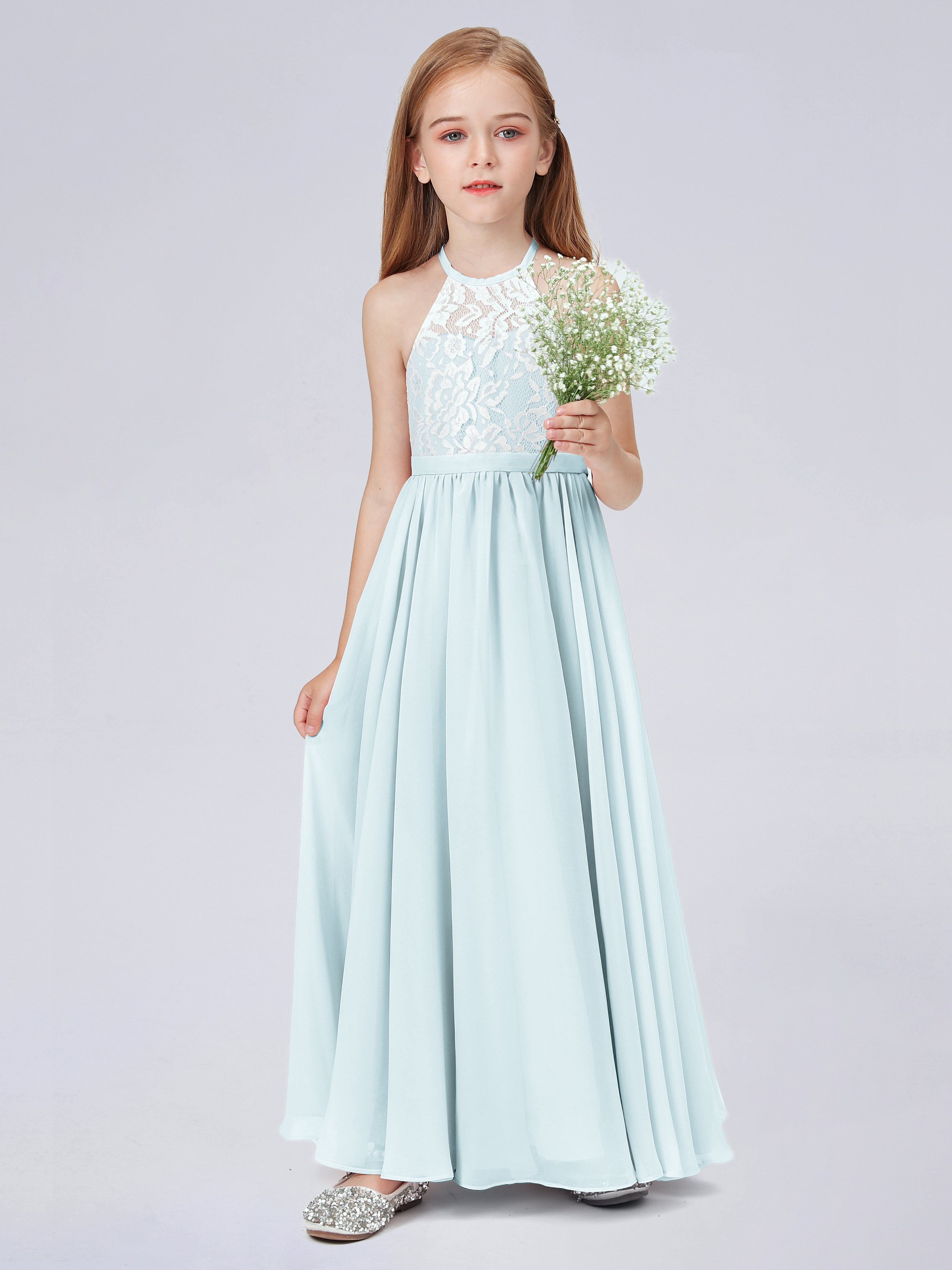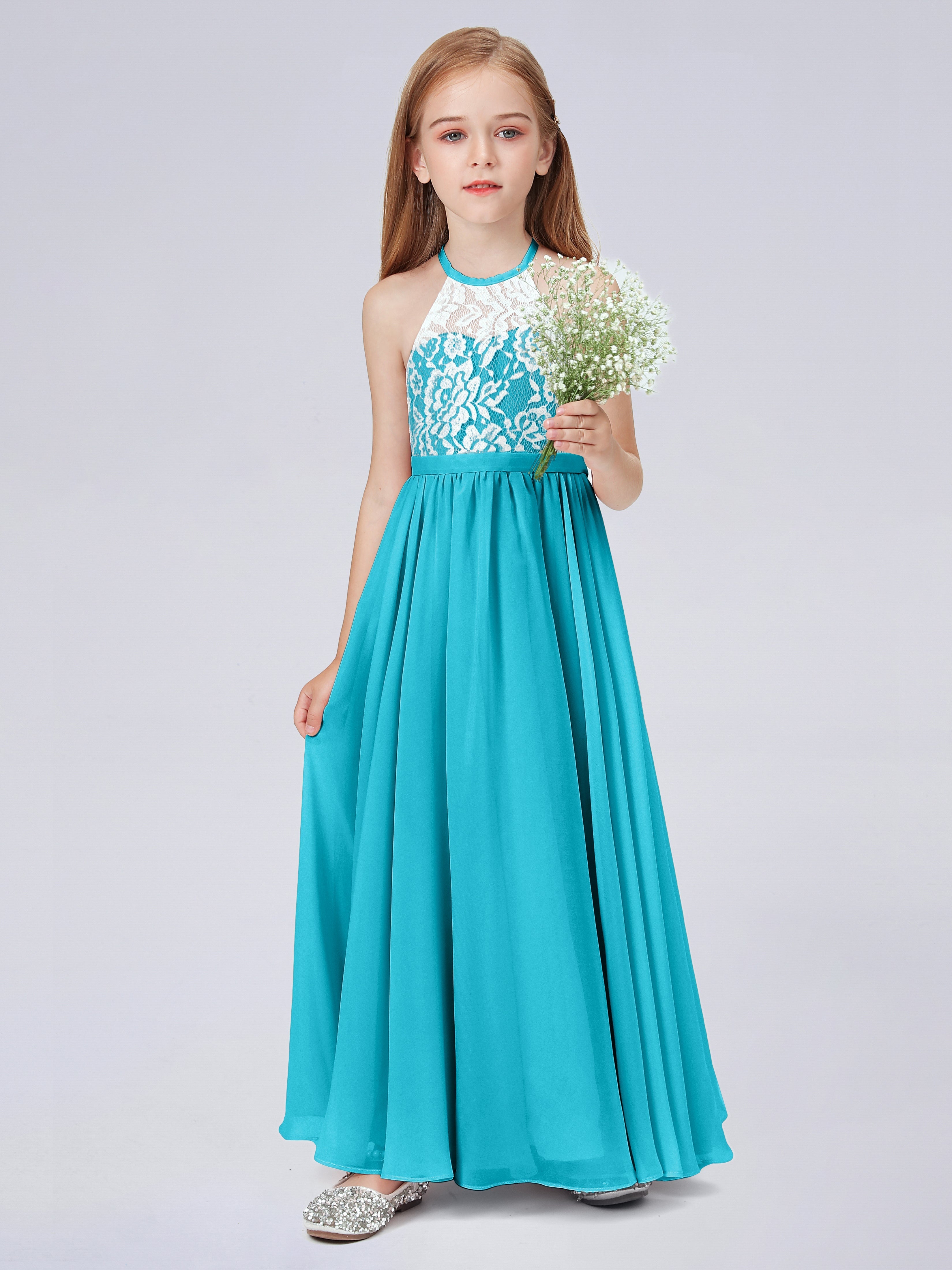 Spitzenkleid für Junge Brautjungfern mit Stehkragen