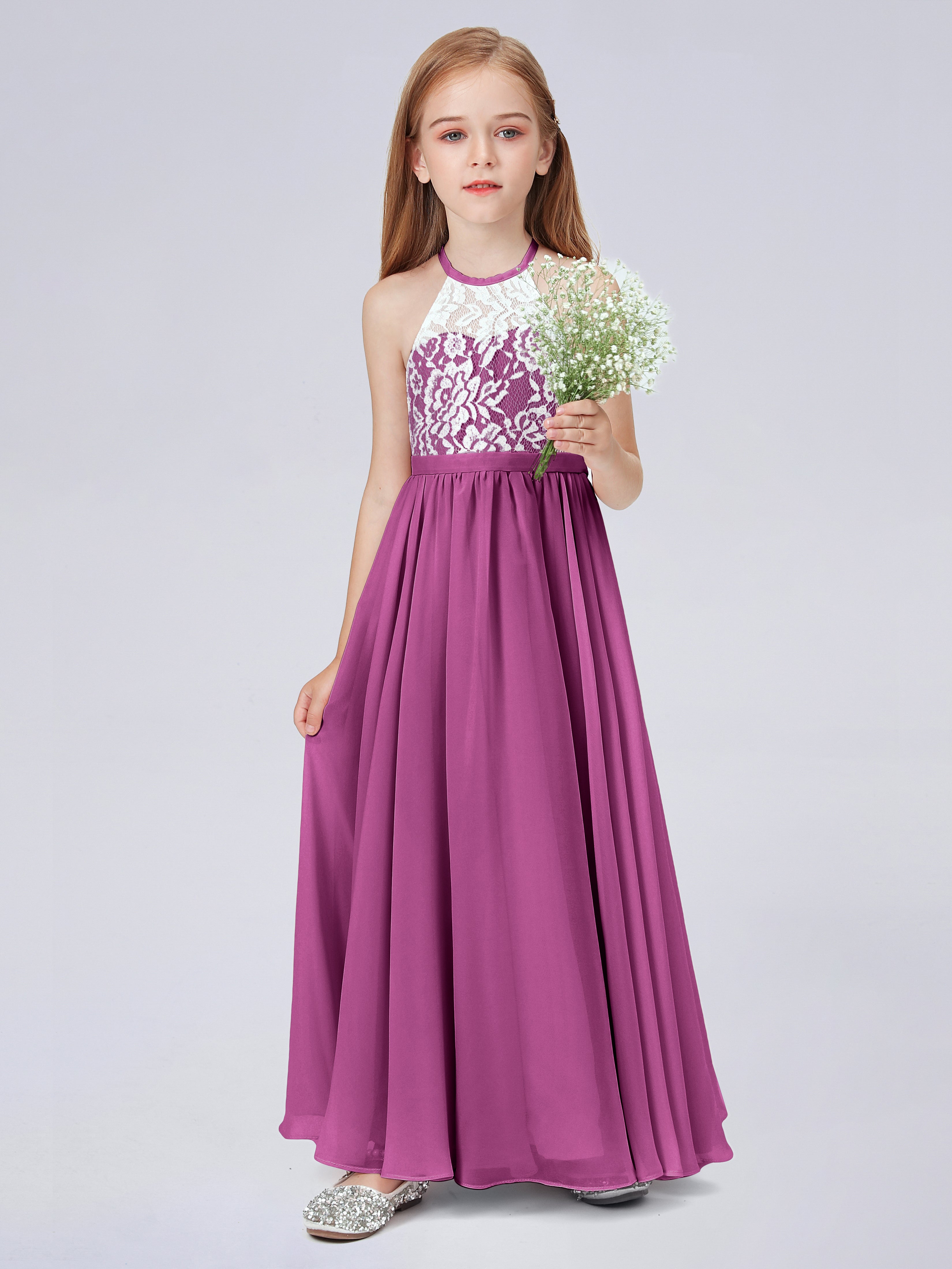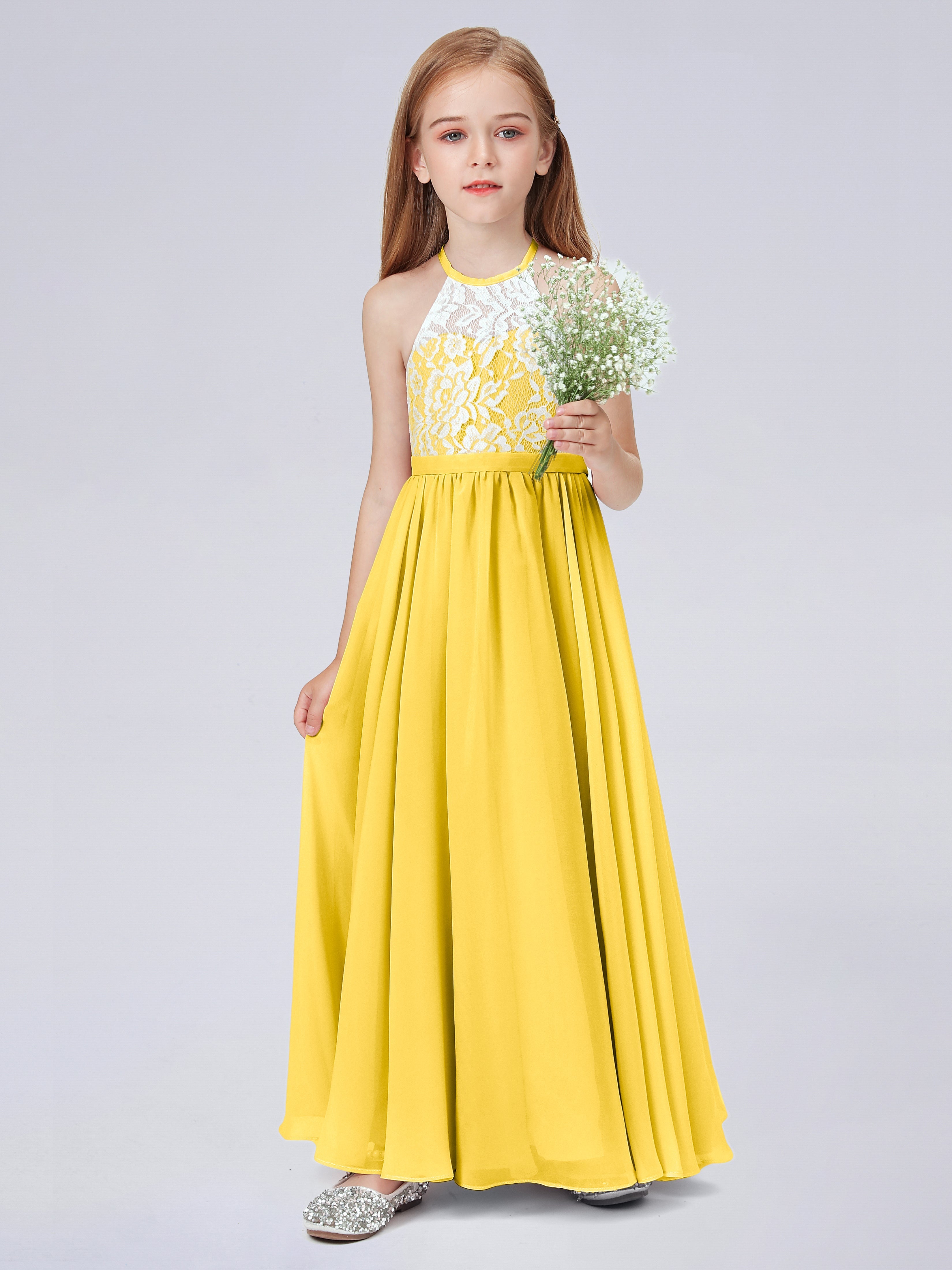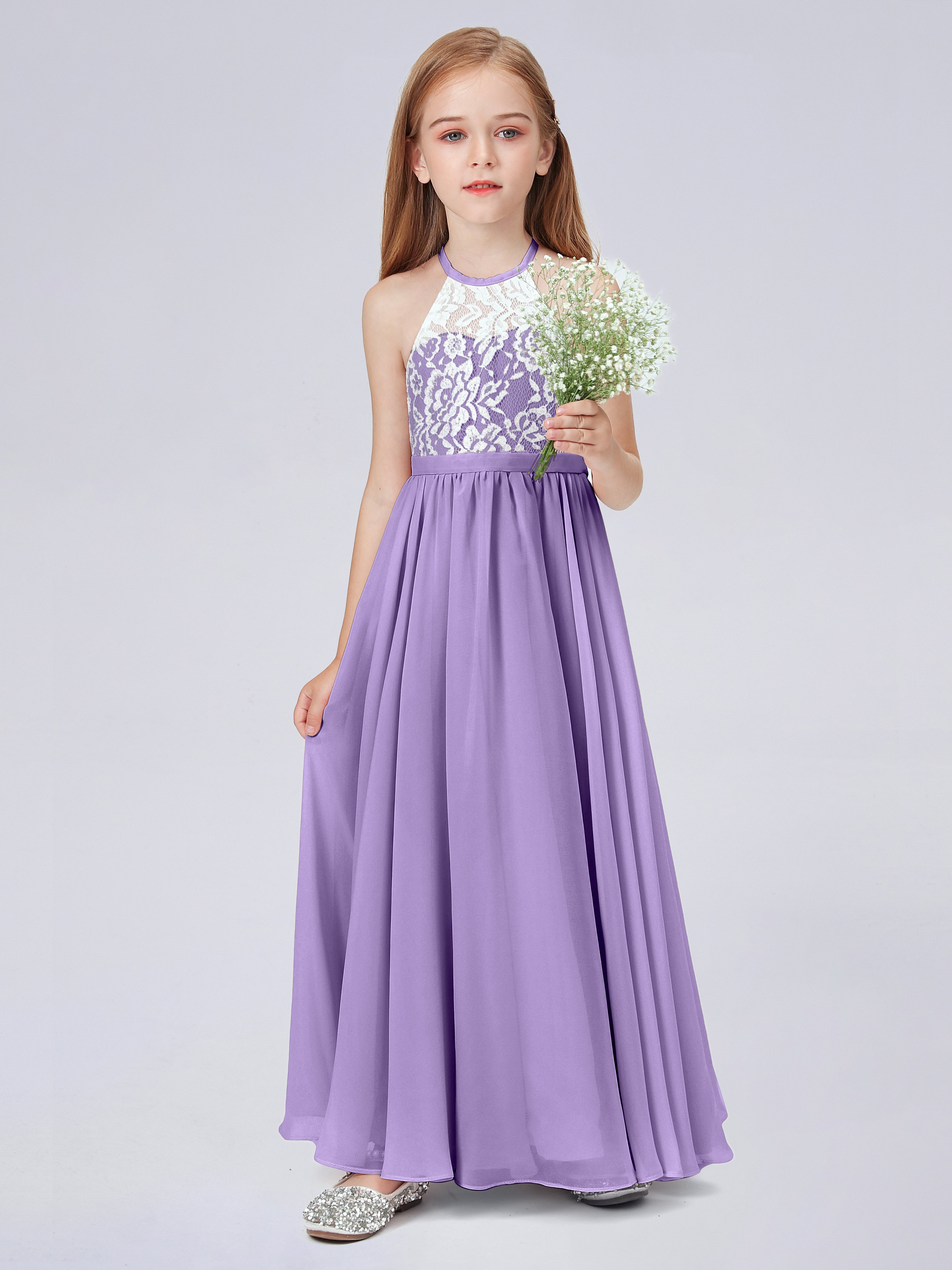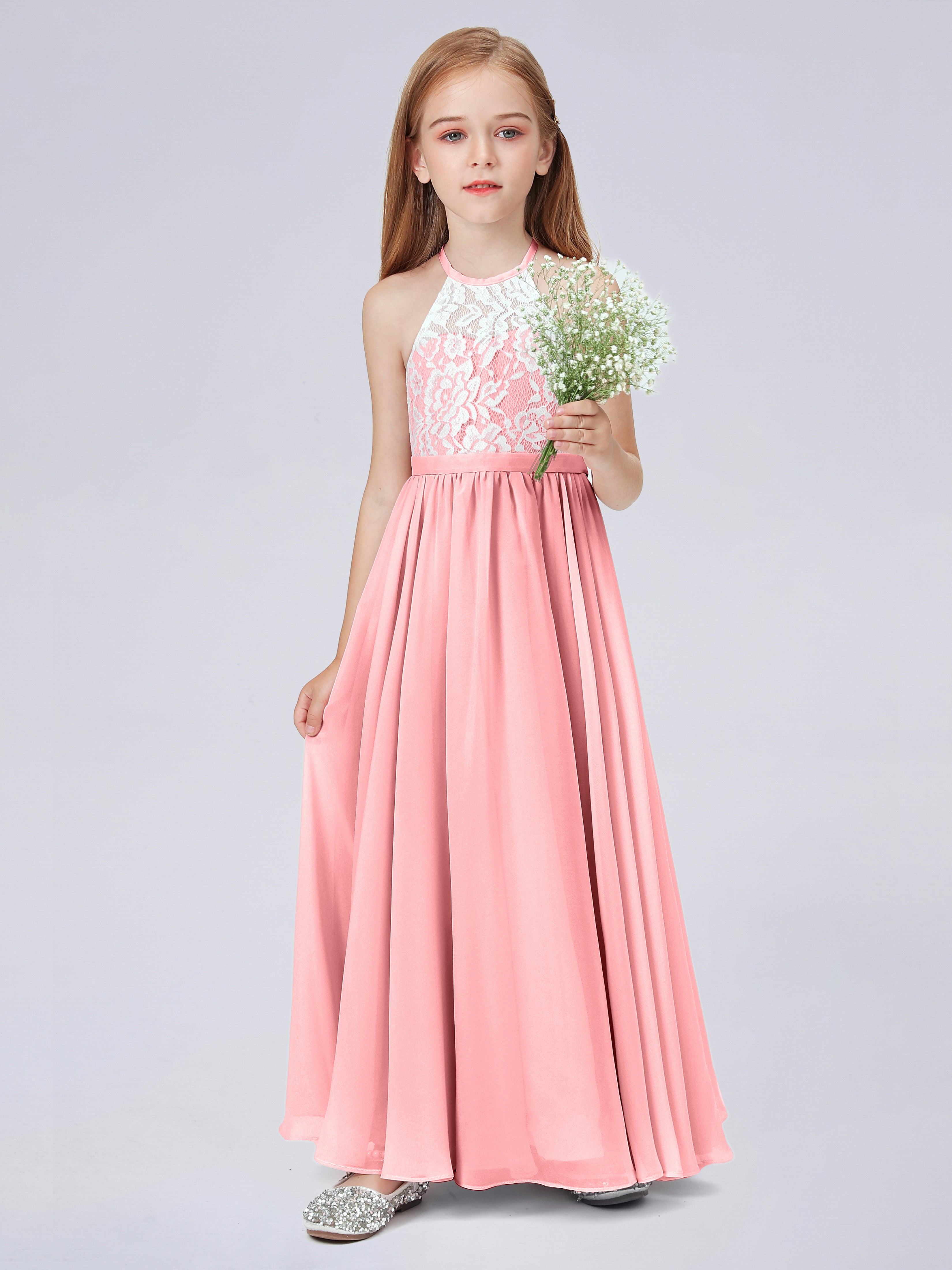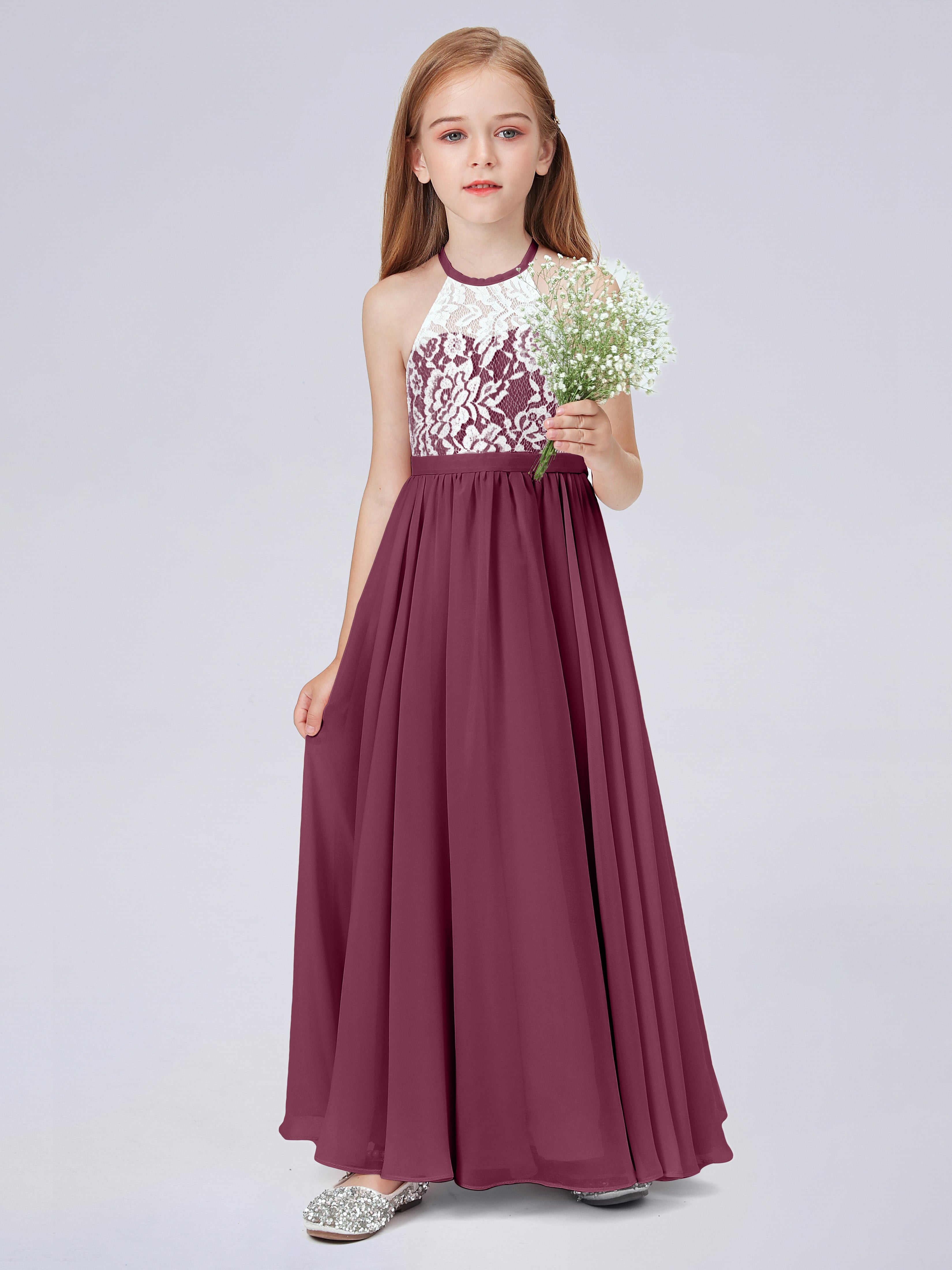 Spitzenkleid für Junge Brautjungfern mit Stehkragen