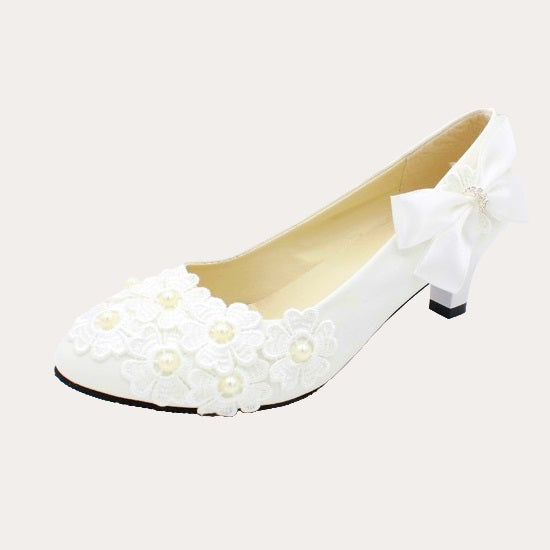 Verleihen Sie Ihrem Hochzeitsoutfit mit den süßen Diamanten, Seidenbogen und Perlen Blumen-Schuhen einen Hauch von Eleganz. Diese Schuhe sind perfekt für jede Braut, die nach einem stilvollen und mondänen Look sucht. Kombinieren Sie sie mit Ihrem Hochzeitskleid und spüren Sie sich wie eine Prinzessin auf Ihrem großen Tag.