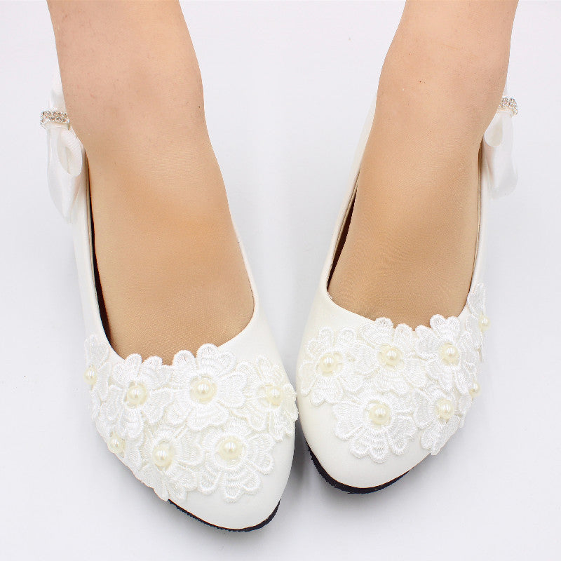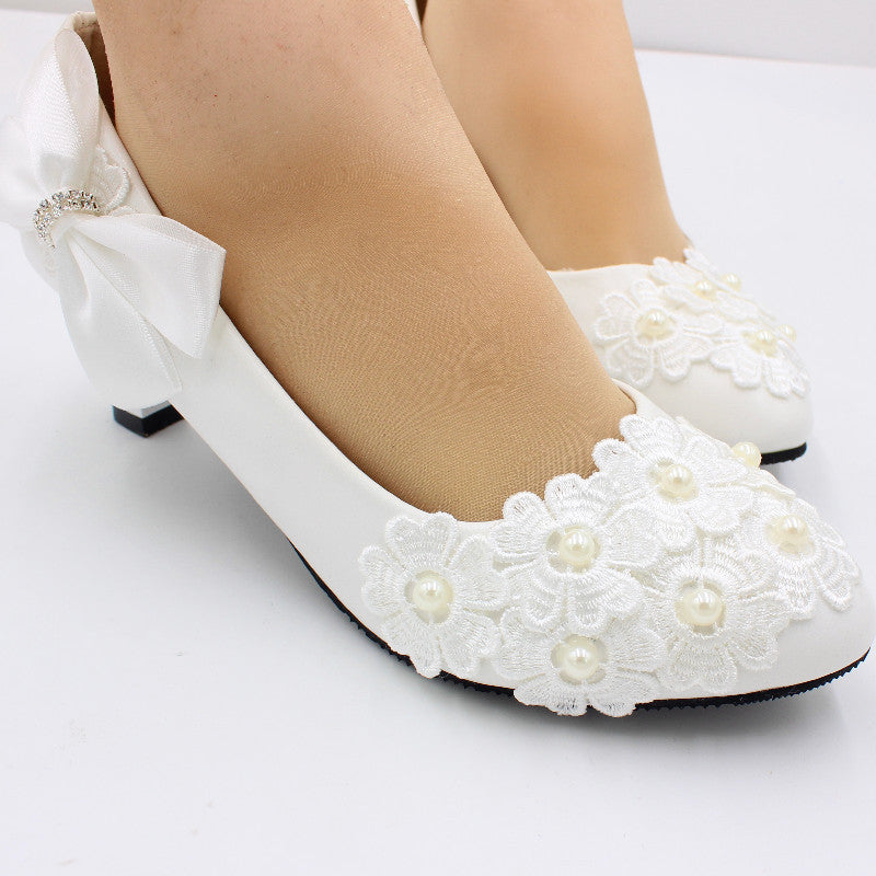 Süße Diamante Seide Bogen Perle Blume Cluster Hochzeit Schuhe