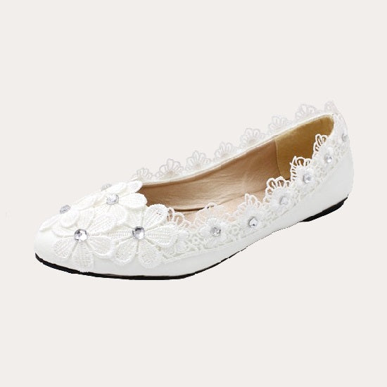 Elegant und verspielt: Unsere Hochzeitsschuhe mit süßen Diamanten und Spitze sind perfekt für Ihren großen Tag. Verzieren Sie Ihre Füße mit kleinen Blumen und tanzen Sie voller Freude in Ihre Zukunft. Eine schöne Verbindung von Komfort und Stil.