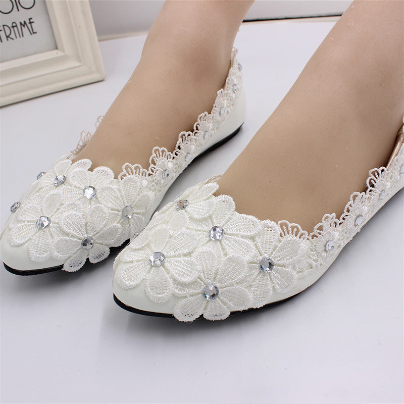 Süße Diamante verschönert Spitze Kleine Blume Hochzeit Schuhe