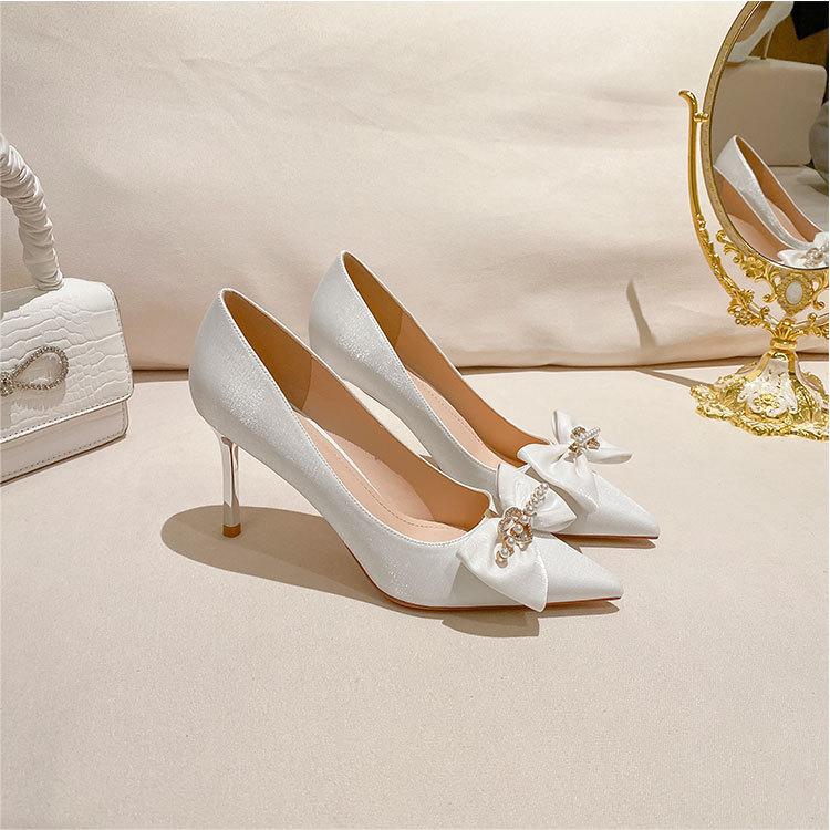 Süße Elegante Satin Perle Dekoration Diamante Liebe Ferse Hochzeit Schuhe