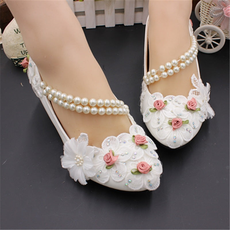 Süße graurosa Rosa Seide Blume Perle schräge Kette Hochzeit Schuhe