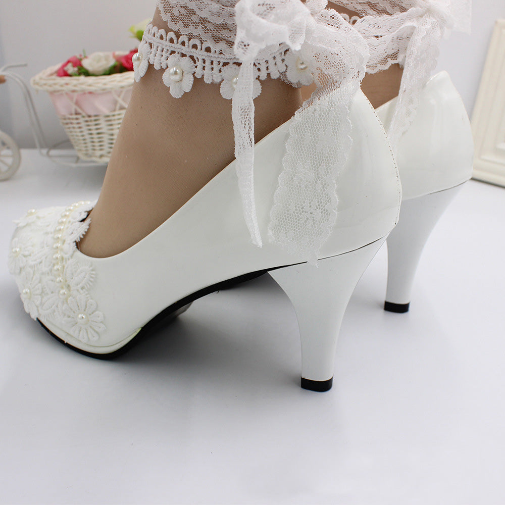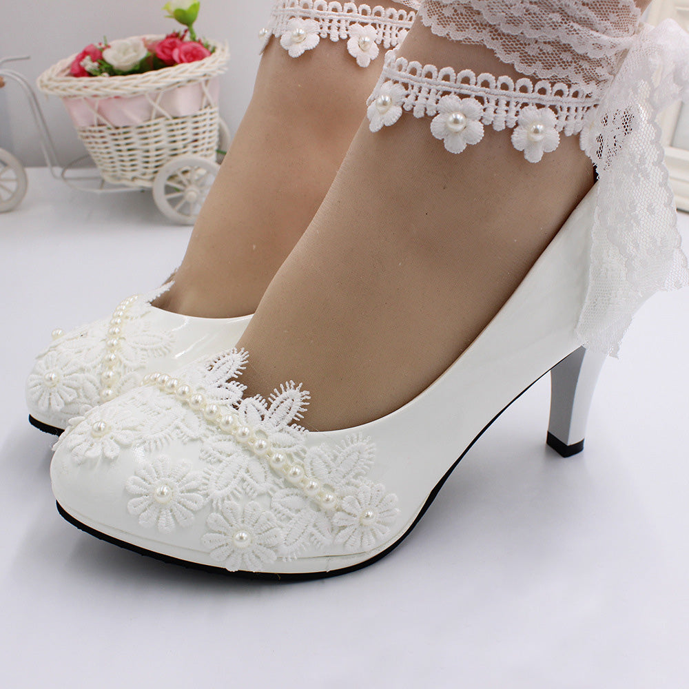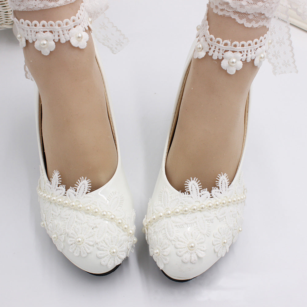 Süße Perle kleine Blume Schnürung Hochzeit Schuhe