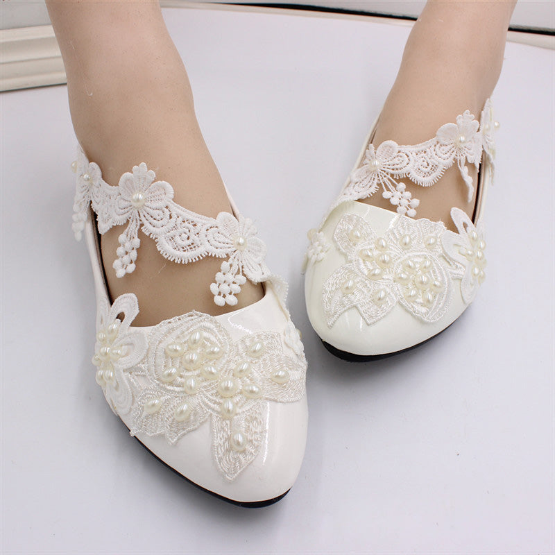 Verleihen Sie Ihrem Hochzeits-Look eine Prise Süße mit diesen Süße Prinzessin Schuhen. Die zarte Spitze, der Schmetterlings-Akzent, die dekorative Quaste und die Perlen verzierte Blume machen diese schräge Kette zu einem echten Hingucker. Perfekt für jede romantische Braut.