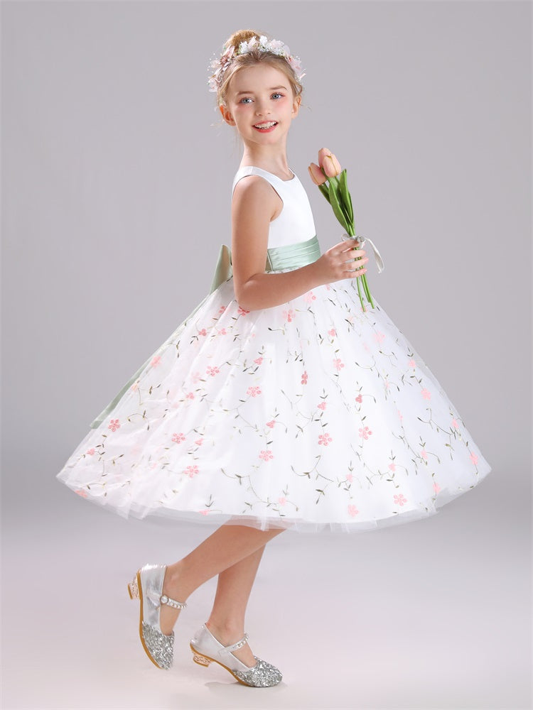 Verlieben Sie sich in unser kurzes Kleid aus Satin, Tüll und Spitze, das entworfen wurde, um Mädchen auf elegante und sanfte Weise zu sublimieren. Der zeitlose quadratische Kragen und die zarten Spitzendetails verleihen dem Kleid einen Hauch von Raffinesse, während der fließende Tüll eine leichte und anmutige Silhouette schafft.