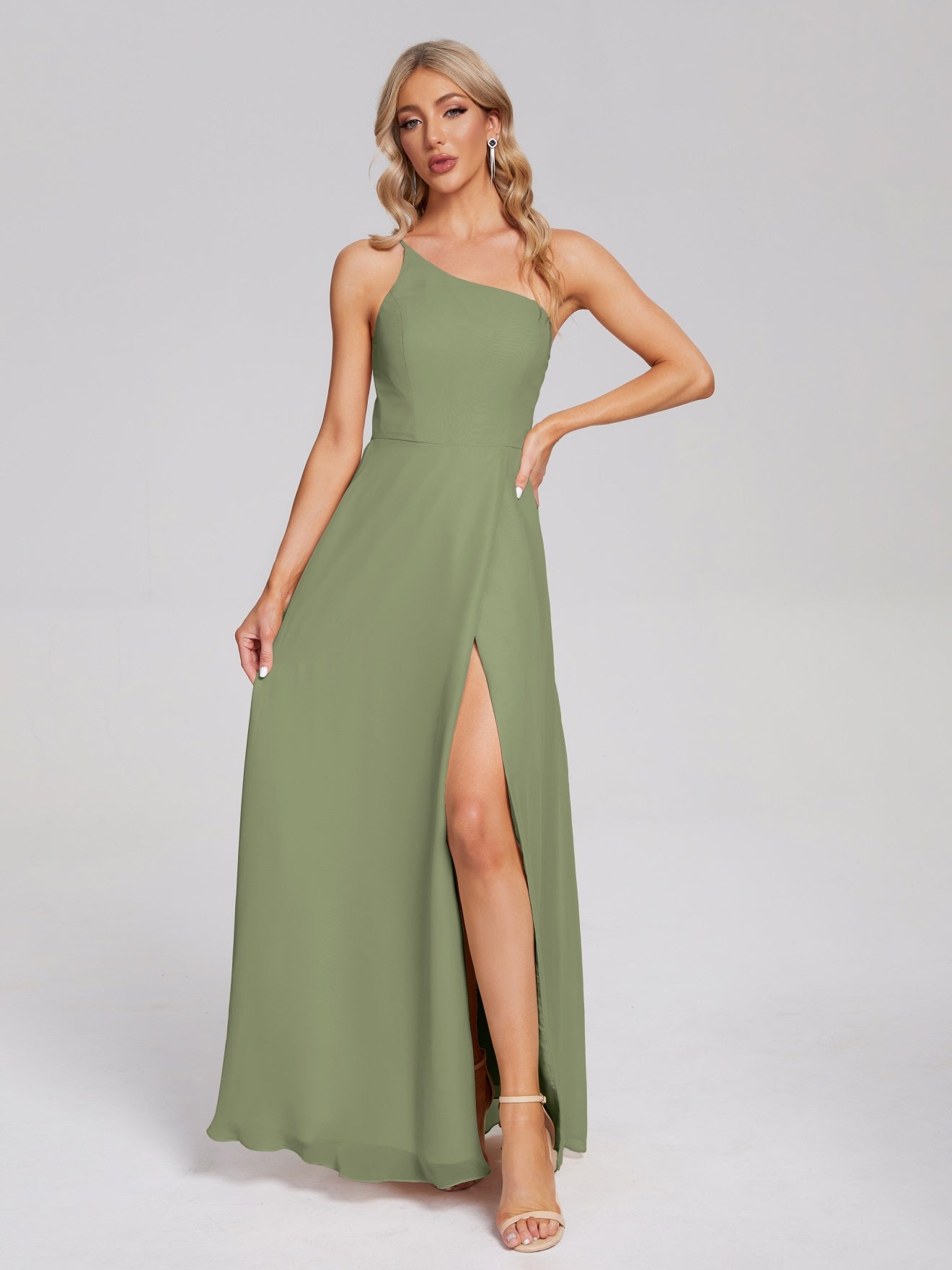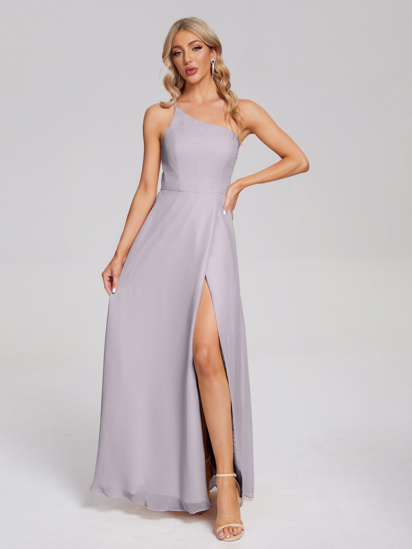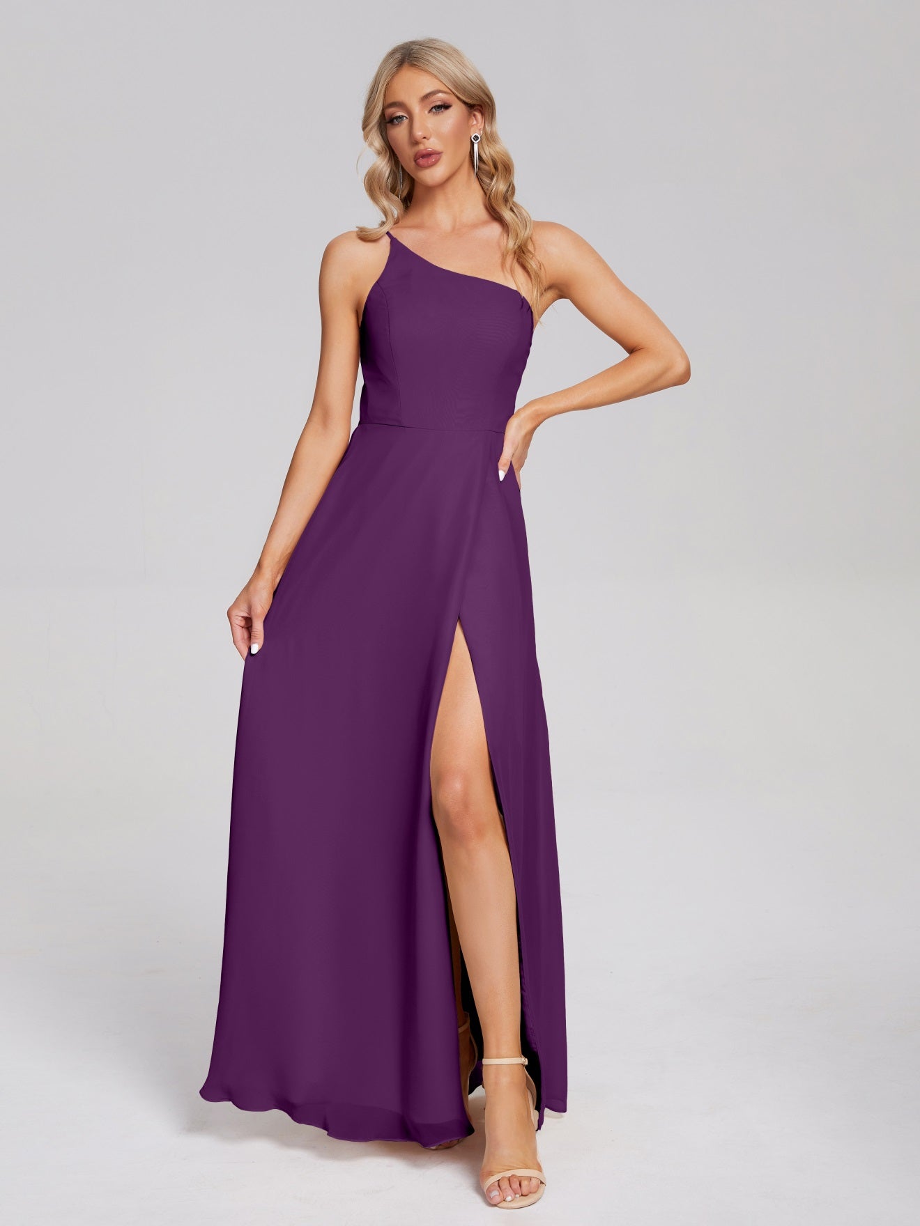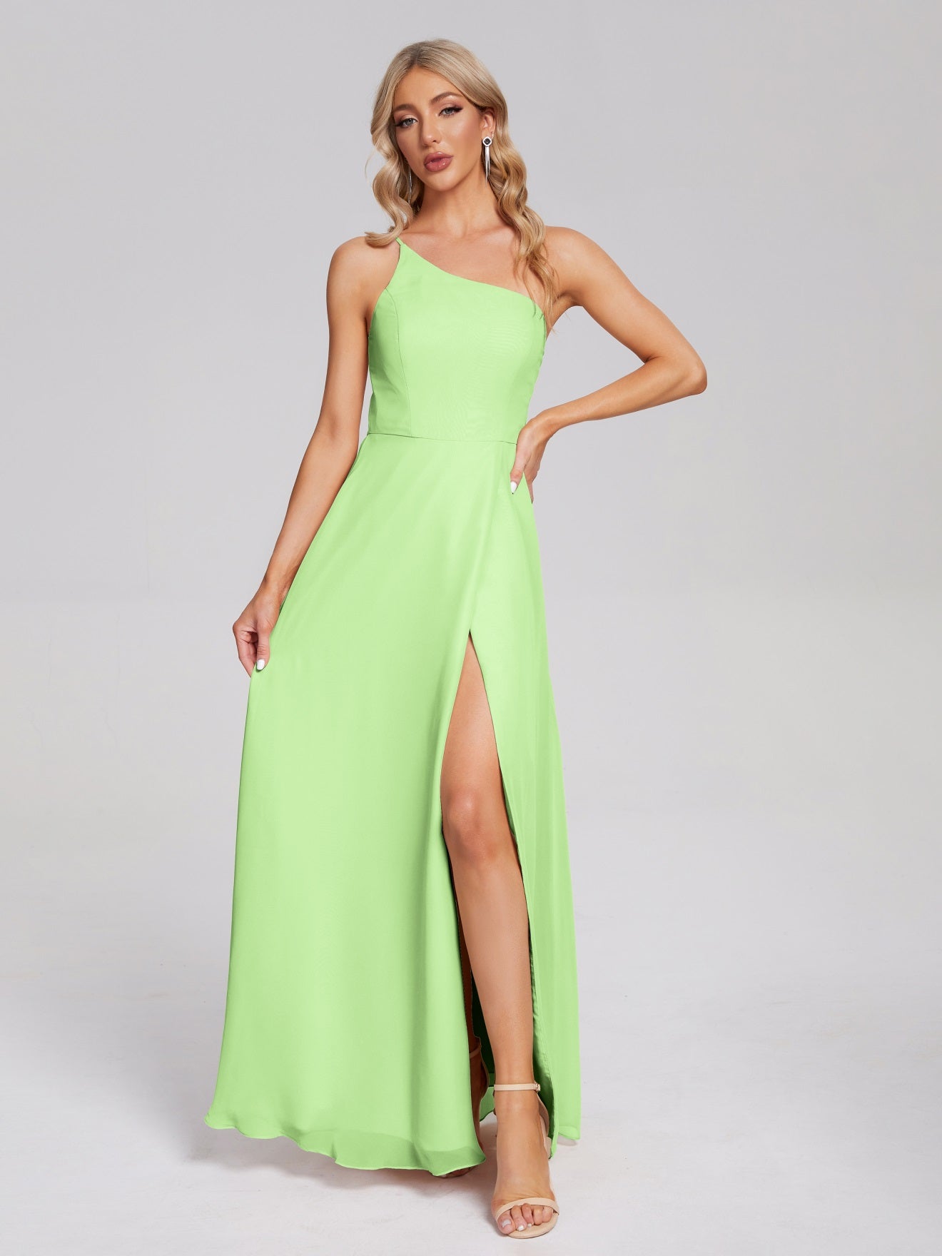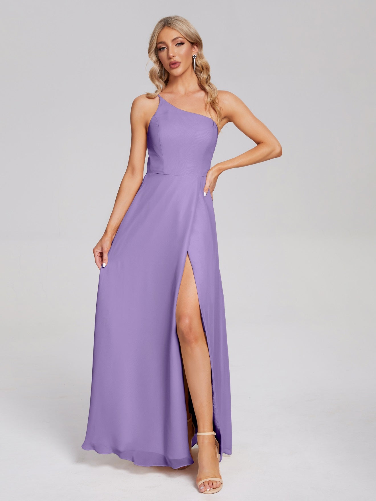 Talia Aufgeschlitzt Ein-Schulter-Einzelne Chiffon Brautjungfernkleider