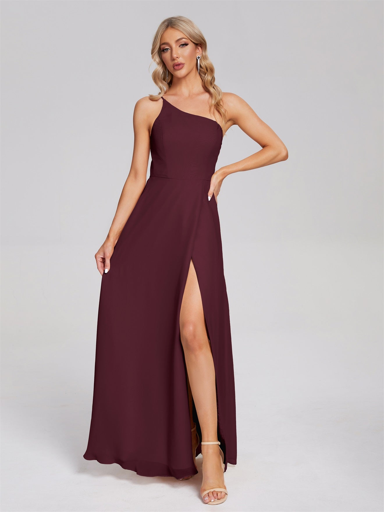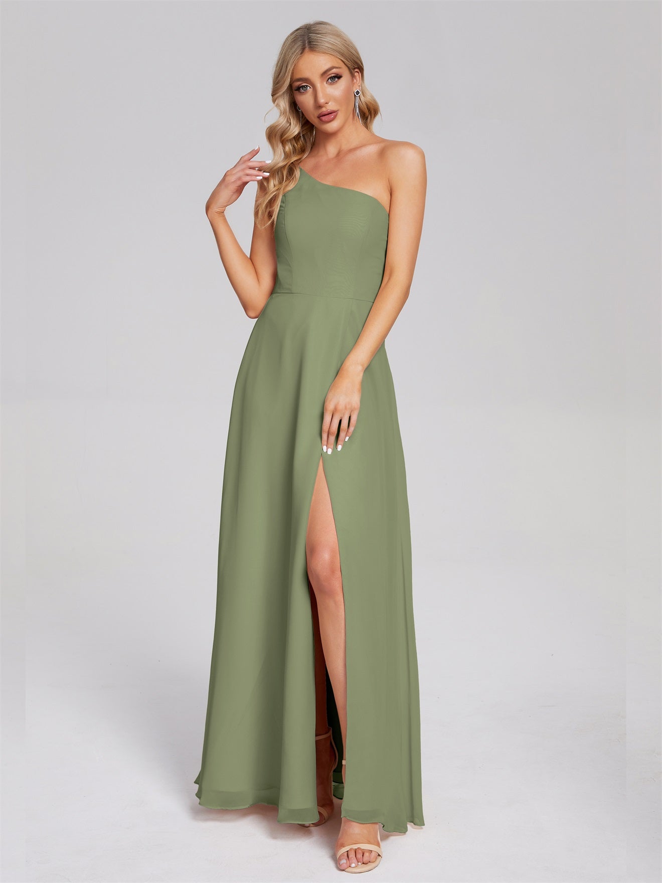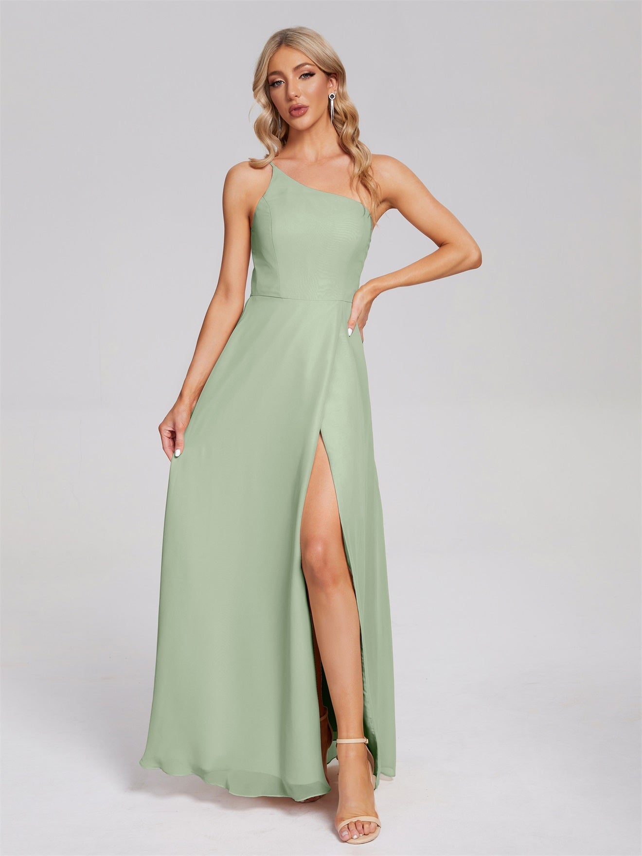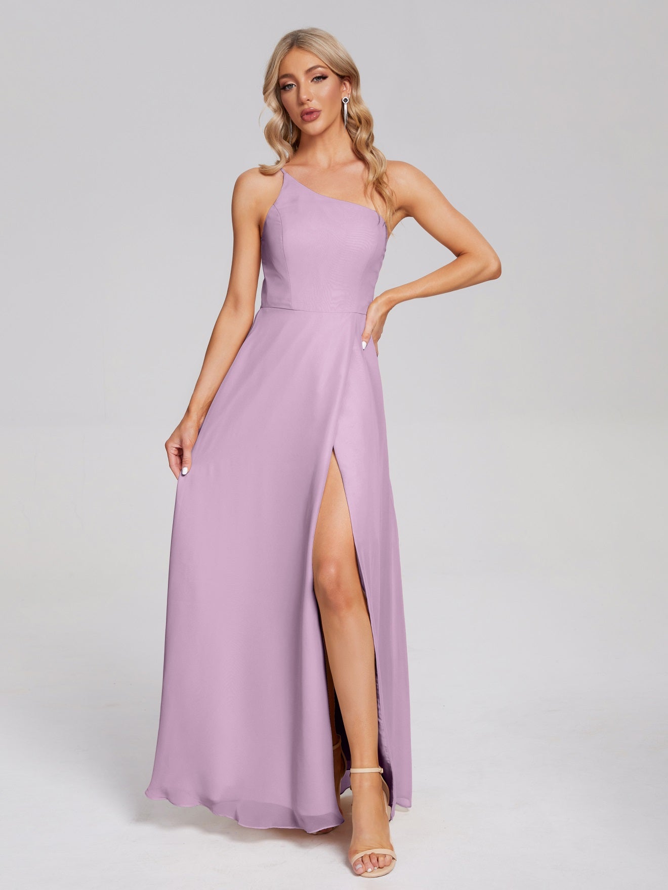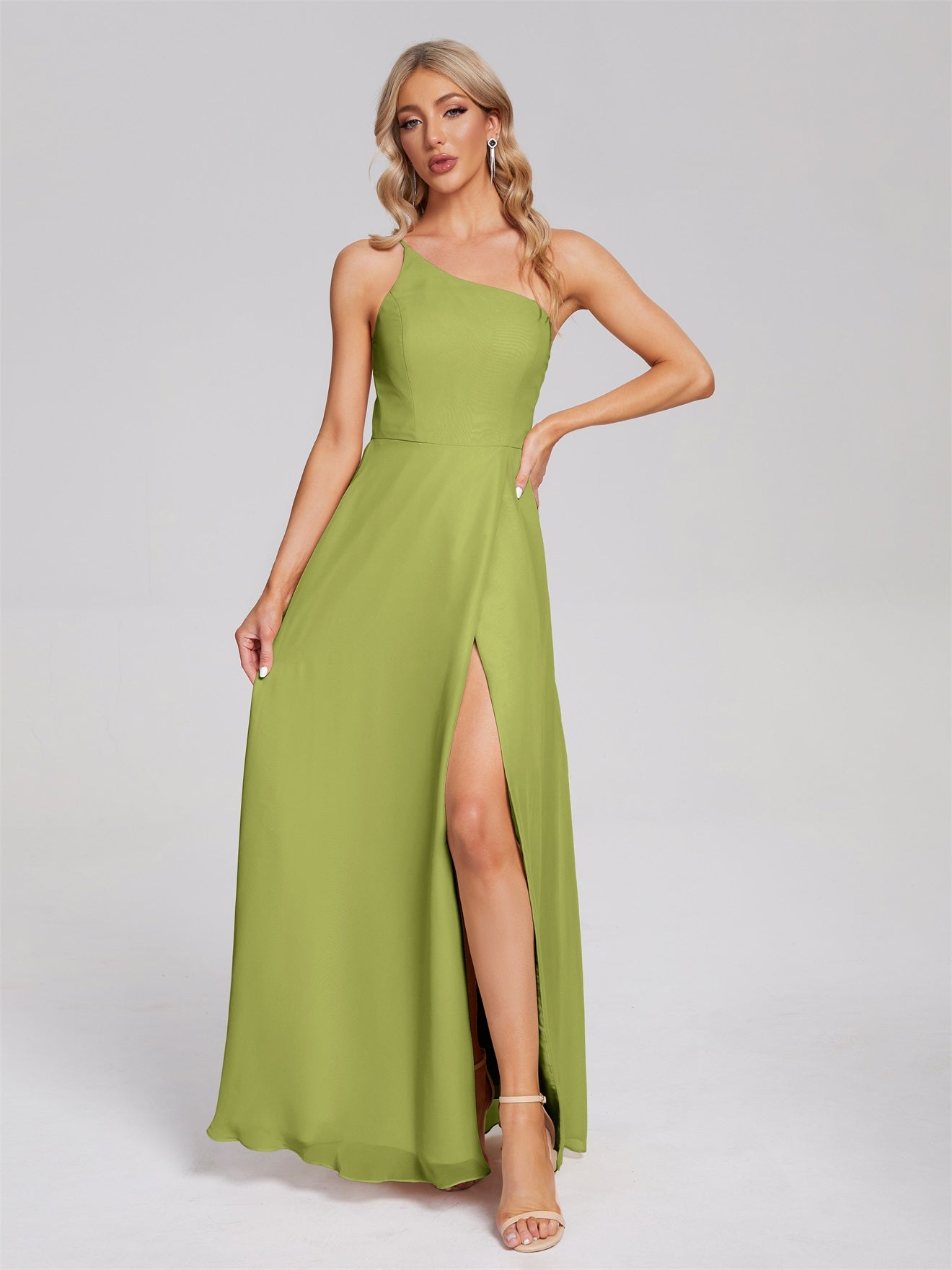 Talia Aufgeschlitzt Ein-Schulter-Einzelne Chiffon Brautjungfernkleider