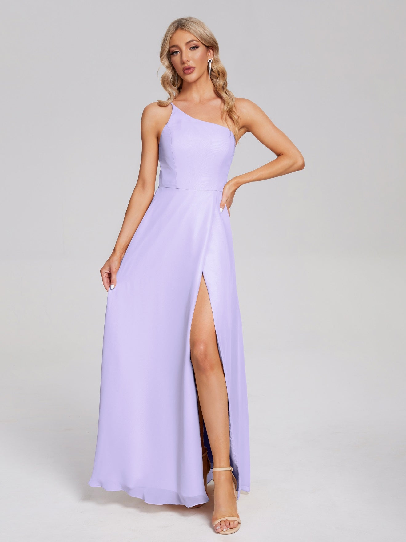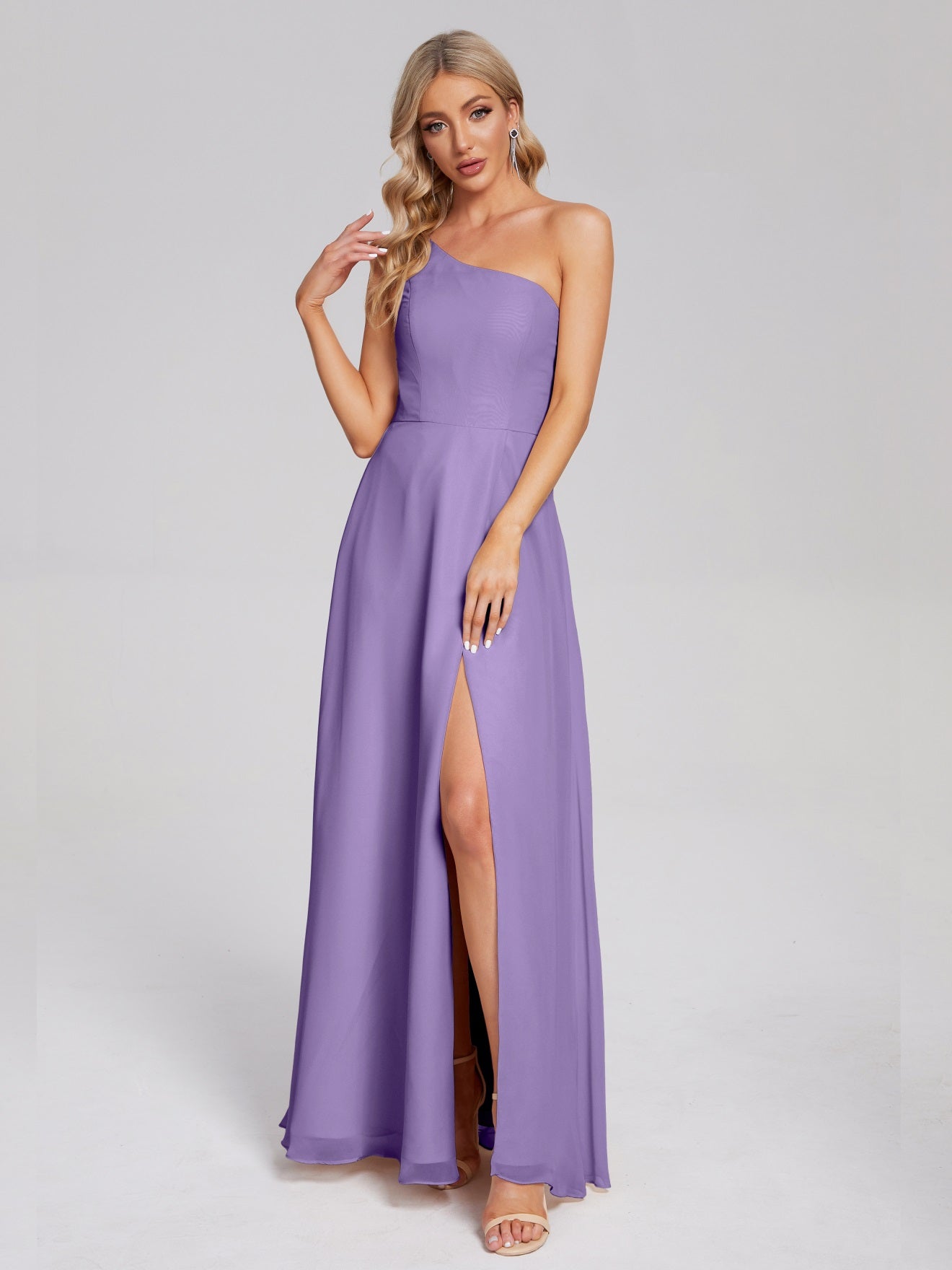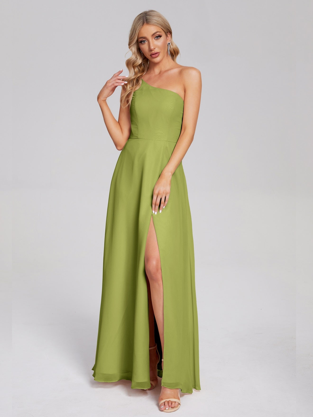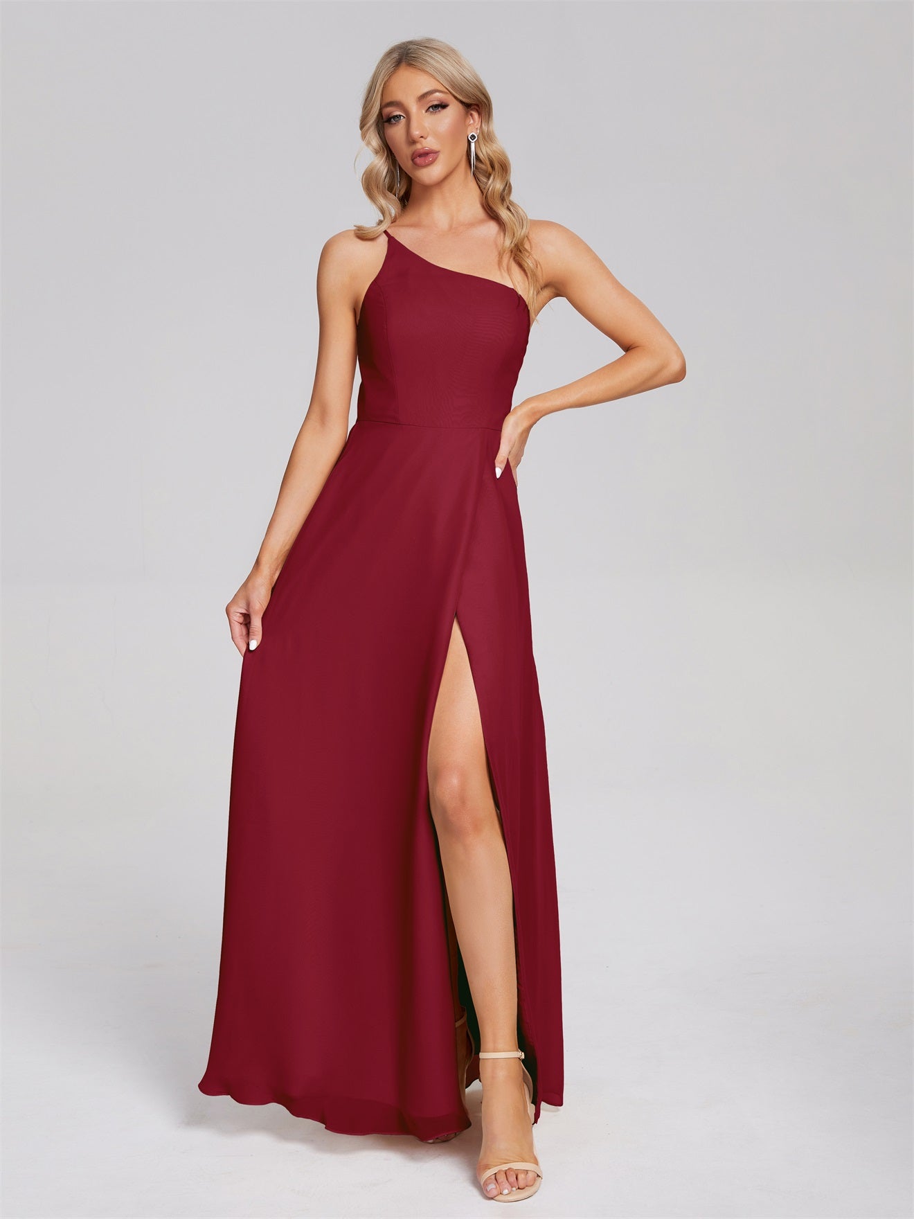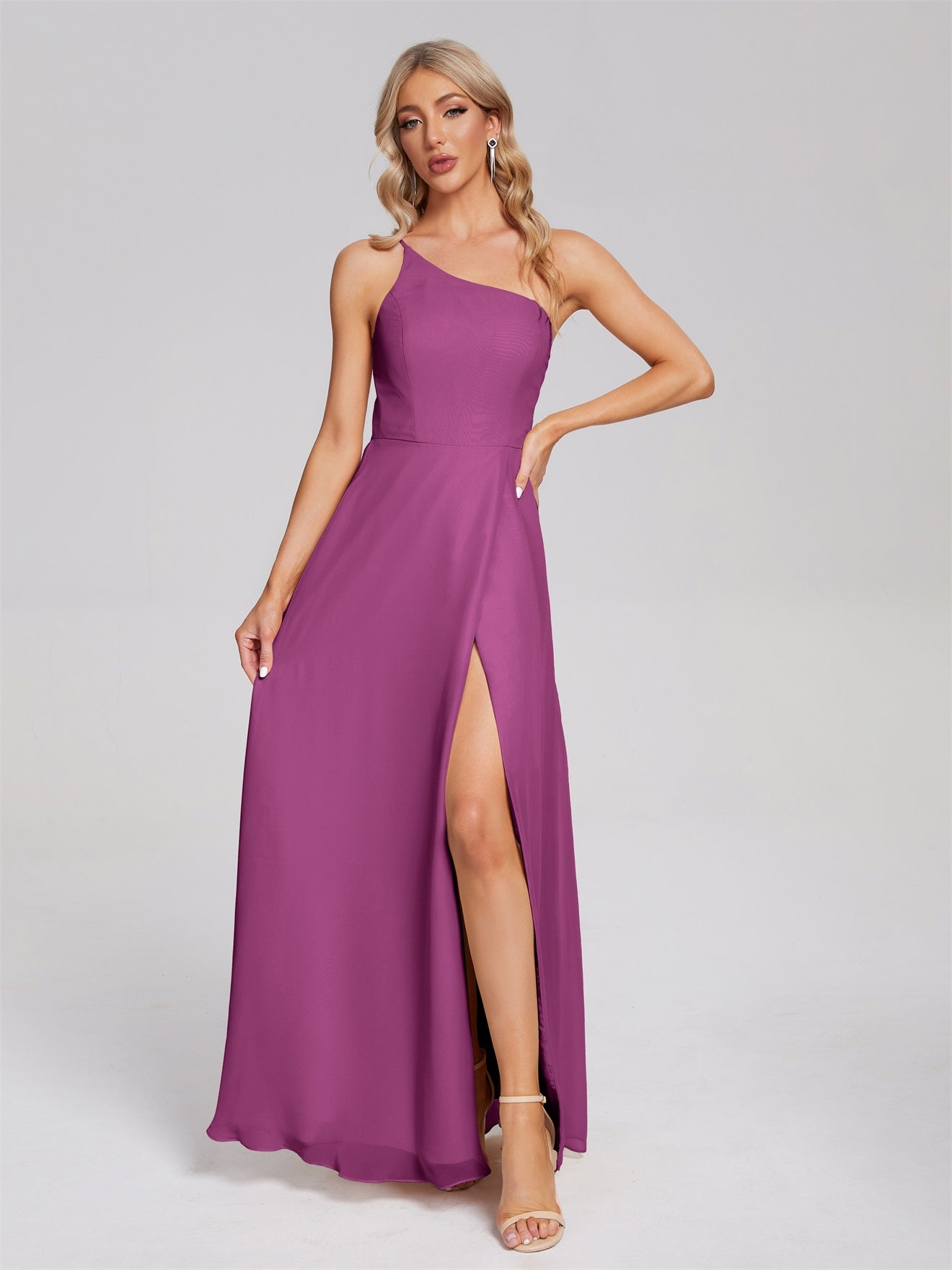 Talia Aufgeschlitzt Ein-Schulter-Einzelne Chiffon Brautjungfernkleider