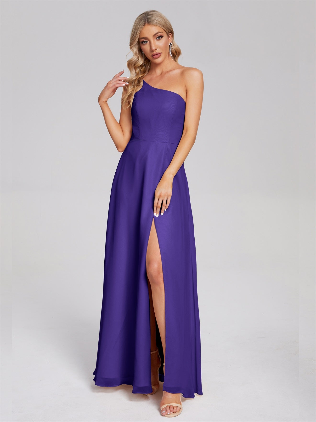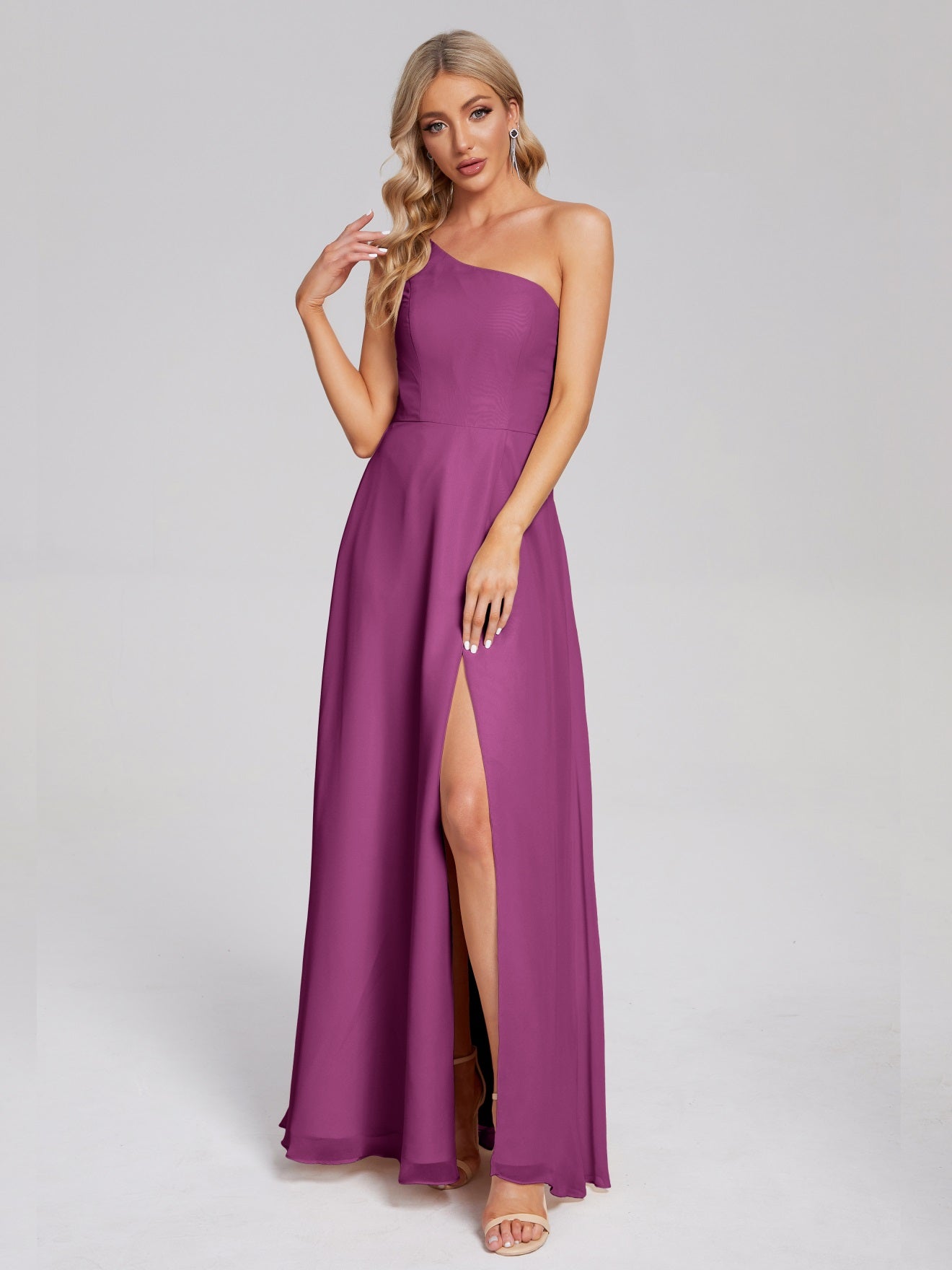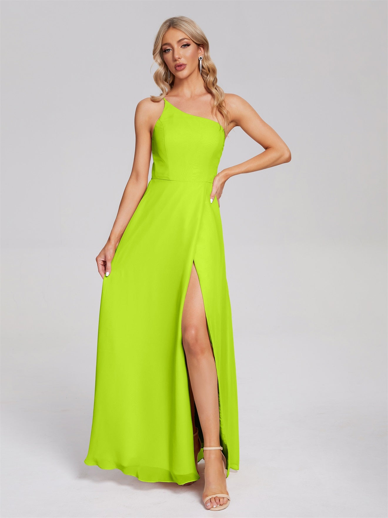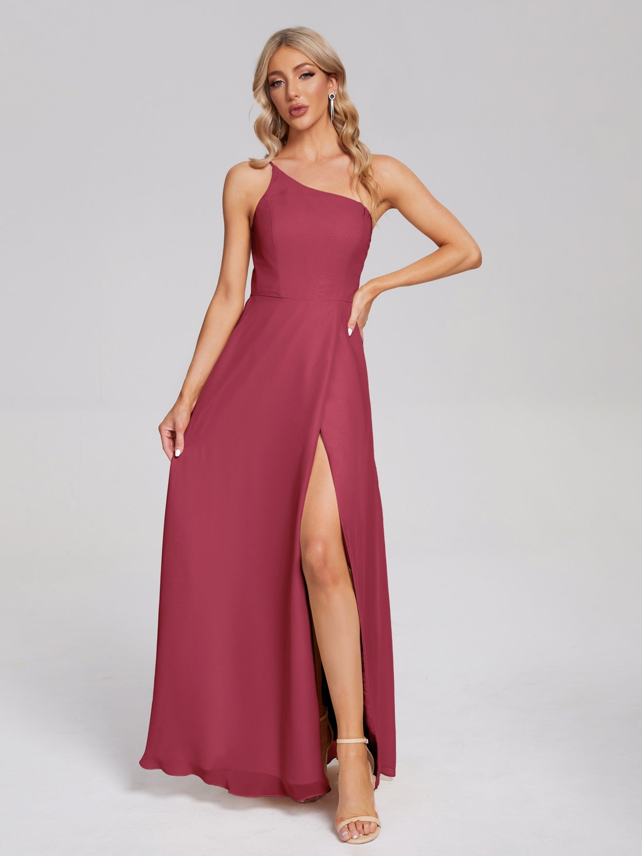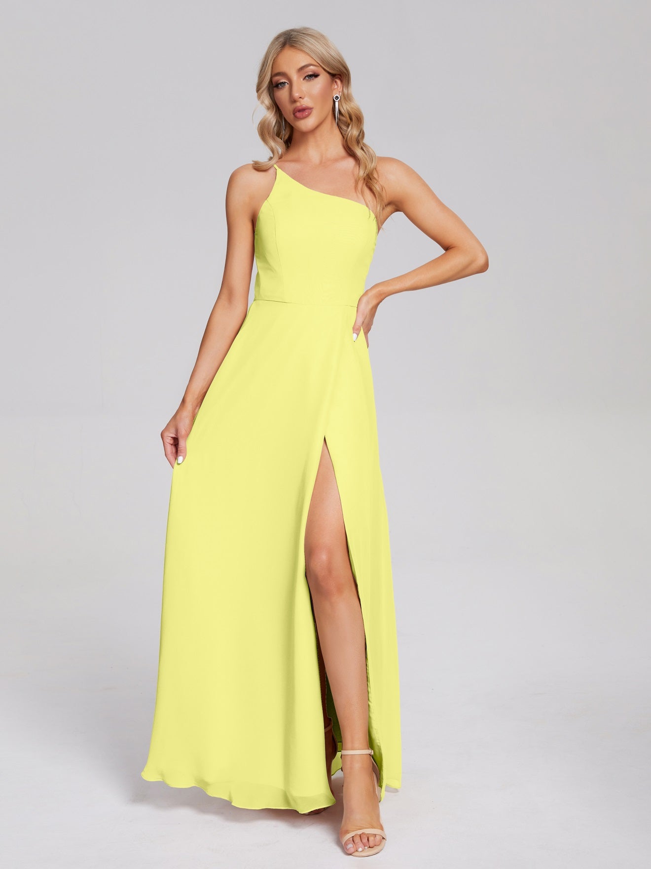 Talia Aufgeschlitzt Ein-Schulter-Einzelne Chiffon Brautjungfernkleider